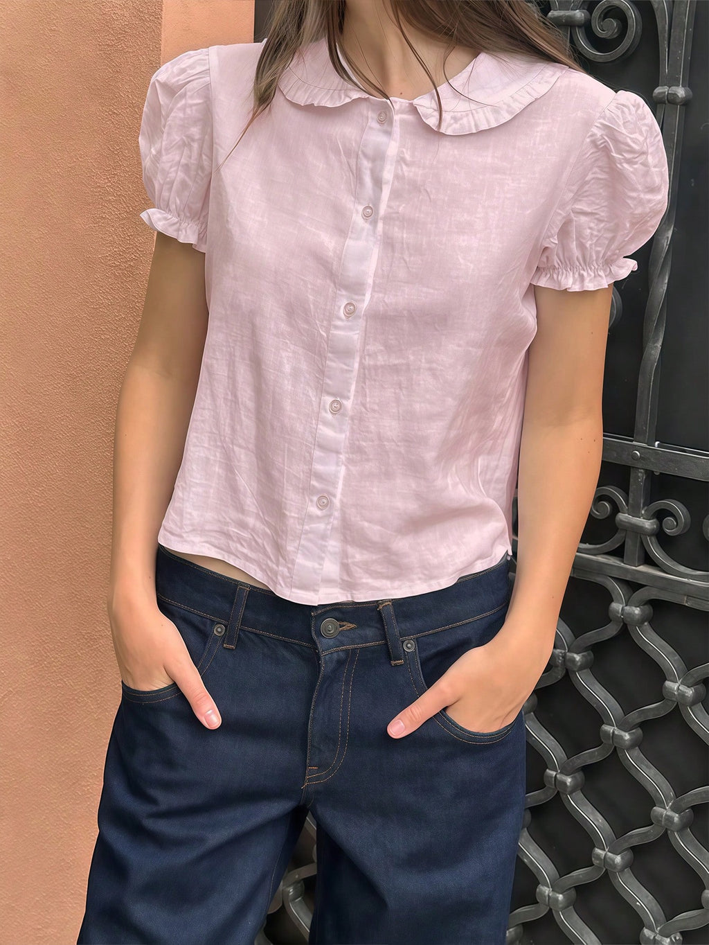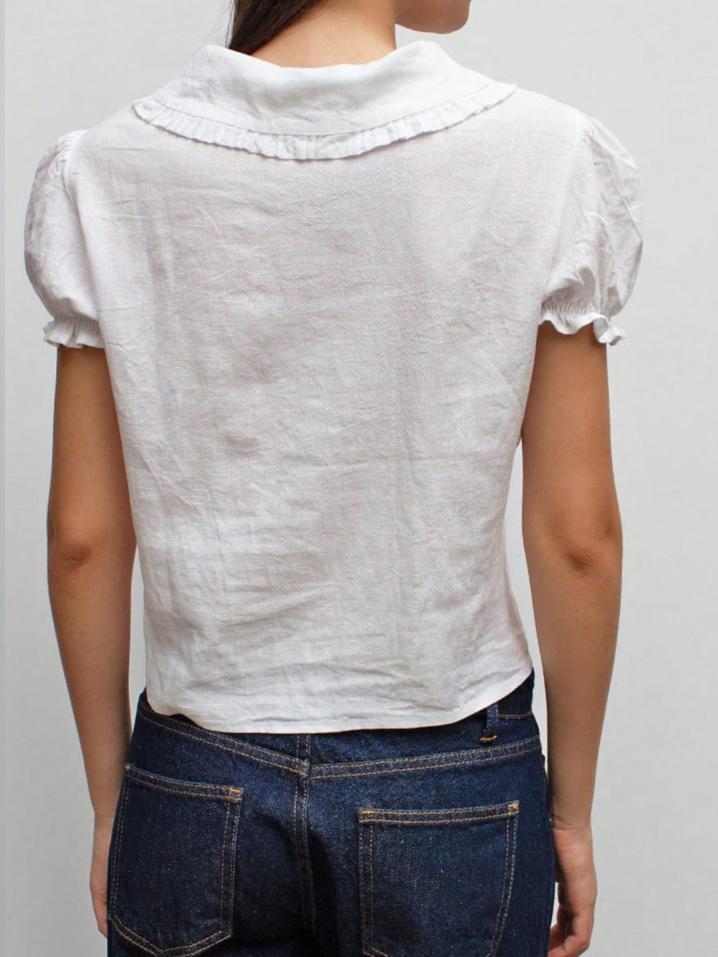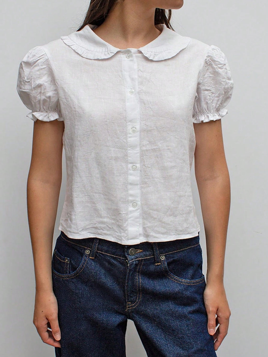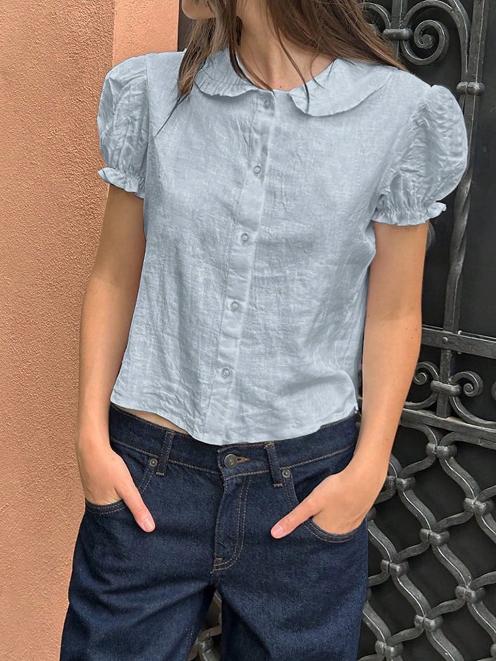 BELLAVOG Jednobojna košulja s nabranim rubom i puf rukavima, majica kratkih rukava