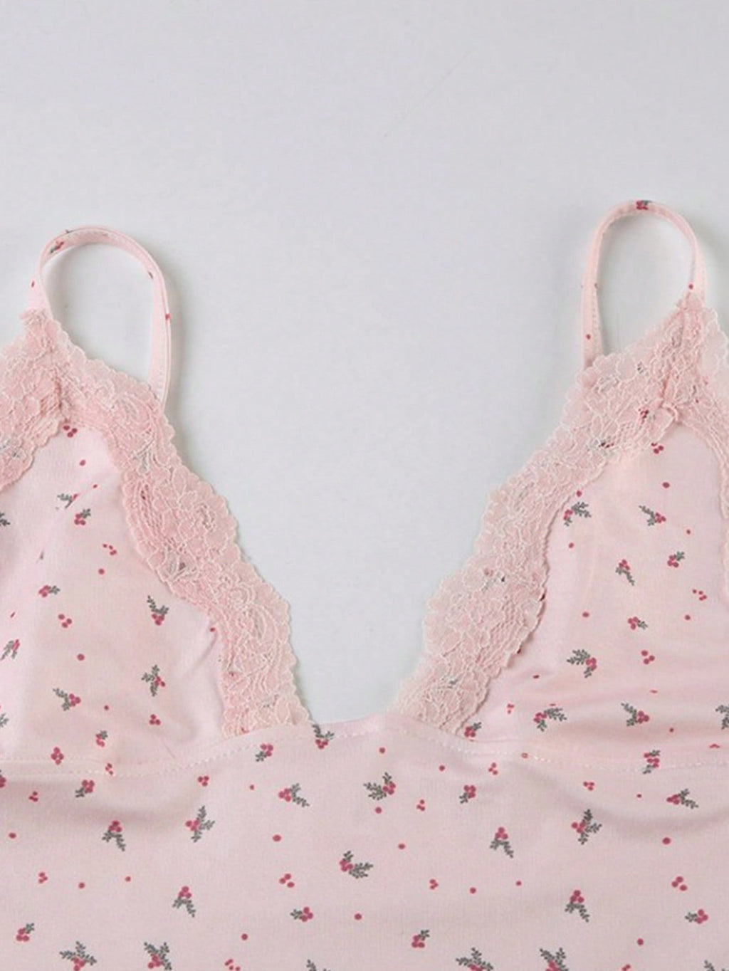 BELLAVOG Solva set od 2 komada/komad za žene, komplet majice i šorceva s kontrastnim čipkastim uzorkom i cvjetnim uzorkom