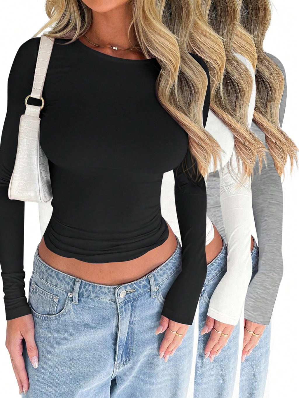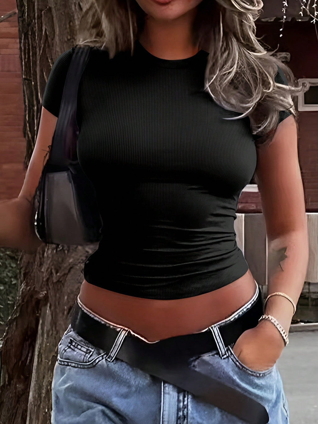BELLAVOG Solva ženska ljetna ležerna jednobojna majica slim kroja kratkih rukava