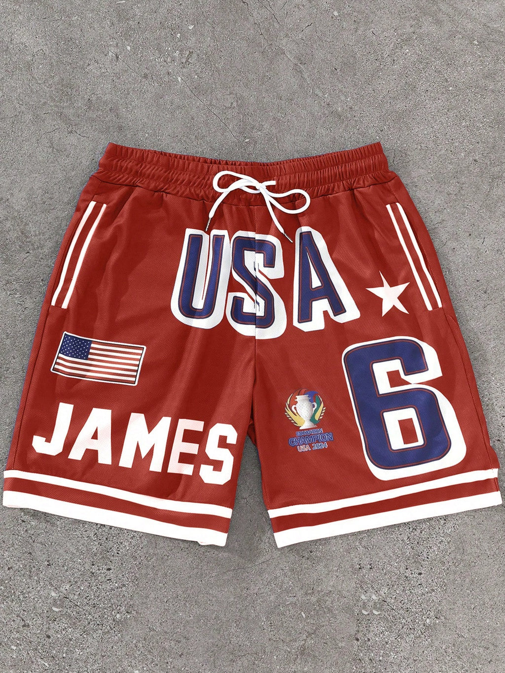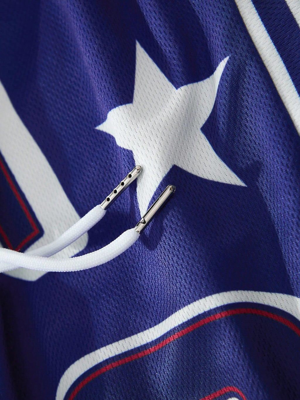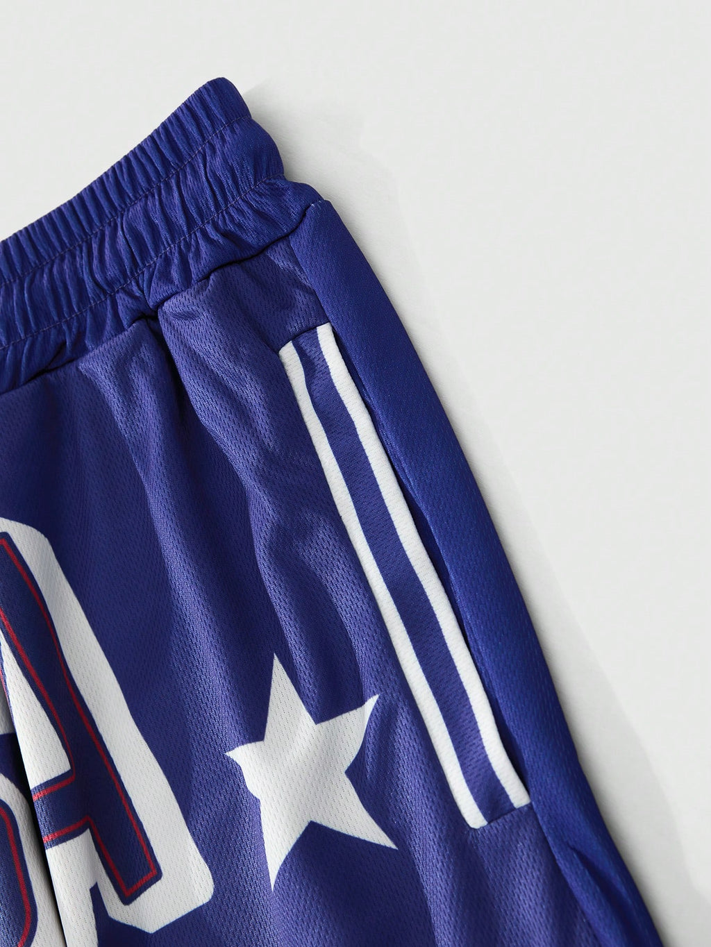 BELLAVOG Sporsity Manfinity Sporsity Muške kratke hlače s printom slova, vezicom i džepovima u struku Grafičke kratke hlače Muška odjeća Muške kratke hlače