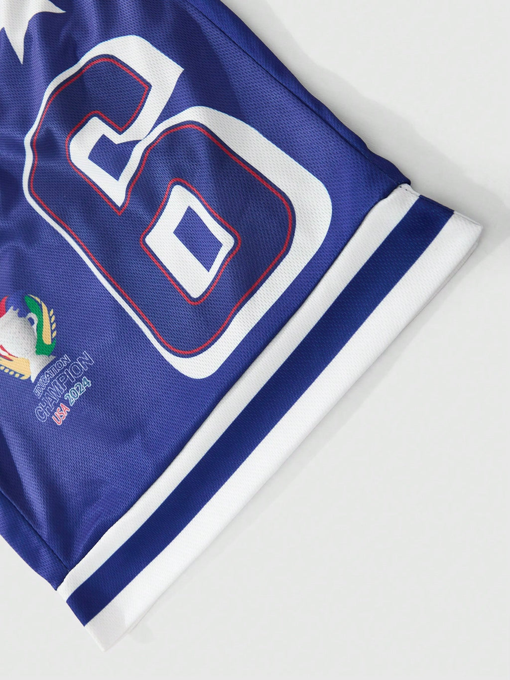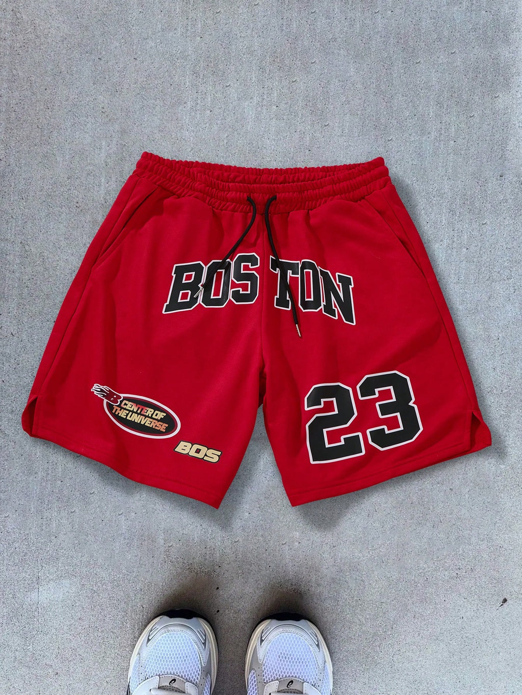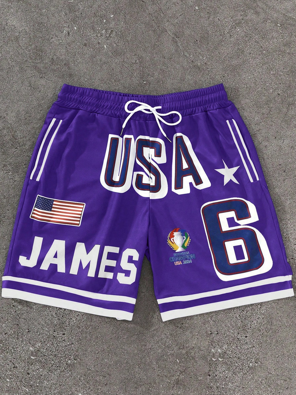 BELLAVOG Sporsity Manfinity Sporsity Muške kratke hlače s printom slova, vezicom i džepovima u struku Grafičke kratke hlače Muška odjeća Muške kratke hlače