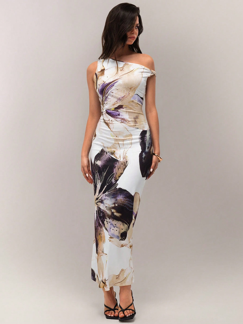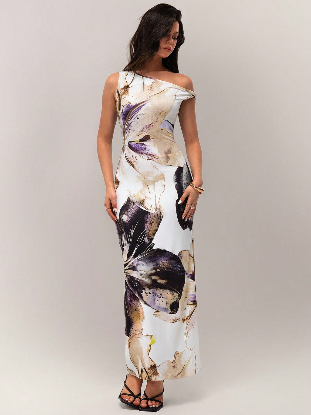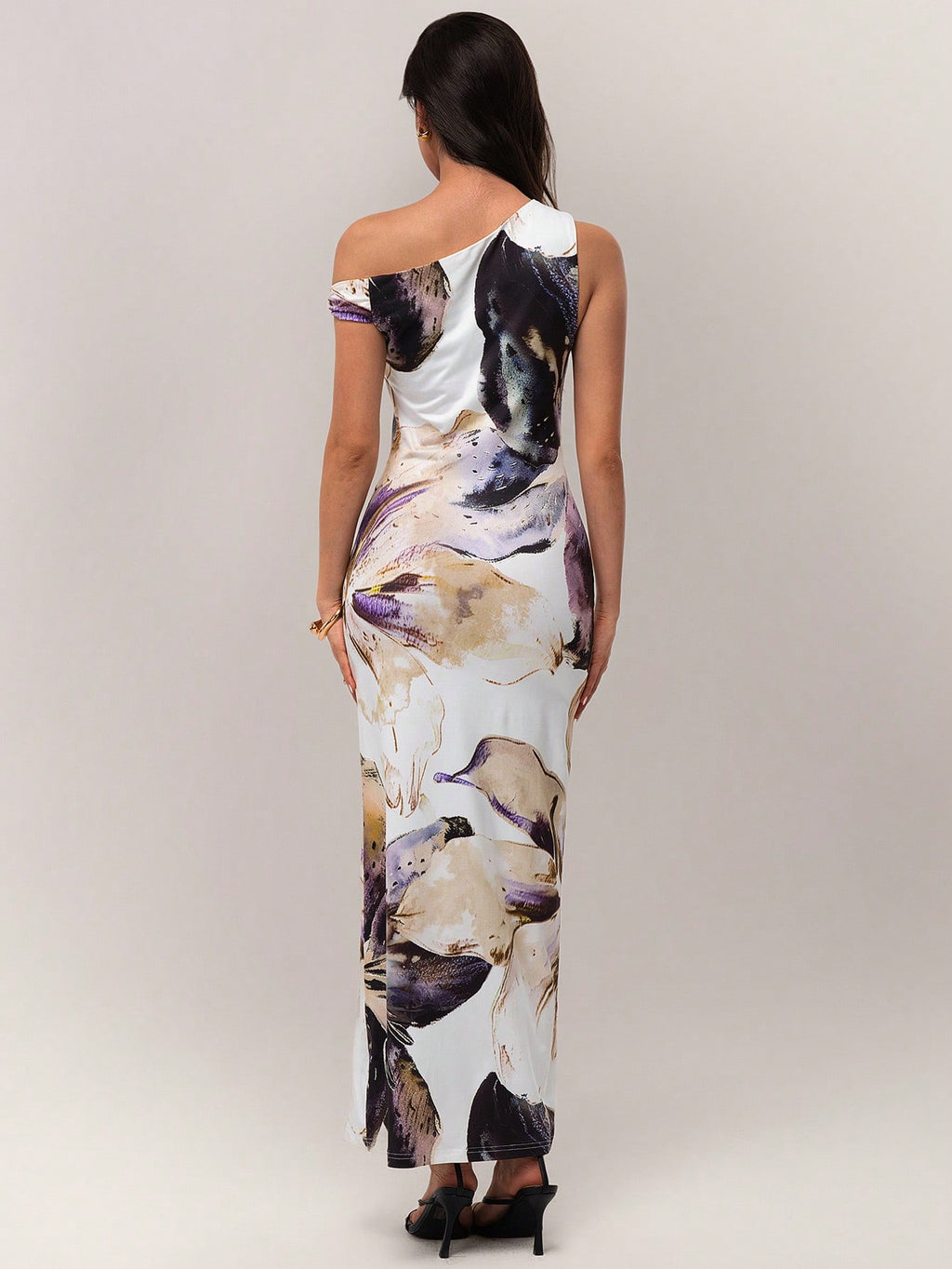 BELLAVOG Spring Vacation Beach Big Floral Print Asymmetric Neck Elegant Dress For Women