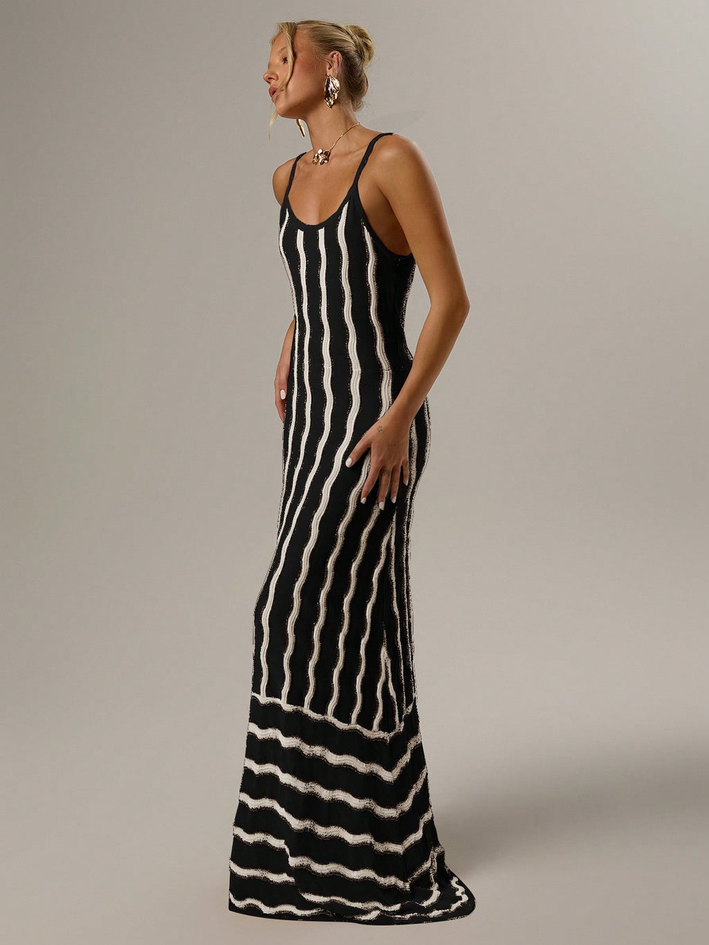 MIU AZRA Elenzya Asimetrična Prugasta Majica sa Dugim Rukavima za Žene, Elegantna Romantična, Casual i Komutna Odjeća, Haljina za Noć Veštica, Crna