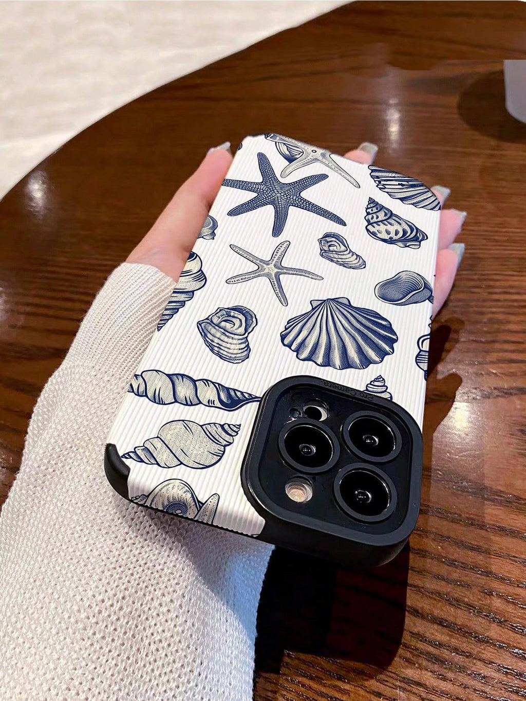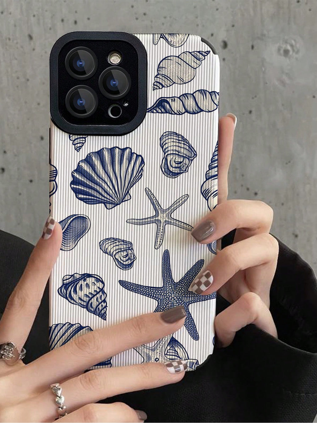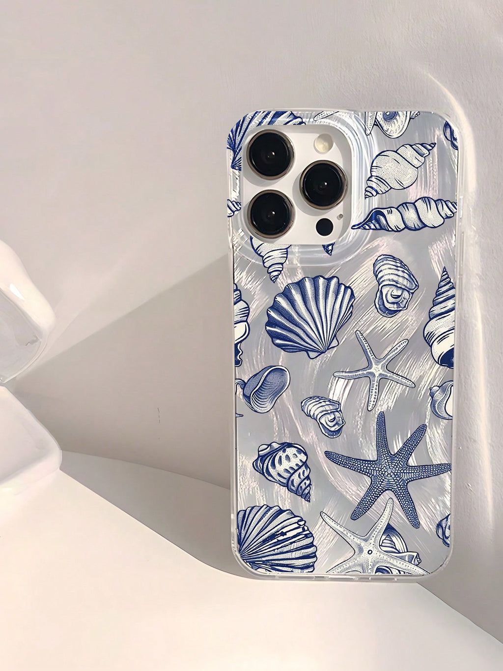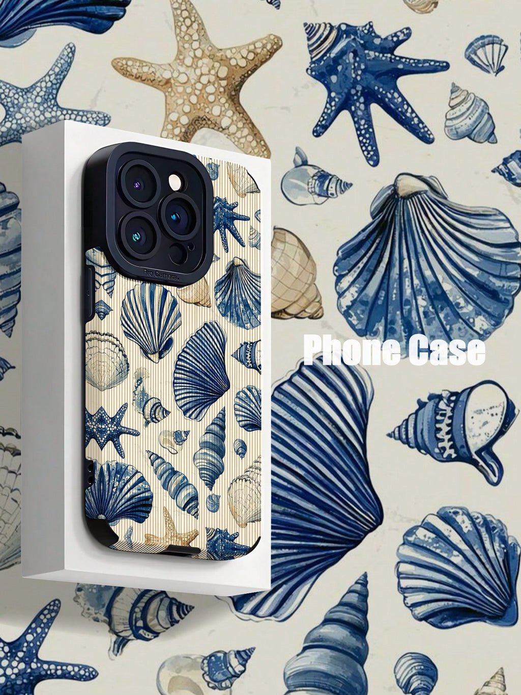 BELLAVOG Summer 1pc New Classic Shock-Resistant Soft TPU Phone Case With Blue Shell Pattern, Compatible With IPhone And 15/15PLUS/15PRO/15PROMAX