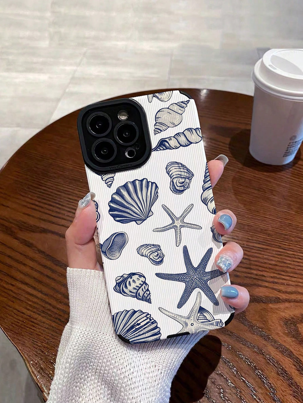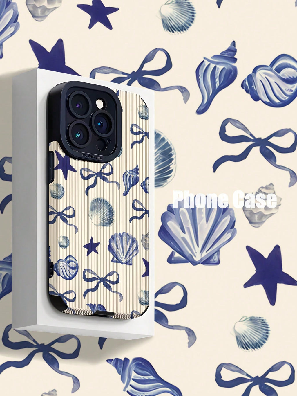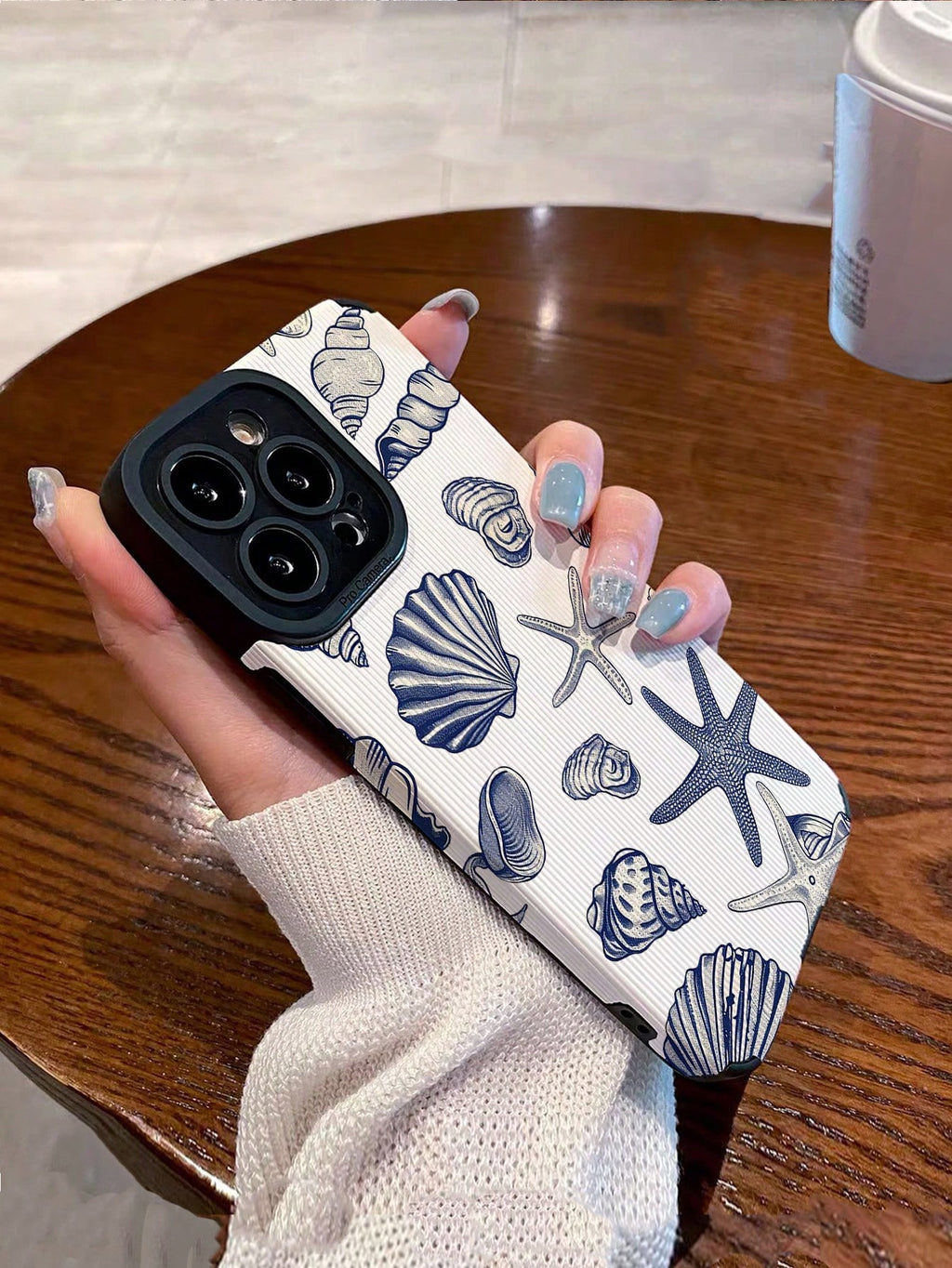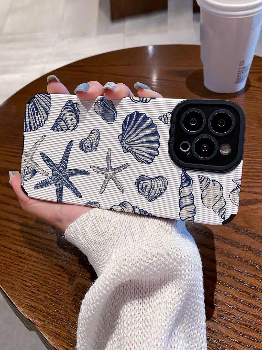 BELLAVOG Summer 1pc New Classic Shock-Resistant Soft TPU Phone Case With Blue Shell Pattern, Compatible With IPhone And 15/15PLUS/15PRO/15PROMAX
