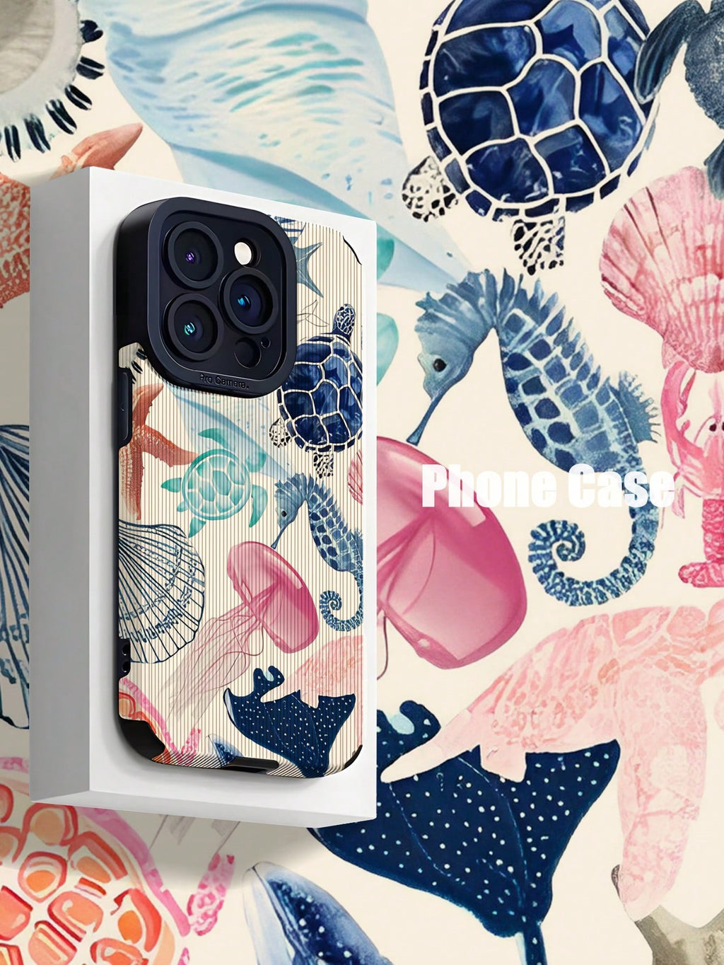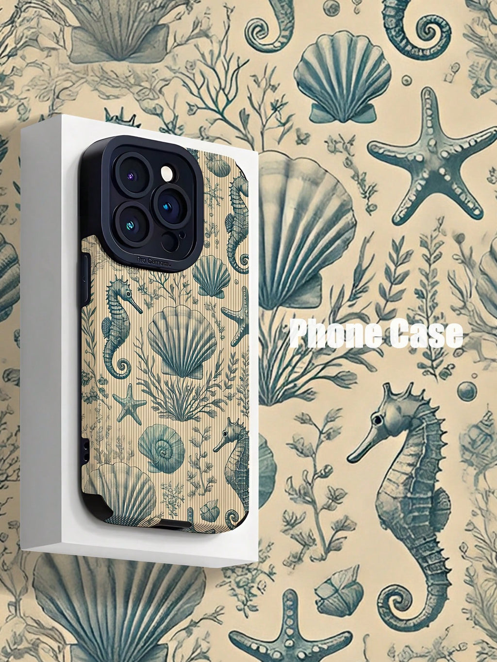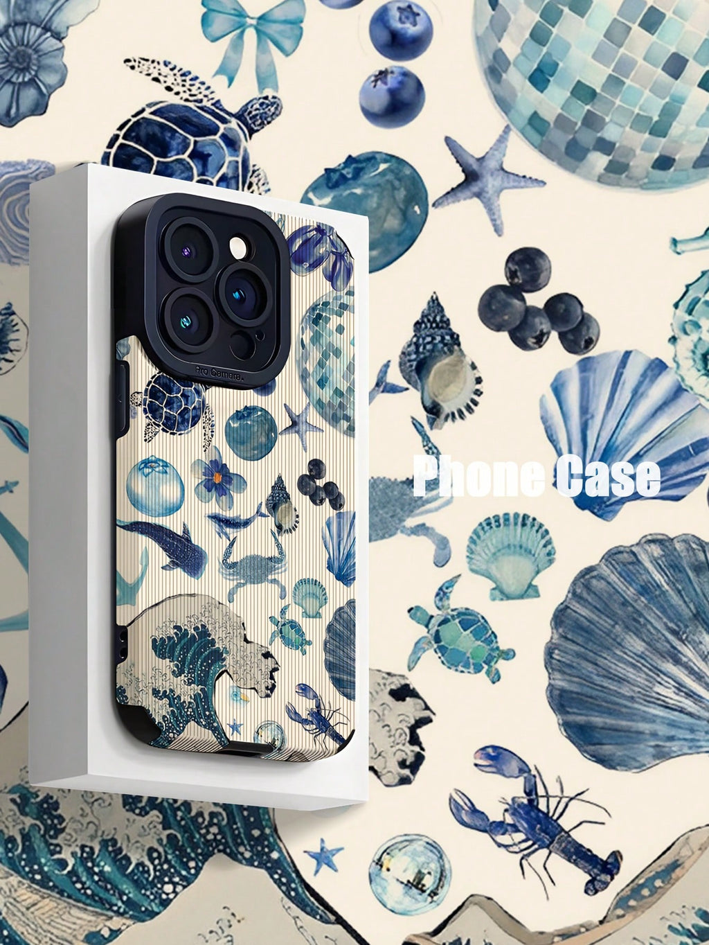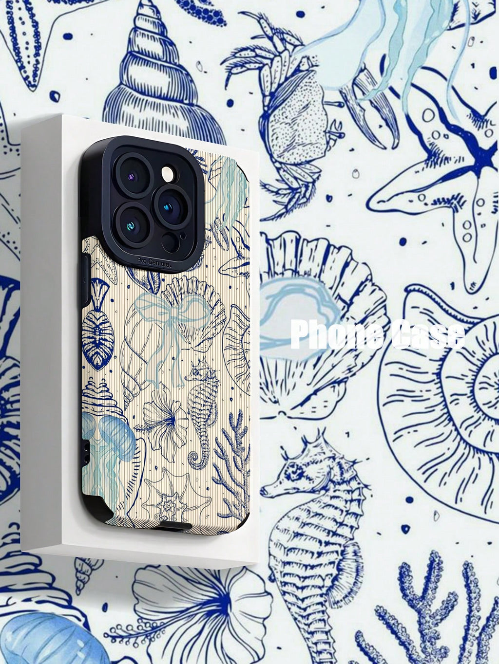 BELLAVOG Summer 1pc New Classic Shock-Resistant Soft TPU Phone Case With Blue Shell Pattern, Compatible With IPhone And 15/15PLUS/15PRO/15PROMAX