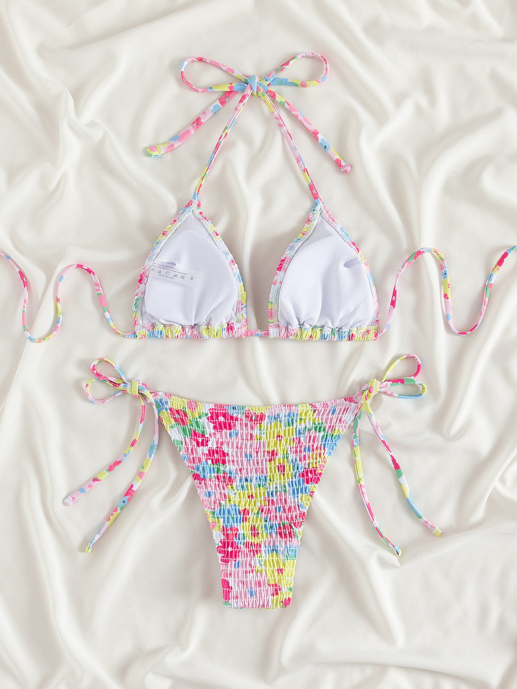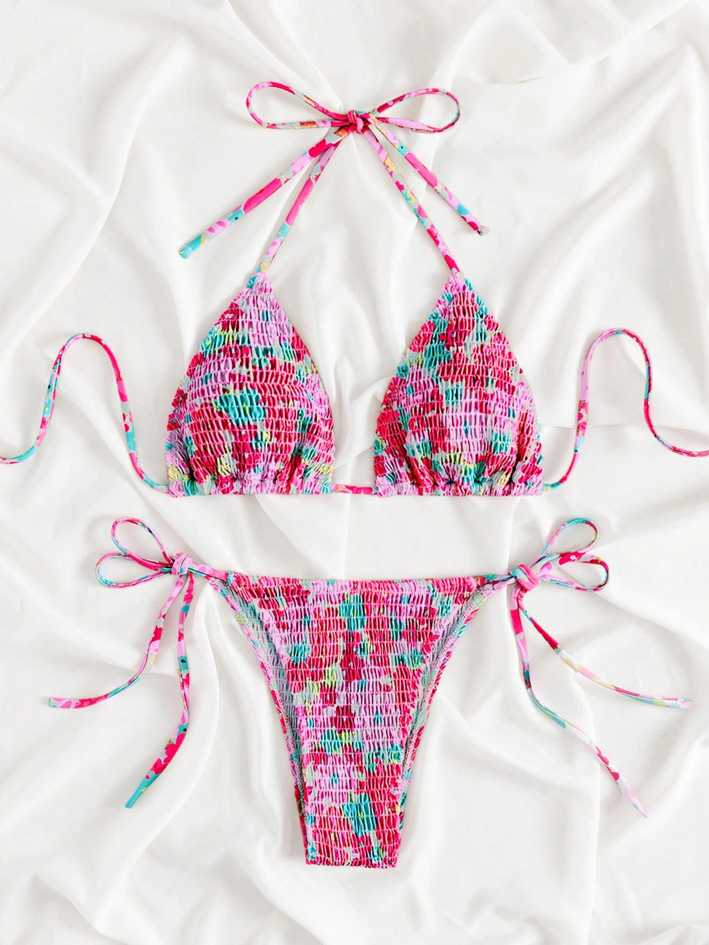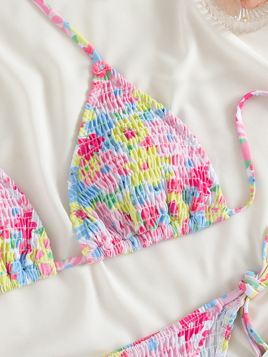BELLAVOG Ljetni bikini set s cvjetnim printom i nasumičnim uzorkom za plažu, trokutasti grudnjak s naborima