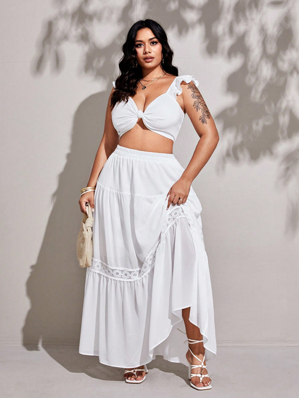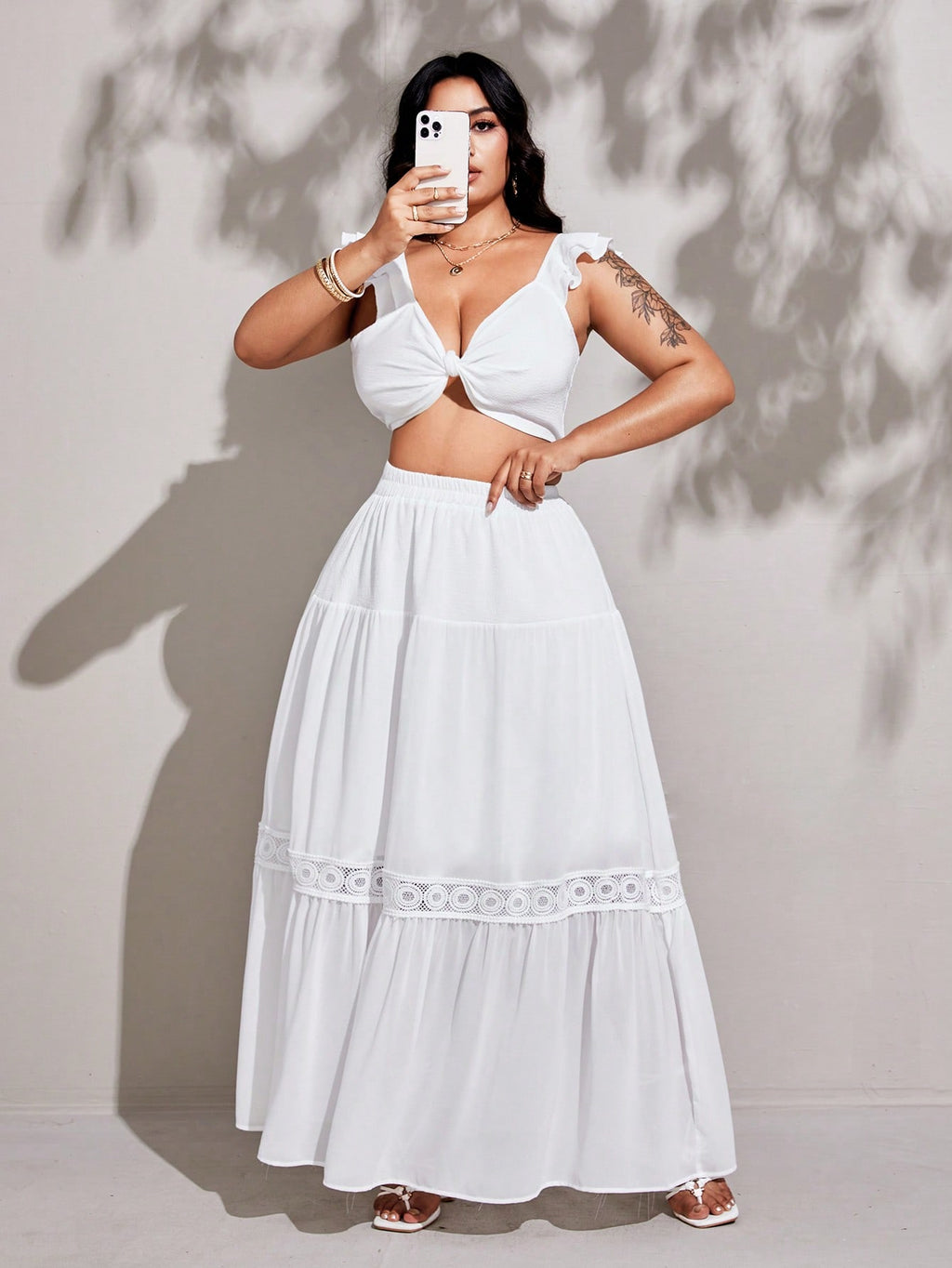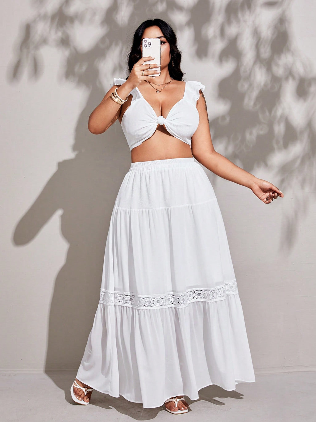 BELLAVOG SunnyBelle Set od 2 komada za žene većih veličina, jednobojni ljetni kratki top i suknja