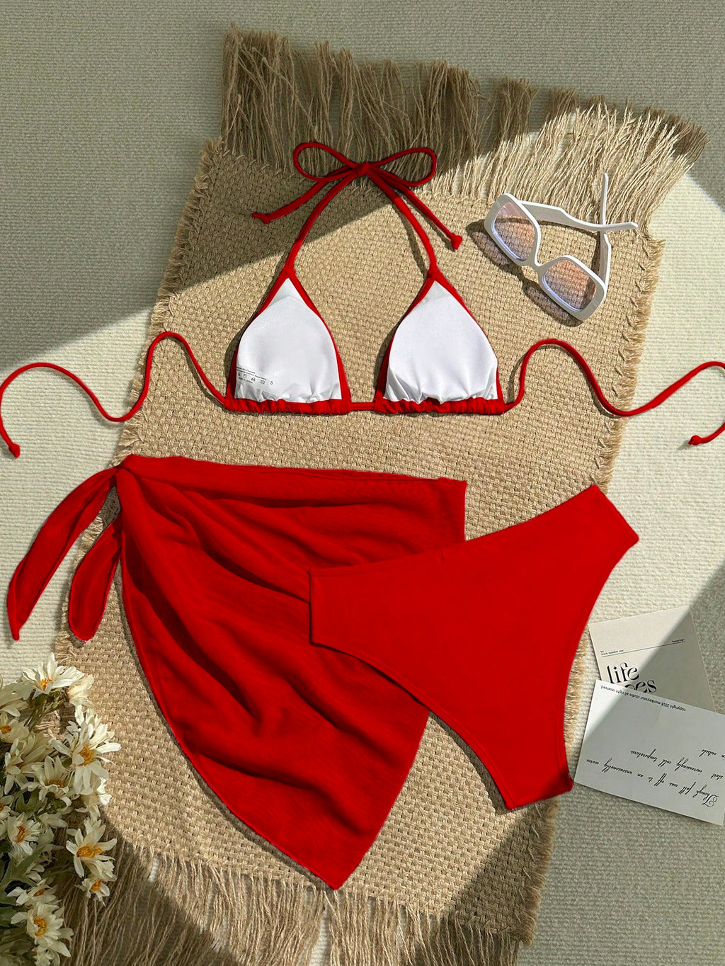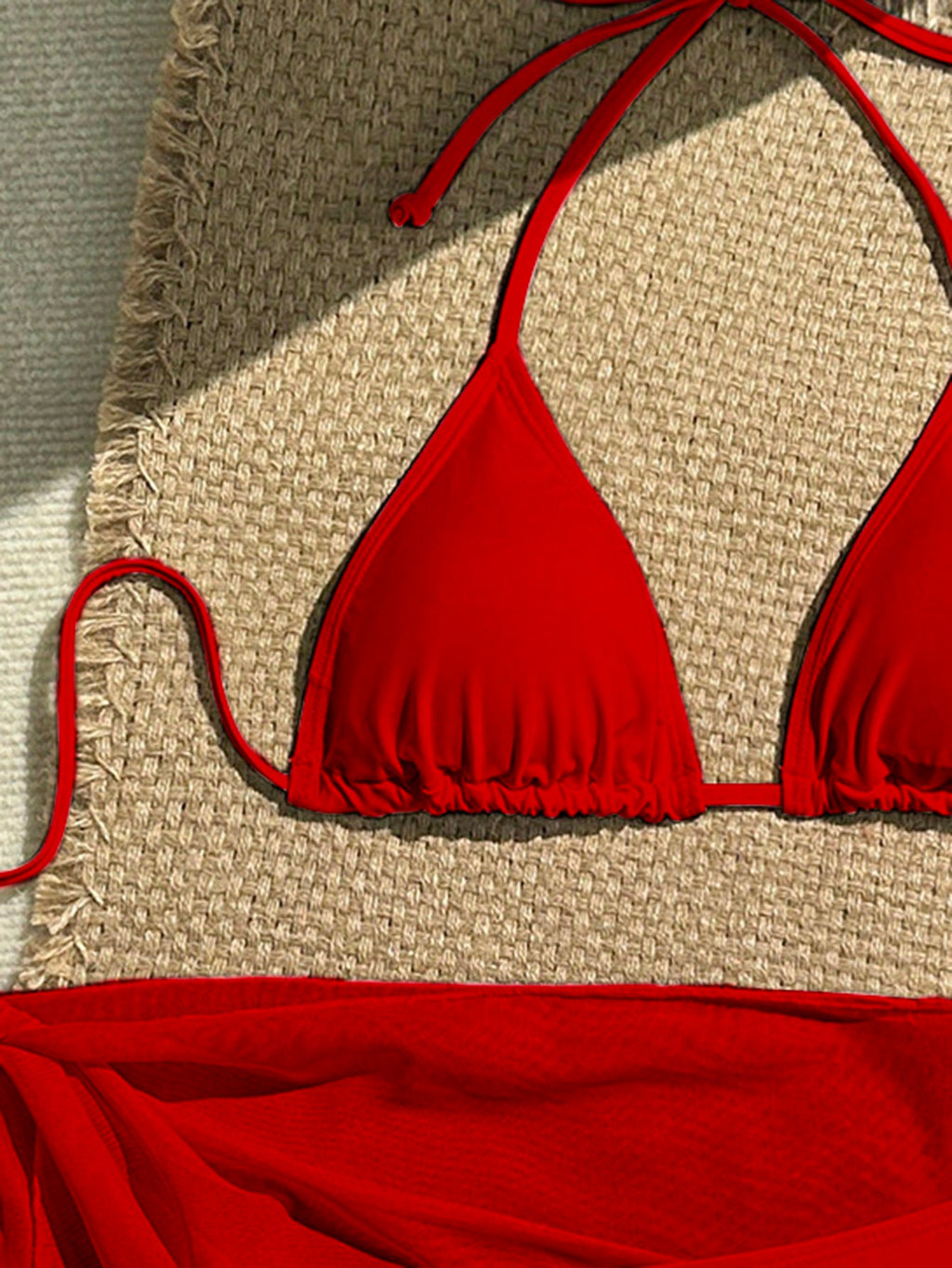 BELLAVOG Swim 3 komada ženski praznični jednobojni seksi bikini kupaći set, set kupaćih kostima, za ljetni odmor na plaži