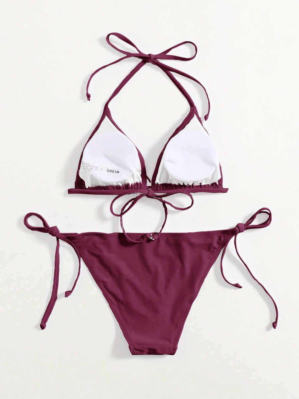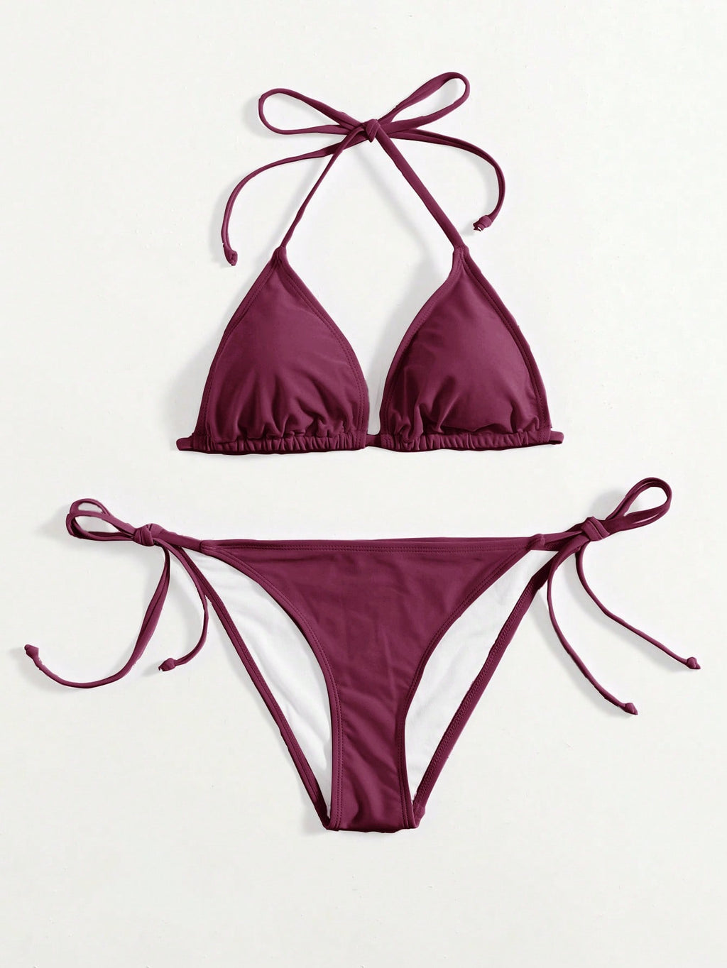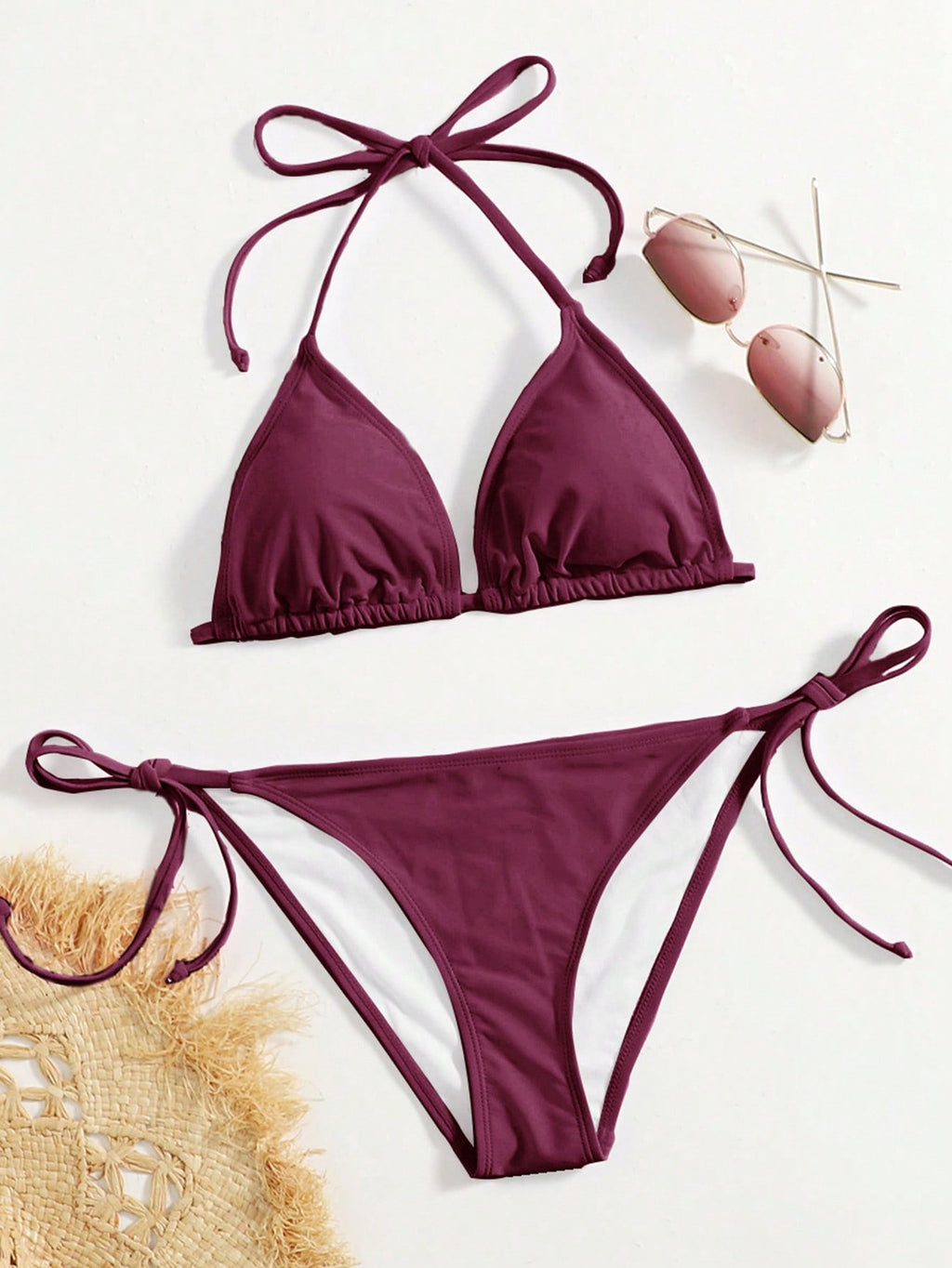 BELLAVOG Swim Basics Ljetni bikini s trokutastim vezanjem sa strane, halter