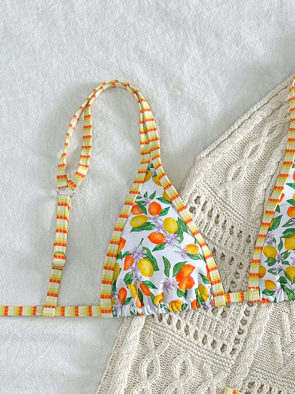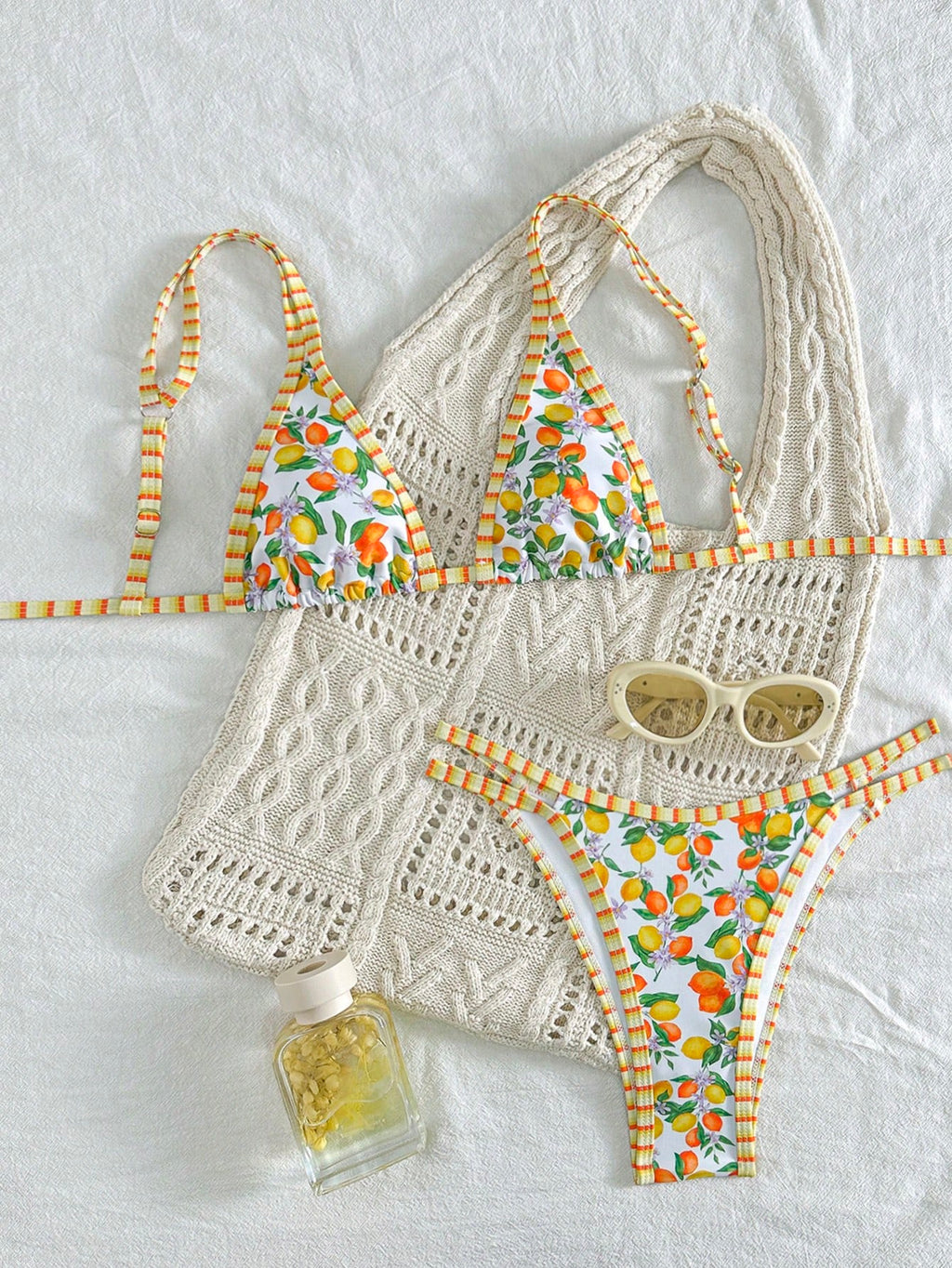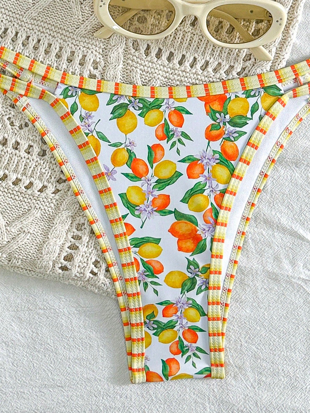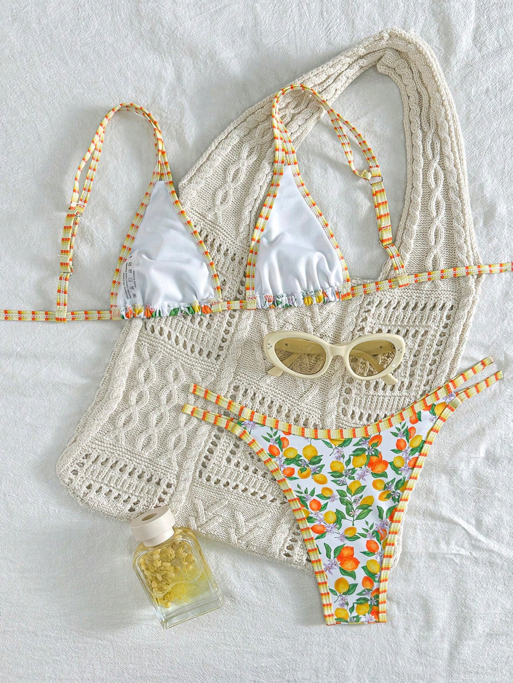 BELLAVOG Swim Vcay set od 2 komada/seta seksi kupaćih kostima s voćnim printom, kontrastnim bojama i gornjim dijelom s naramenicama sa strane, za ljetni odmor