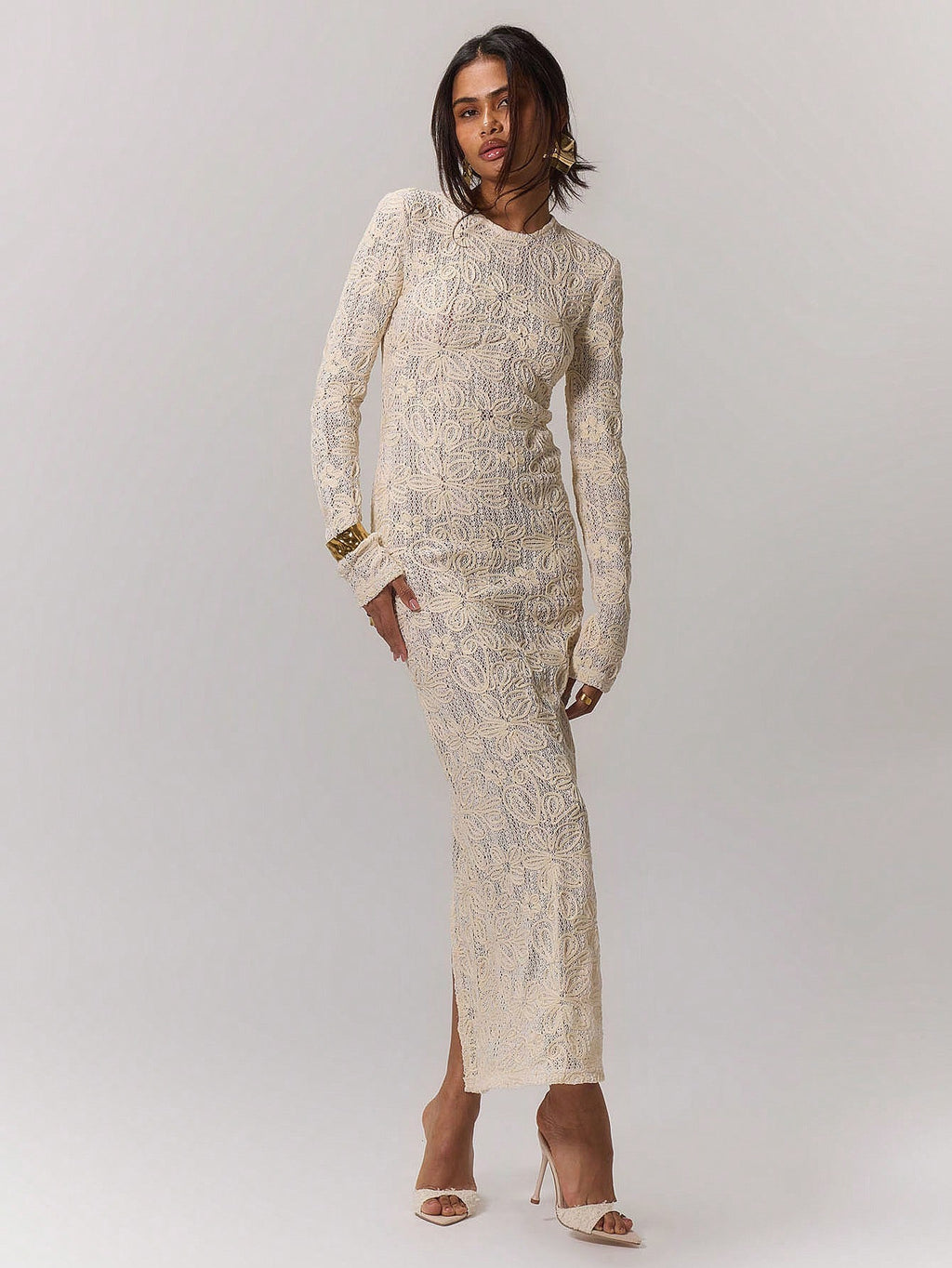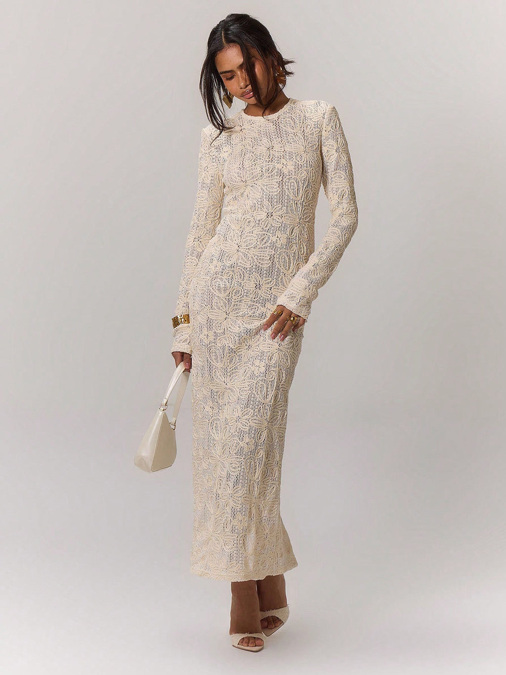BELLAVOG Textured Floral Long Sleeve Maxi Dress Vacation Summer Wedding Guest Graduation