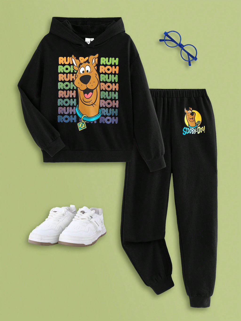 BELLAVOG - Komplet majice s kapuljačom i dugih hlača za tinejdžere s printom crtanih životinja i psom