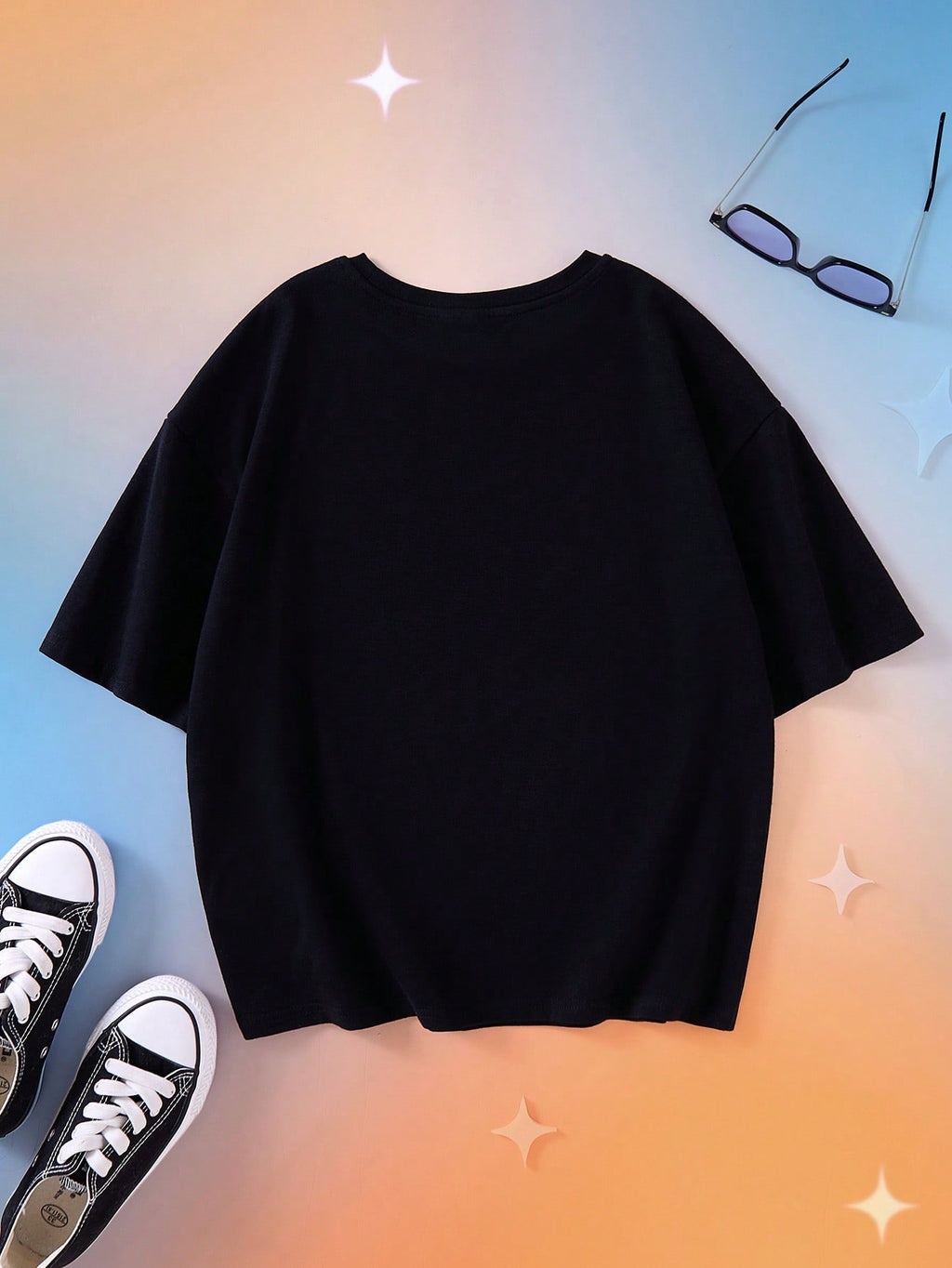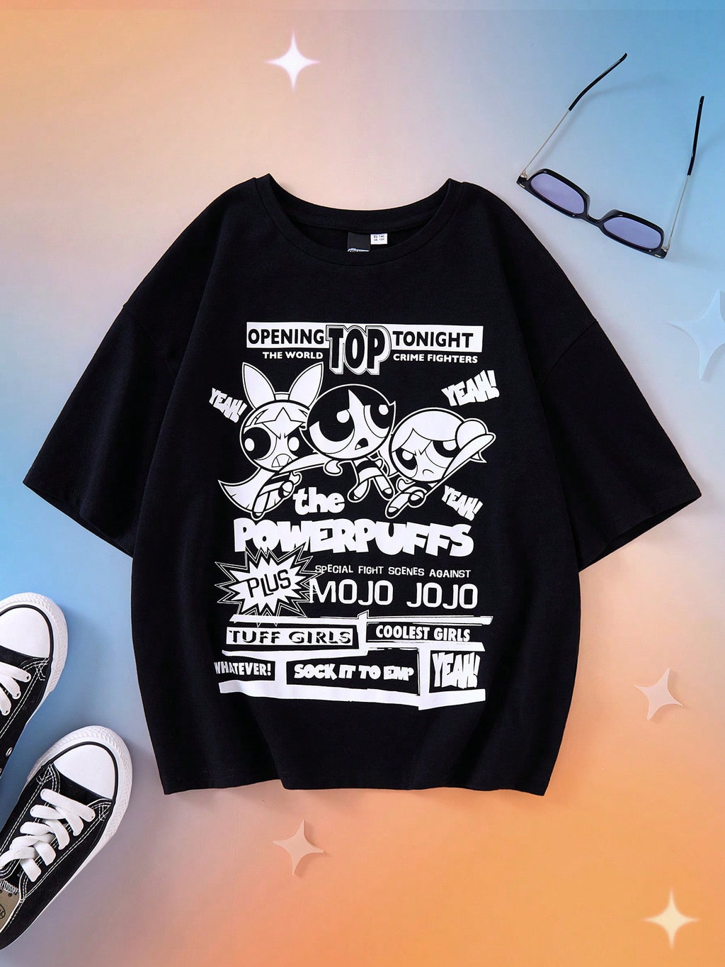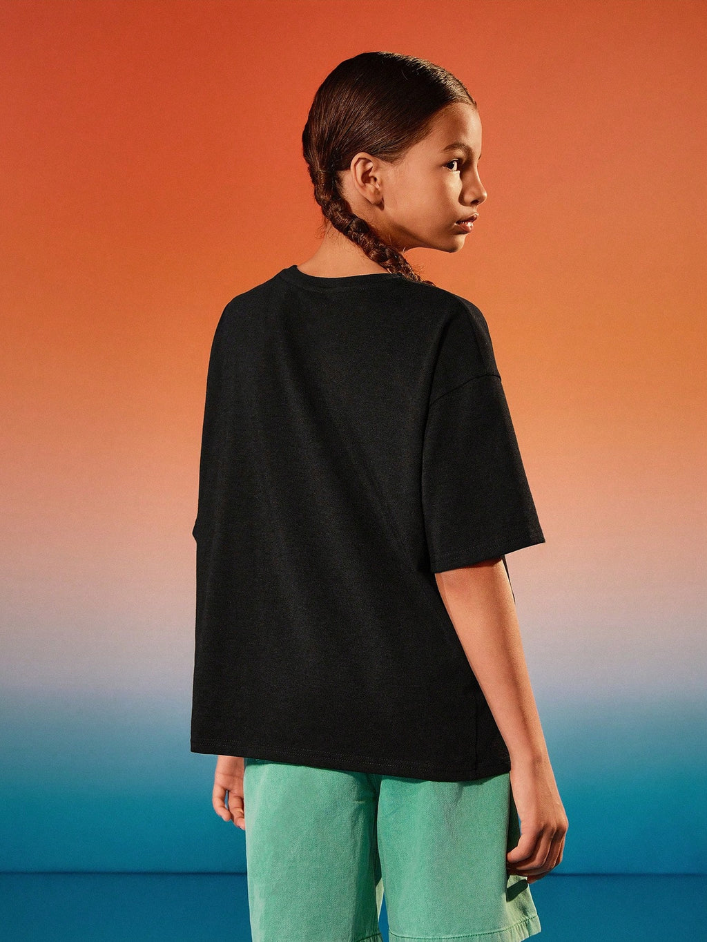 BELLAVOG Tween Girl crtana crno-bijela sitotiskarska grafika ležerna majica kratkih rukava s okruglim izrezom
