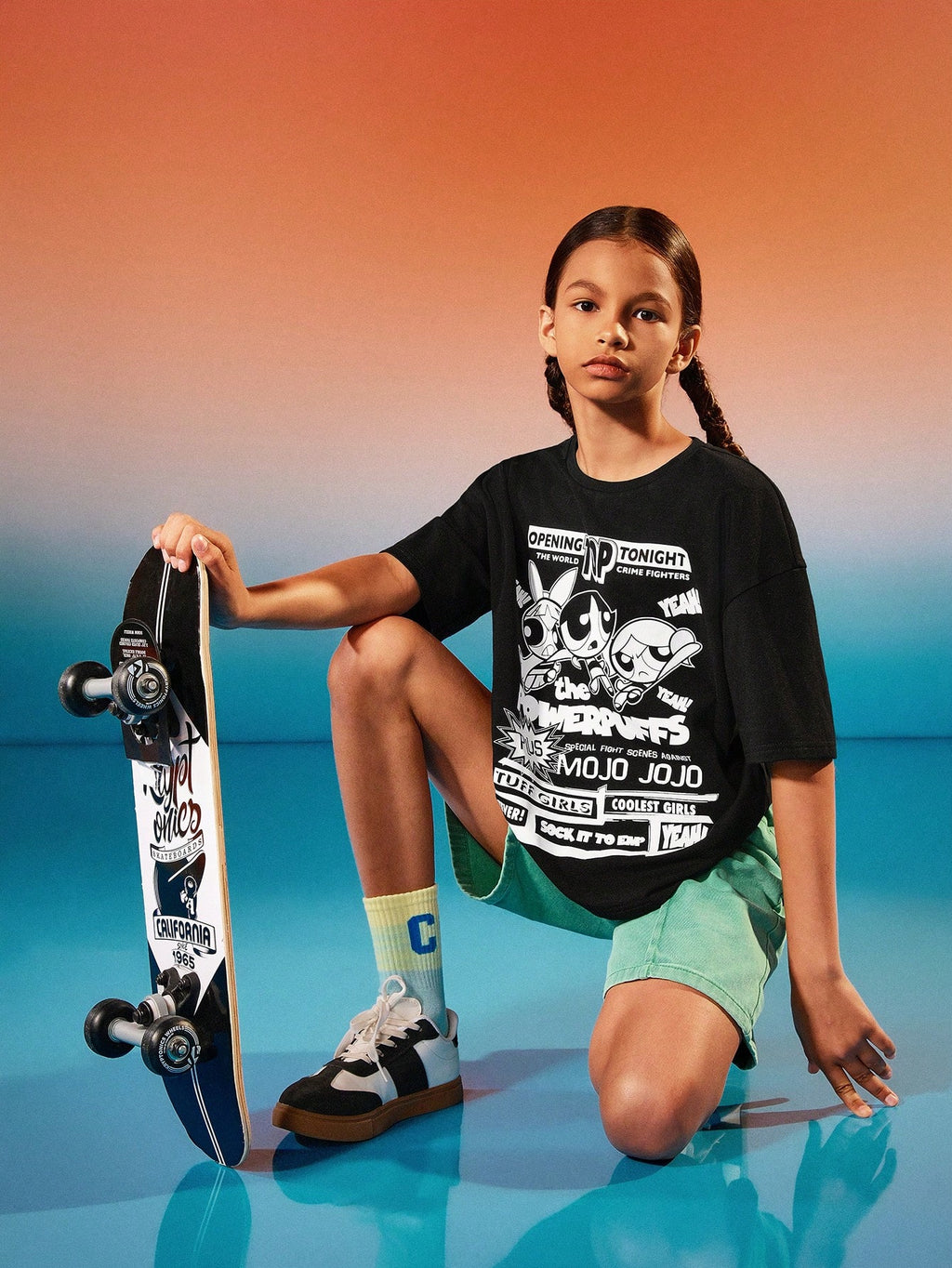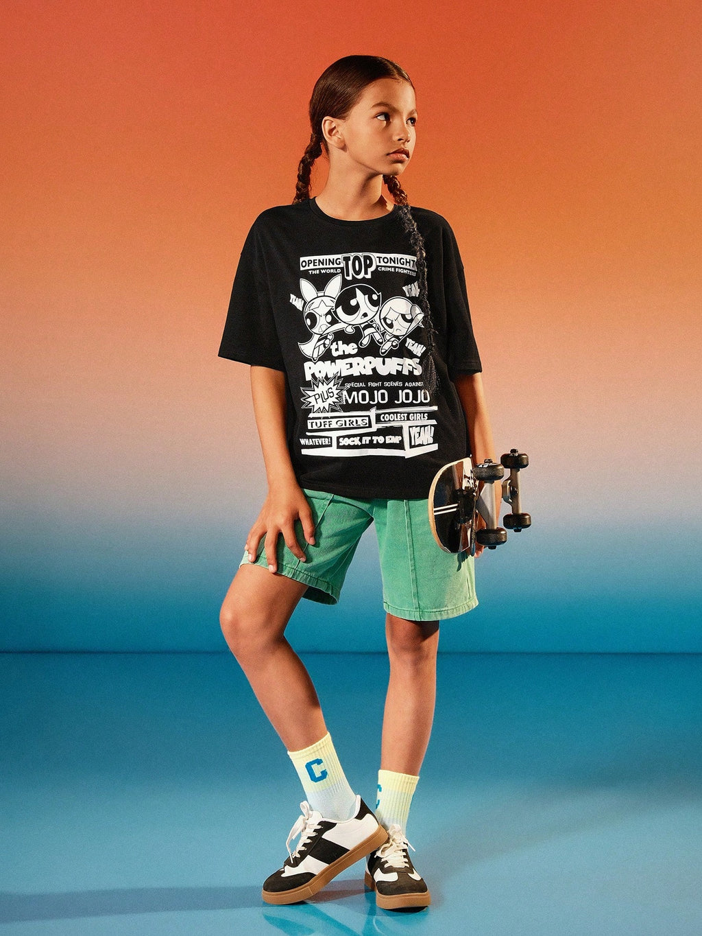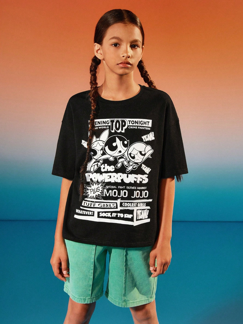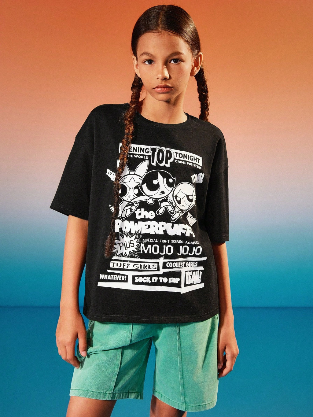 BELLAVOG Tween Girl crtana crno-bijela sitotiskarska grafika ležerna majica kratkih rukava s okruglim izrezom