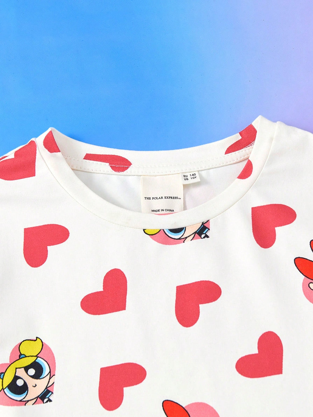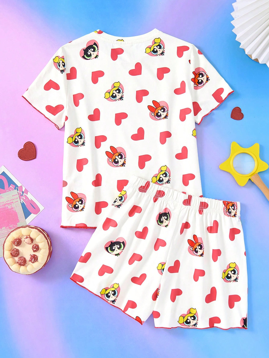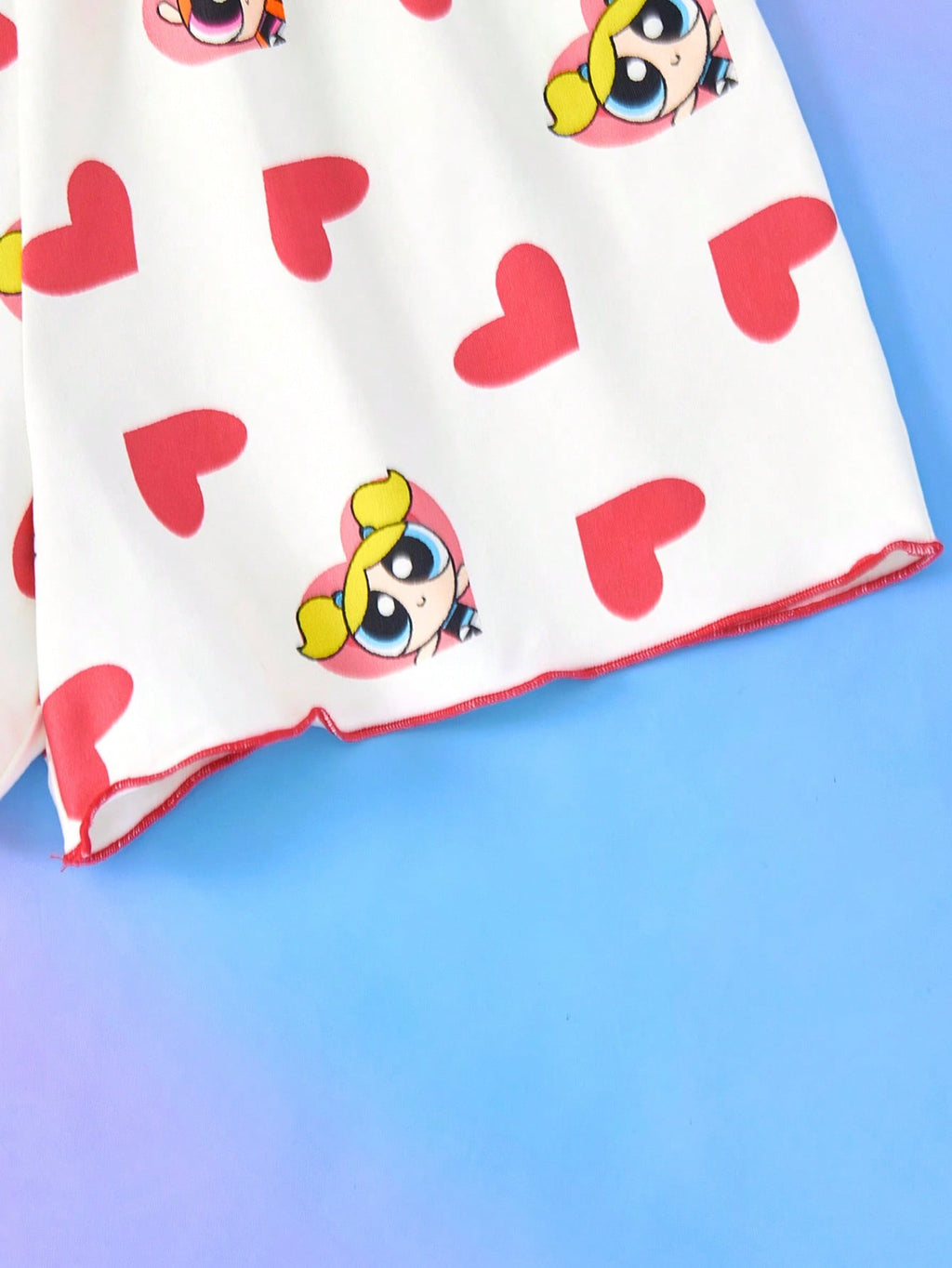 BELLAVOG Majica i kratke hlače za djevojčice tinejdžerice s printom slatkog srca i cvijeta, mjehurića i ljutića, set od 2 komada za kućnu odjeću, pogodan za proljeće i ljeto
