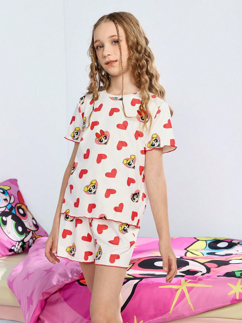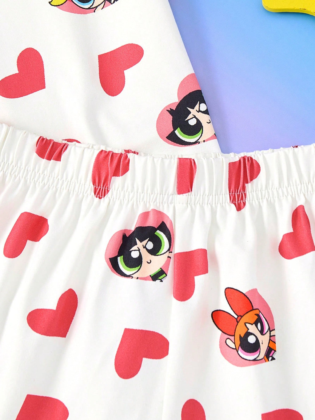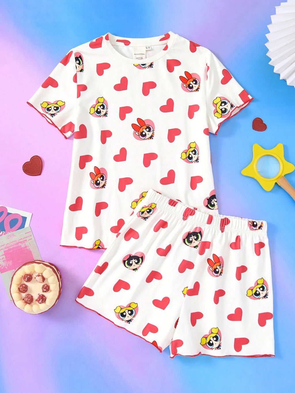 BELLAVOG Majica i kratke hlače za djevojčice tinejdžerice s printom slatkog srca i cvijeta, mjehurića i ljutića, set od 2 komada za kućnu odjeću, pogodan za proljeće i ljeto