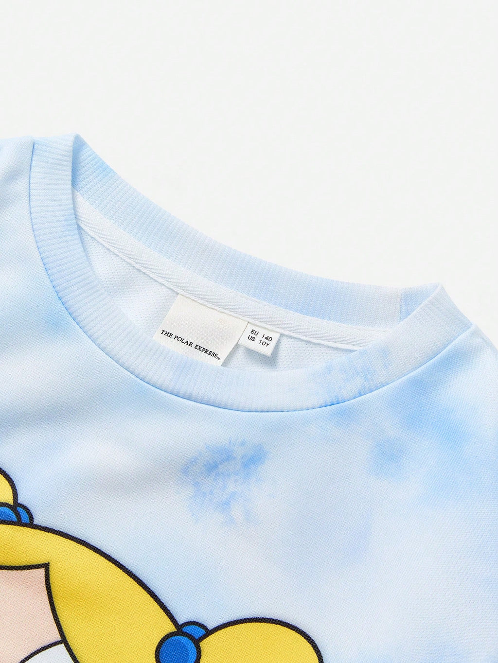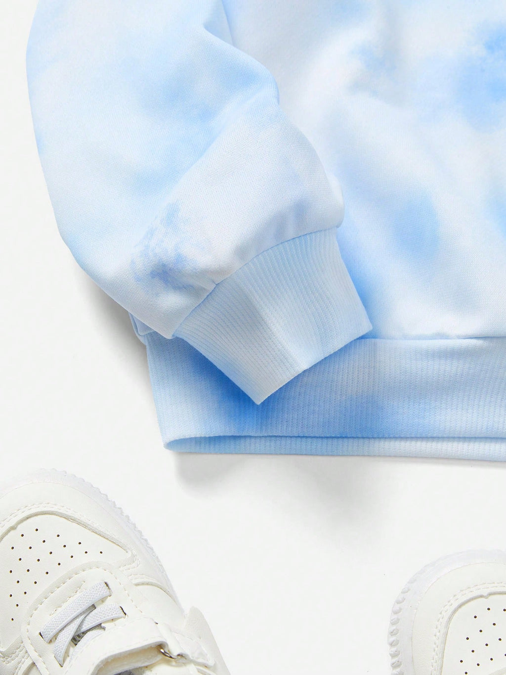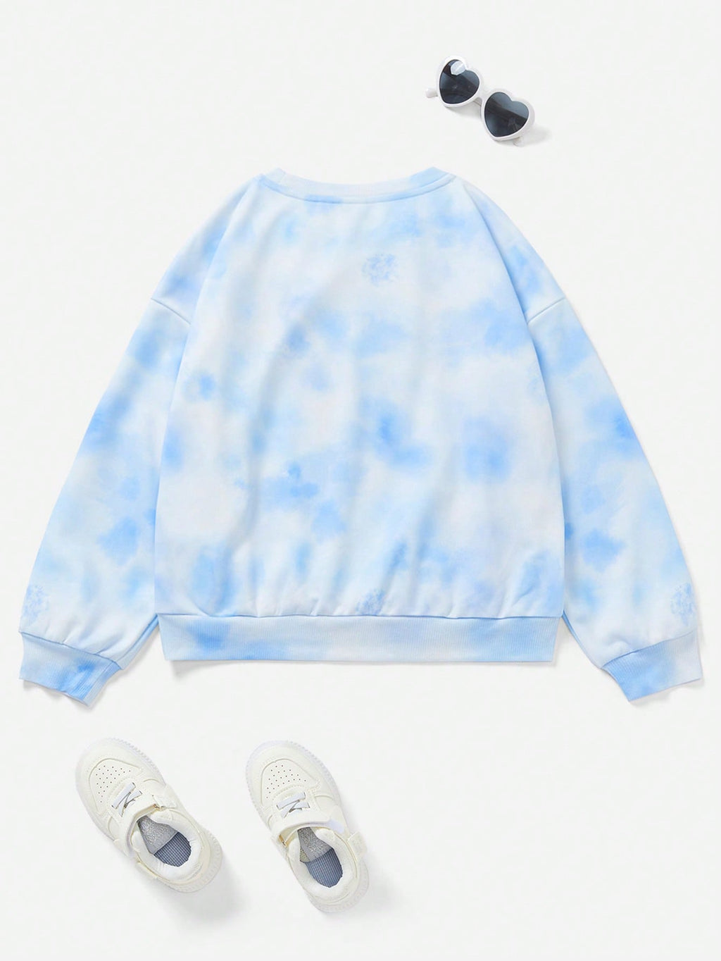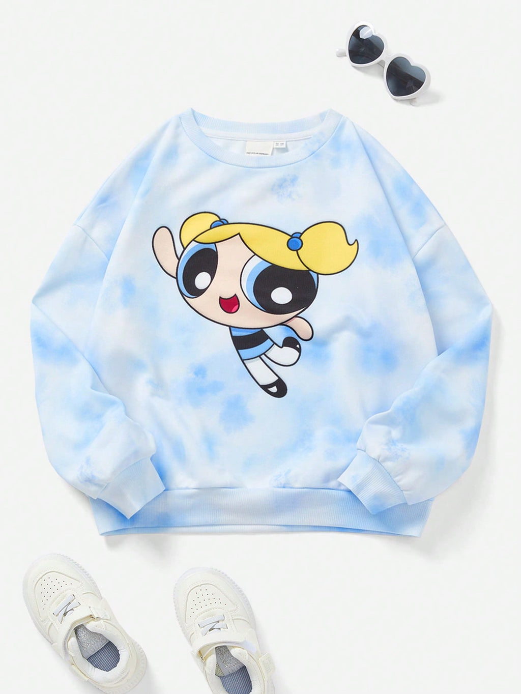 BELLAVOG - Pulover s dugim rukavima i okruglim izrezom za tinejdžerke s crtanim printom, plave boje s tie-dye priнтом