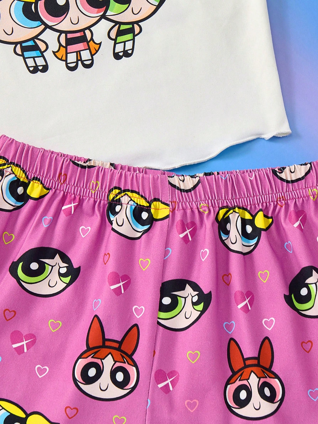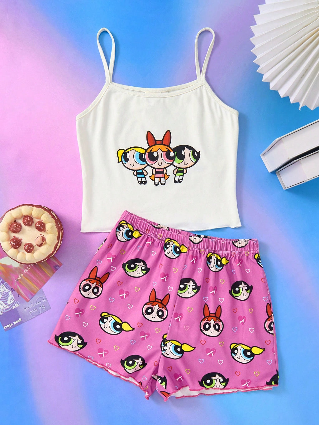 BELLAVOG Tween Girl Cute Cartoon Graphic White Casual Versatile Cami Top And Rose Pink Shorts Comfortable Pajamas Set
