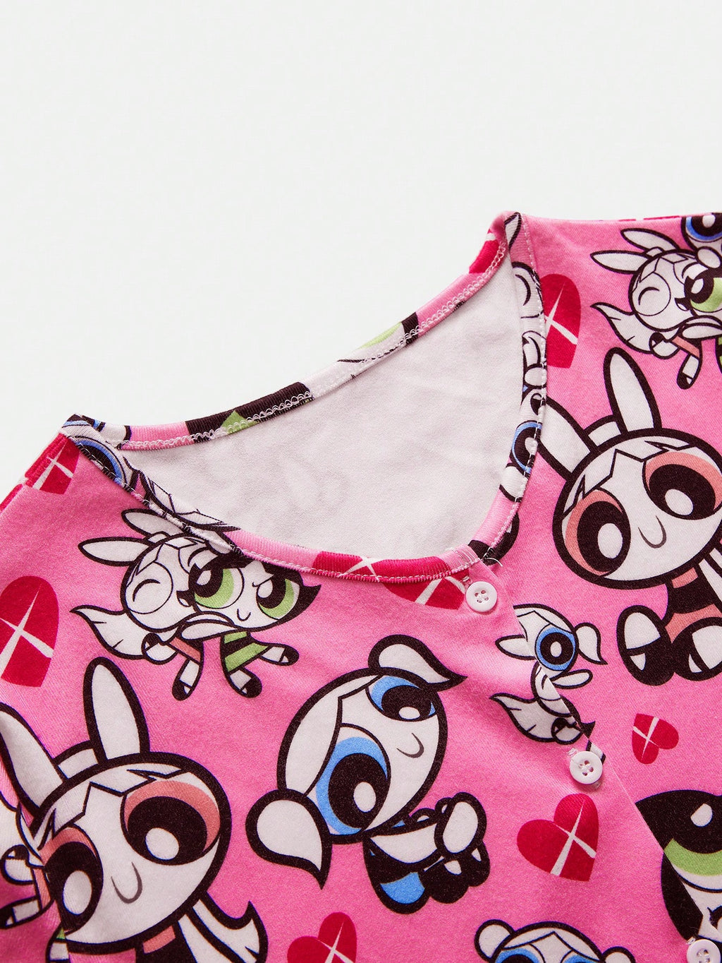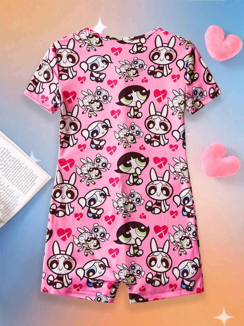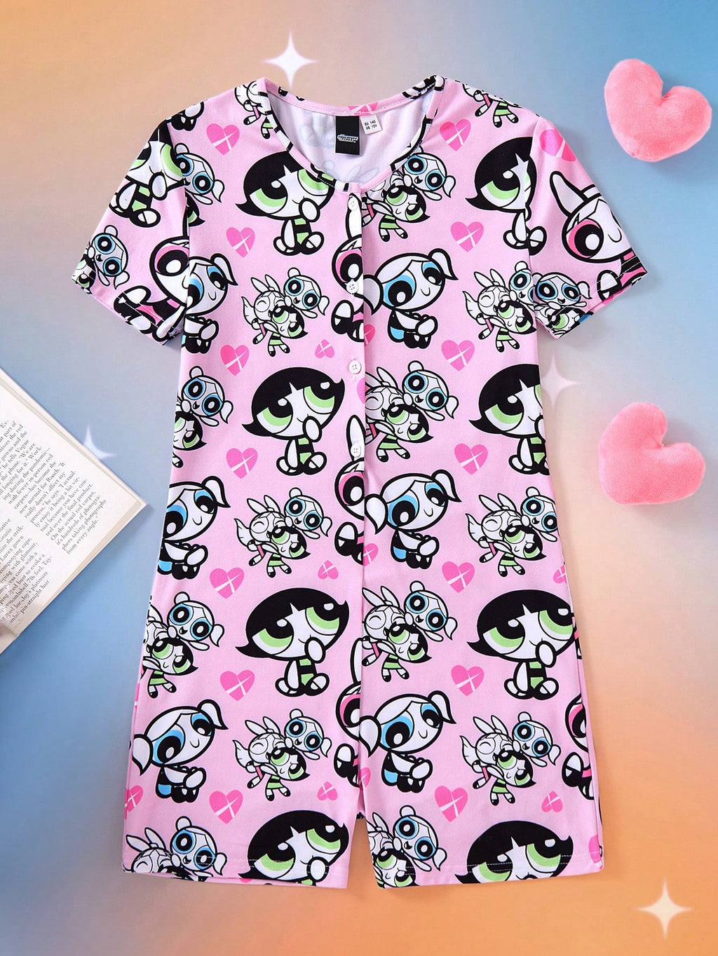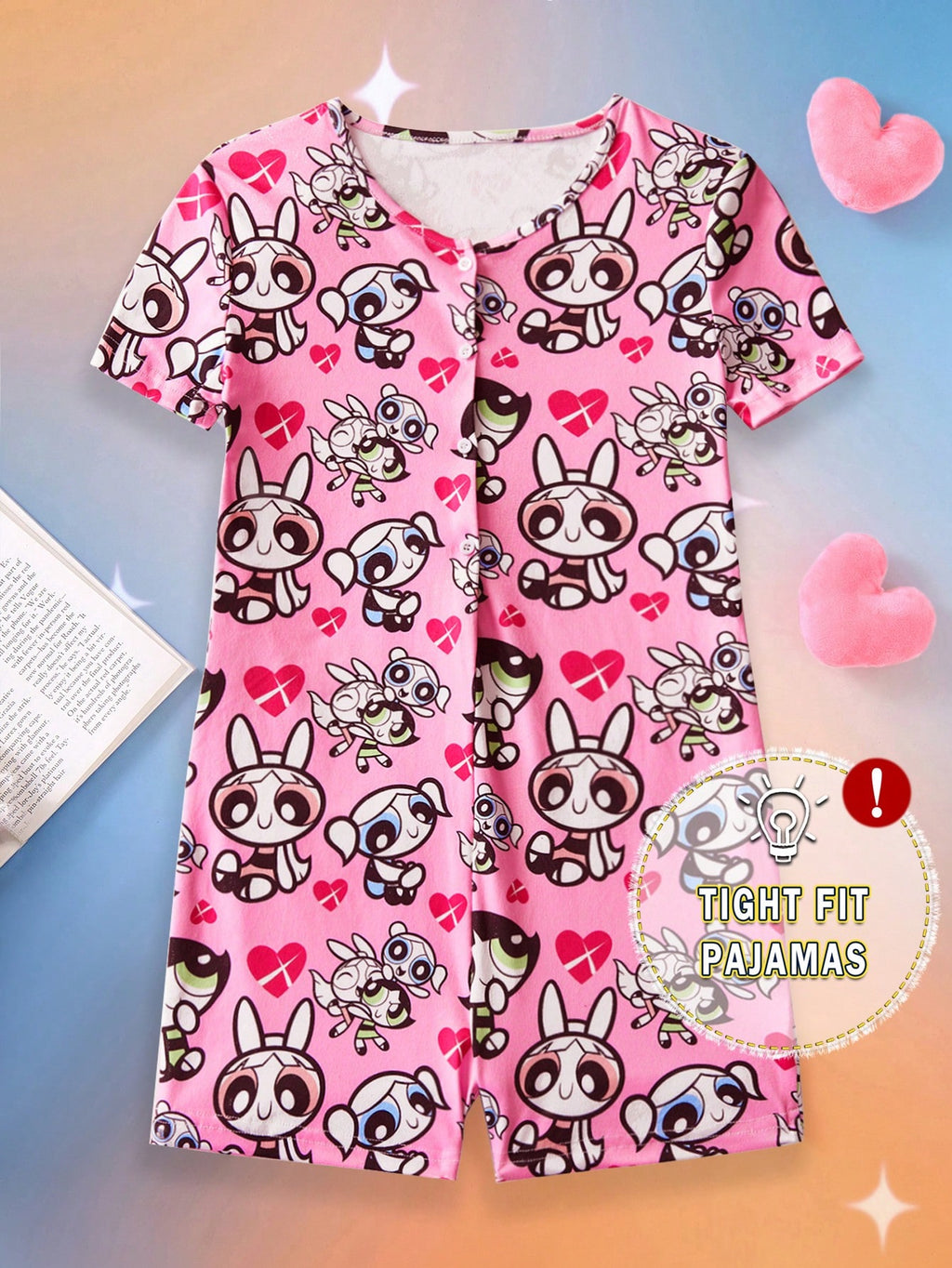 BELLAVOG Djevojčica za tinejdžere s printom srca i dugmićima, udoban ležerni kombinezon