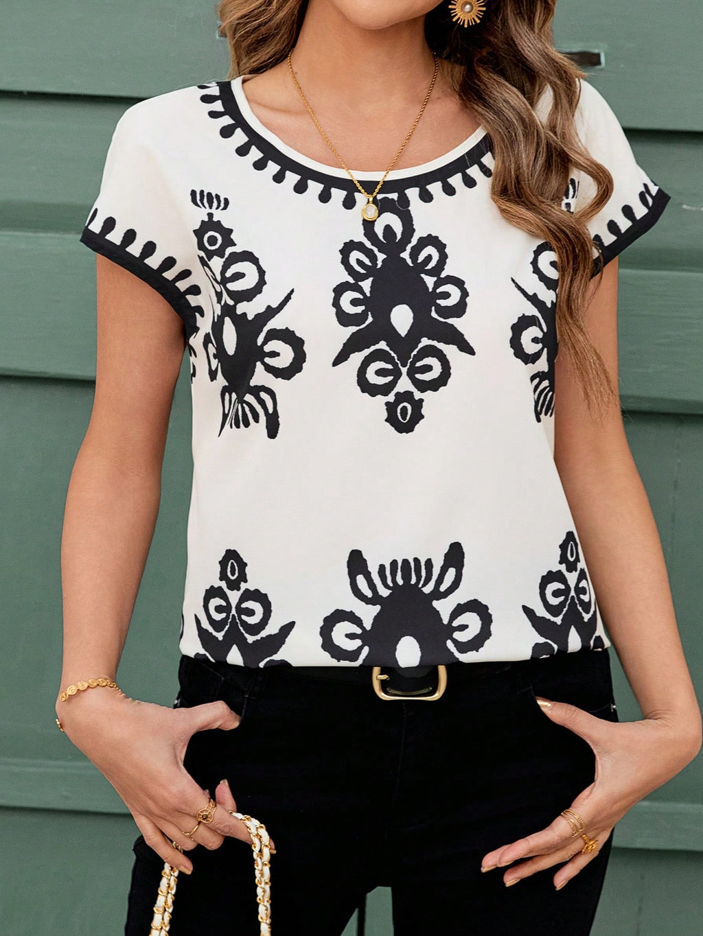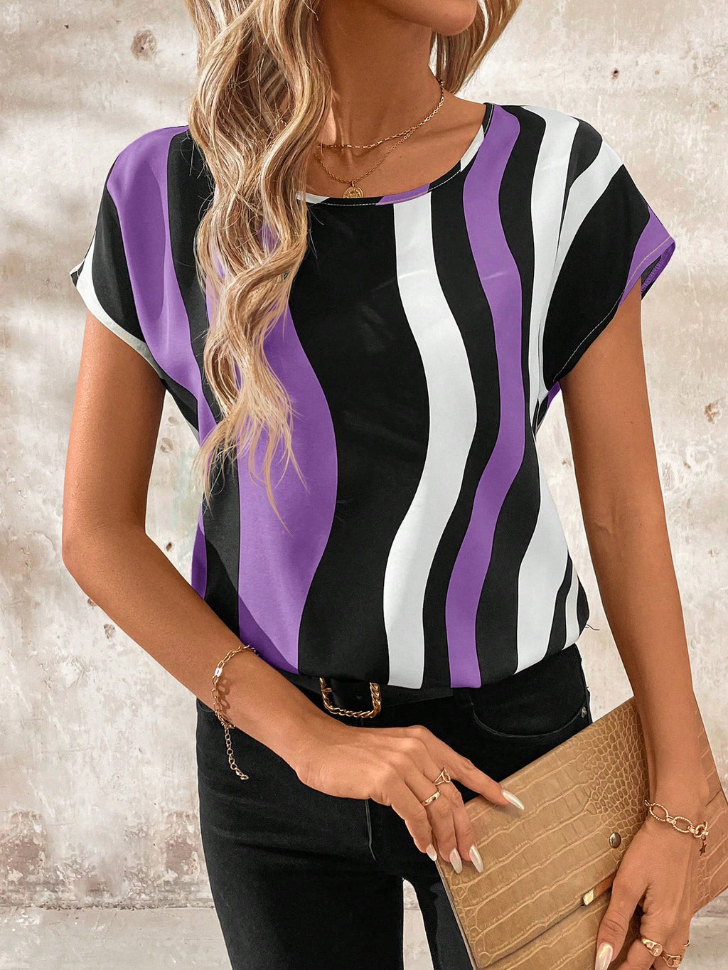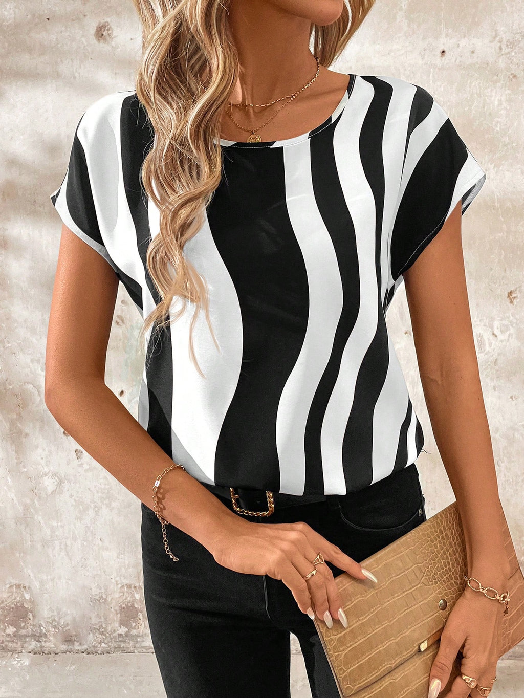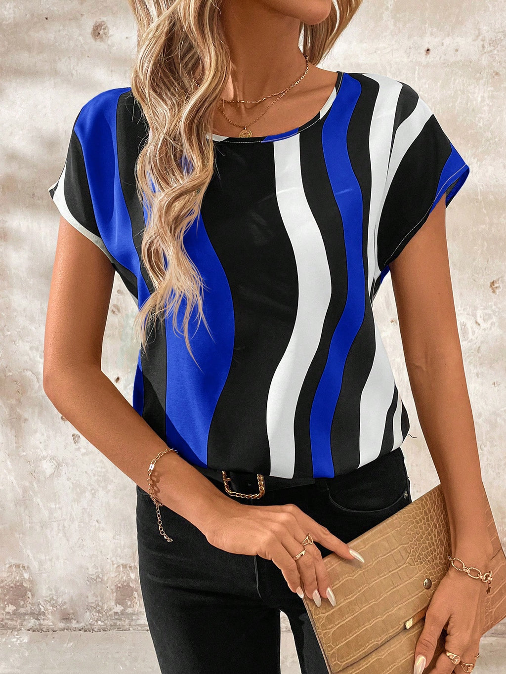 BELLAVOG Ženska ljetna košulja kratkih rukava s valovitim uzorkom, majice bez rukava