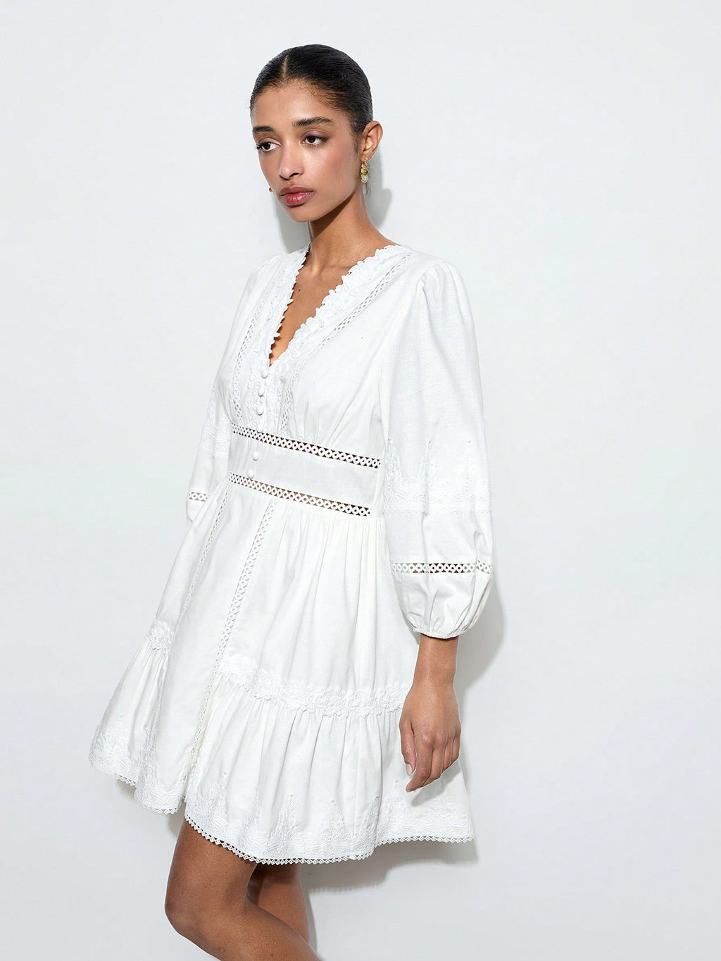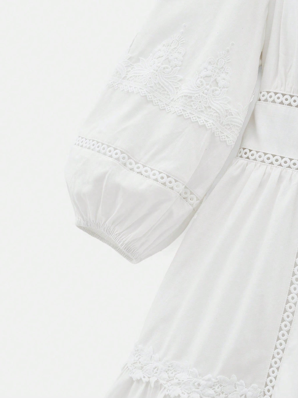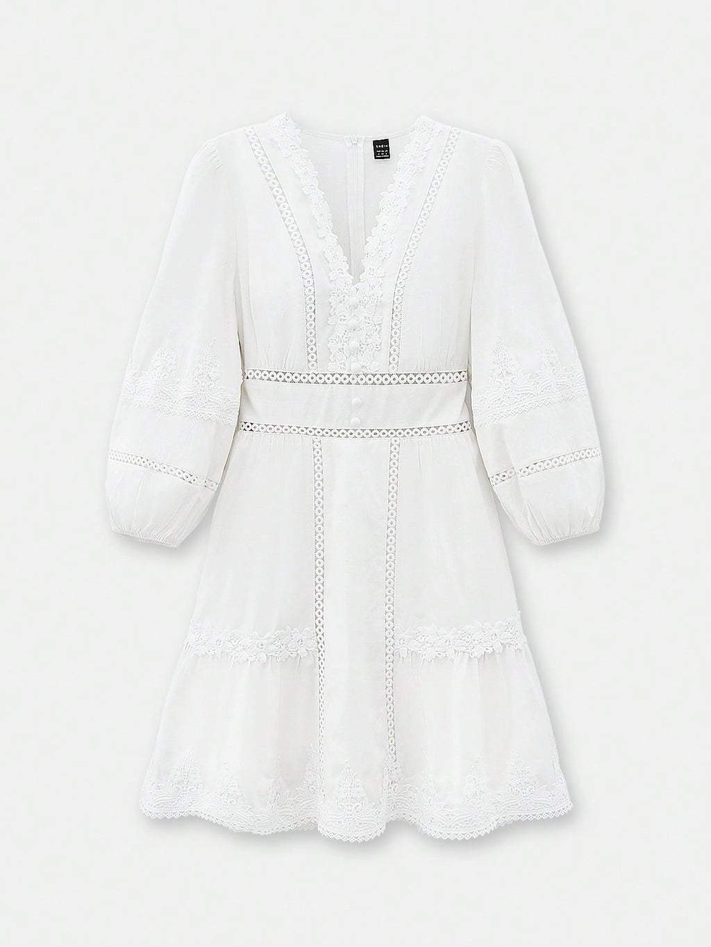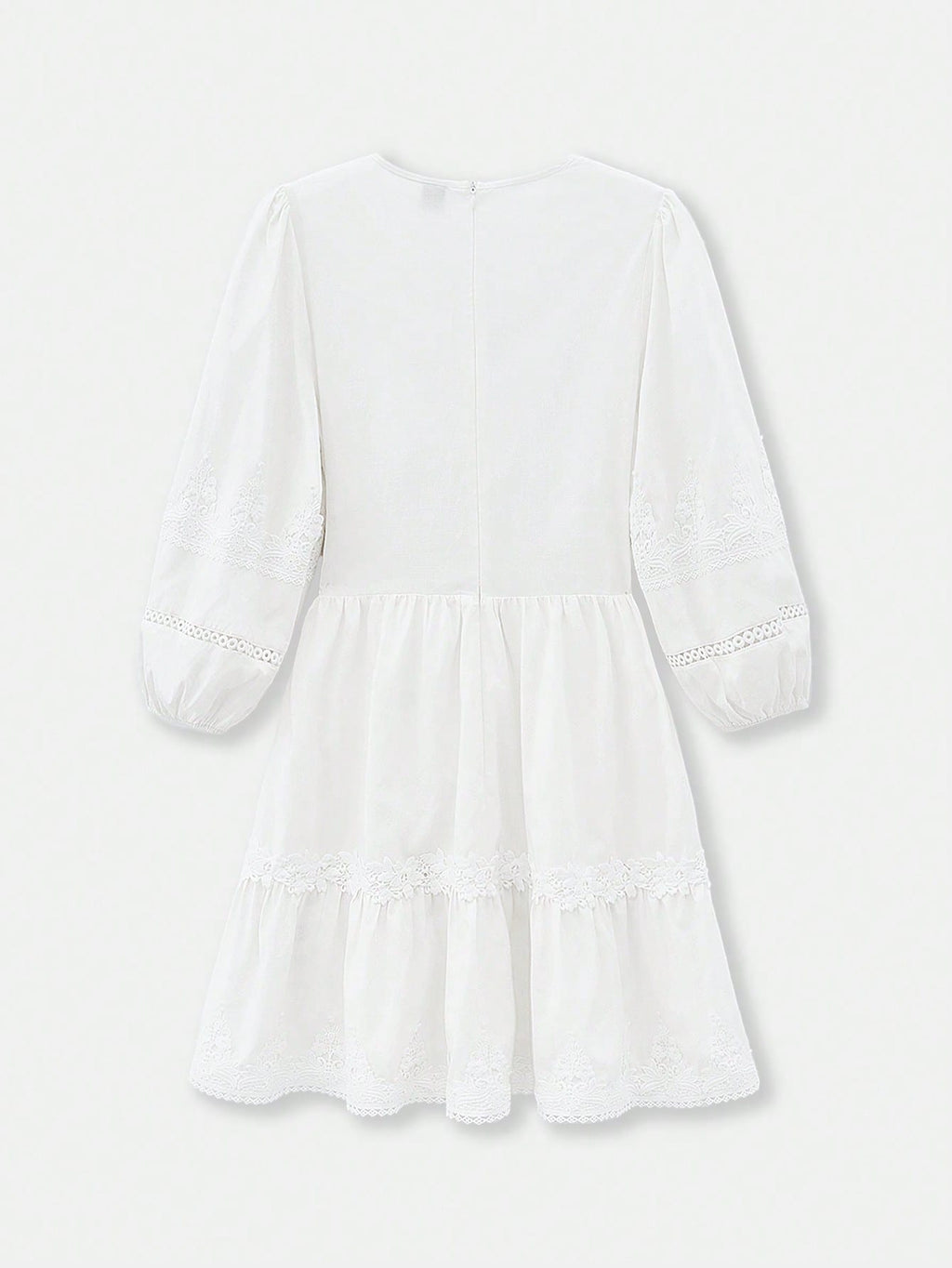 BELLAVOG Women Casual Solid Color Lace Trim Mini Dress