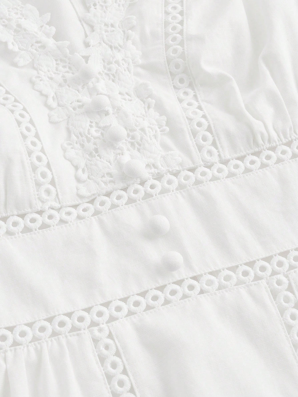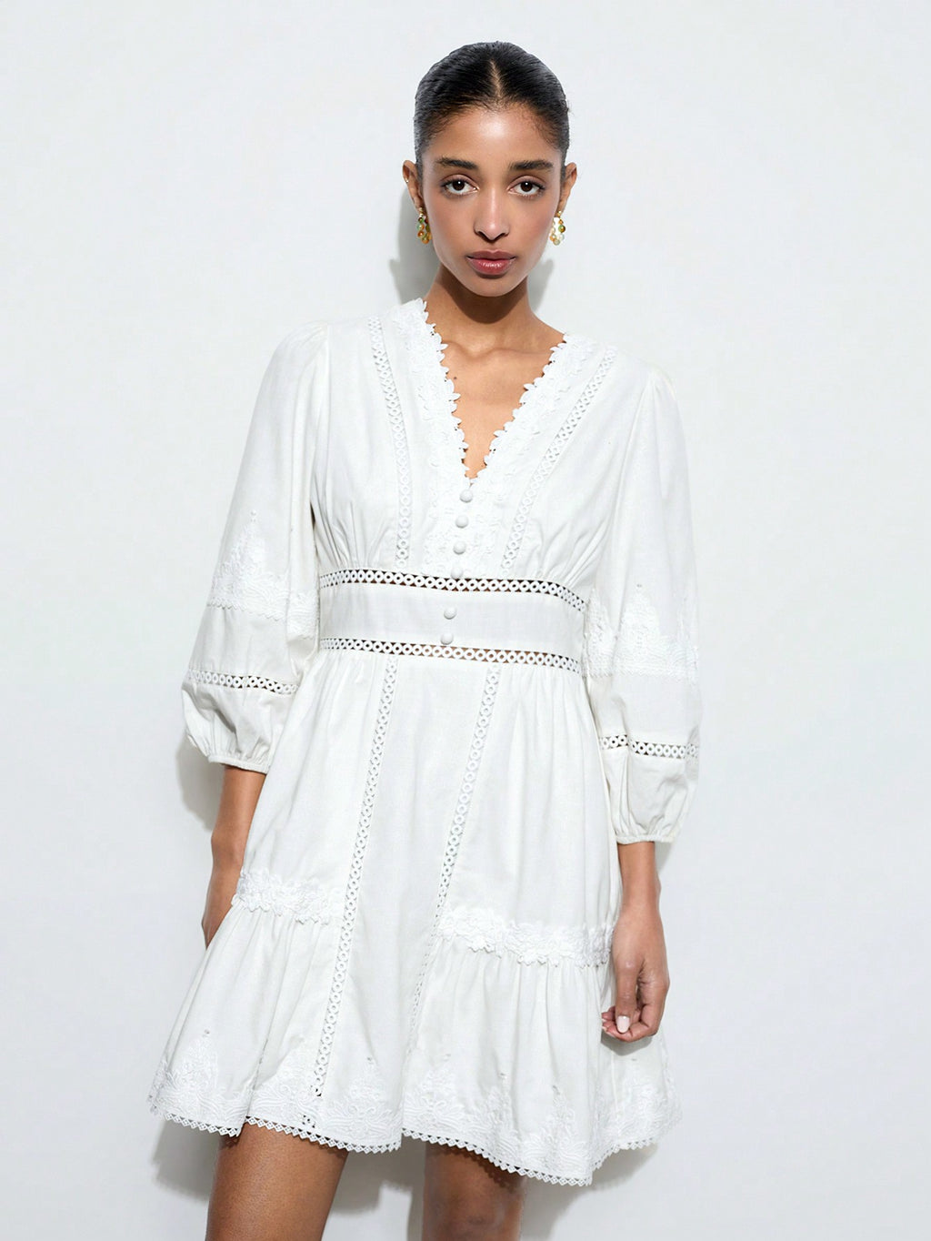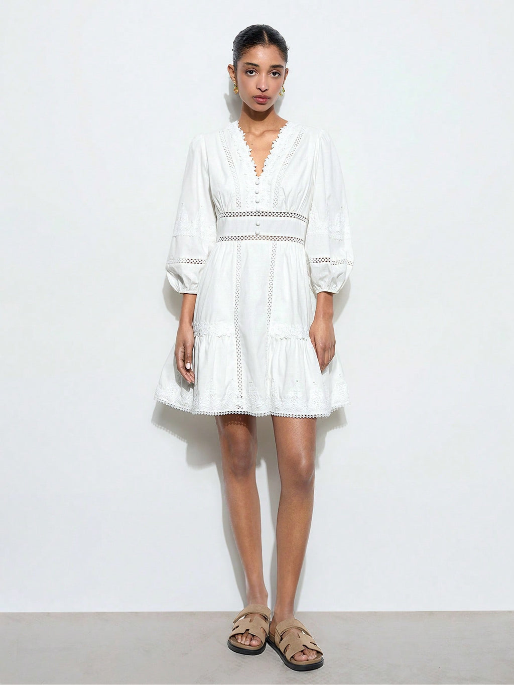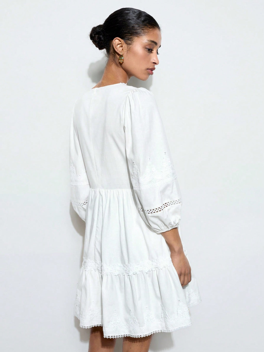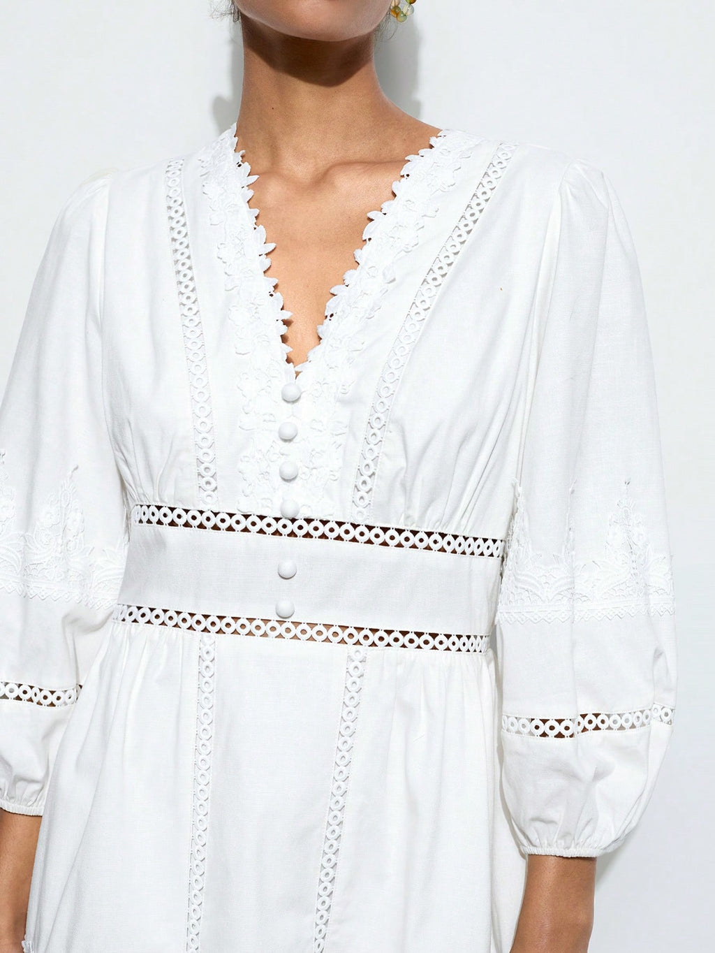 BELLAVOG Women Casual Solid Color Lace Trim Mini Dress