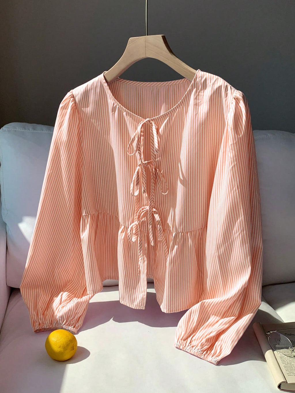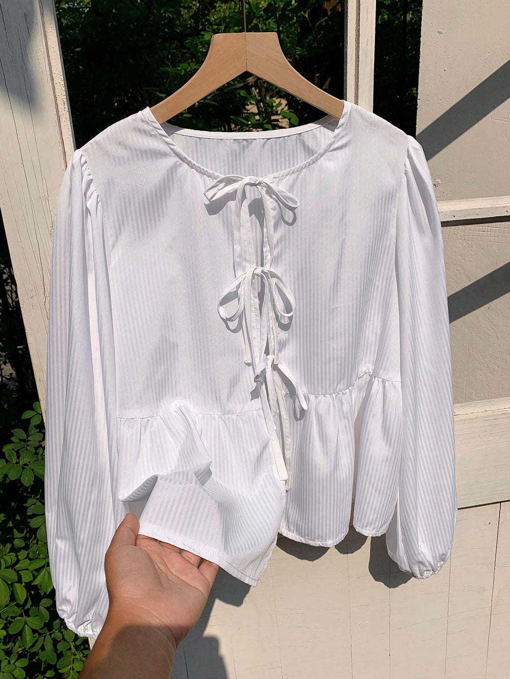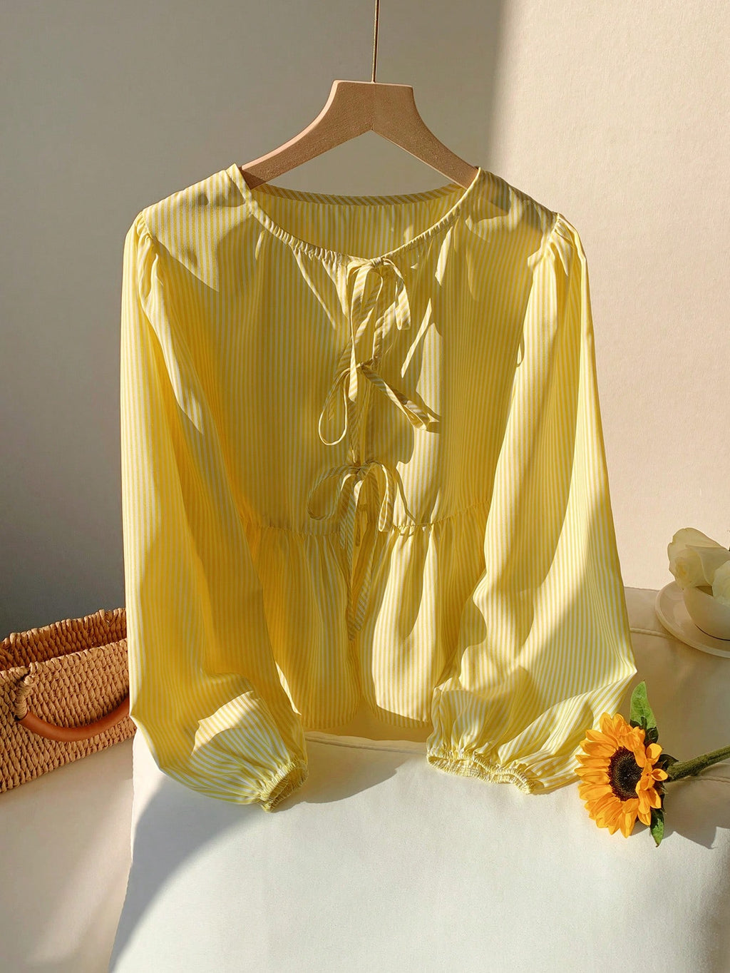 BELLAVOG Ženski ležerni top s dugim rukavima i naborima, s vezanjem, za svakodnevno nošenje