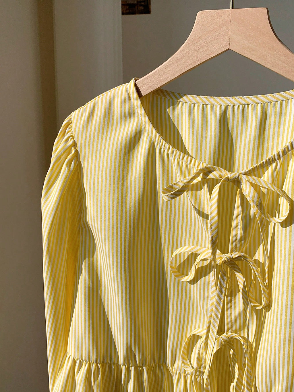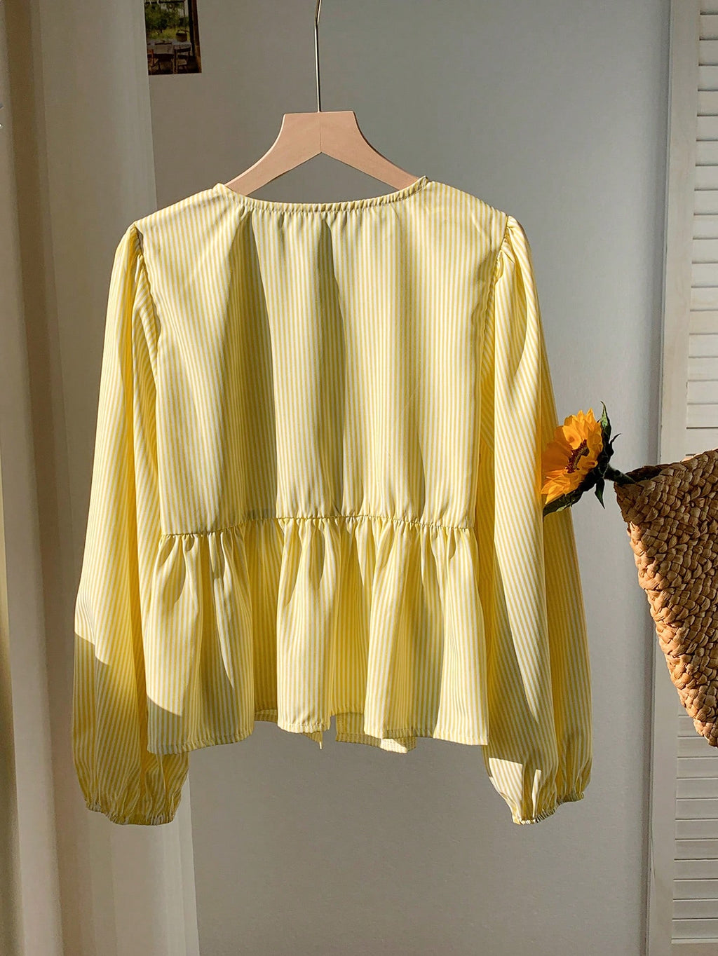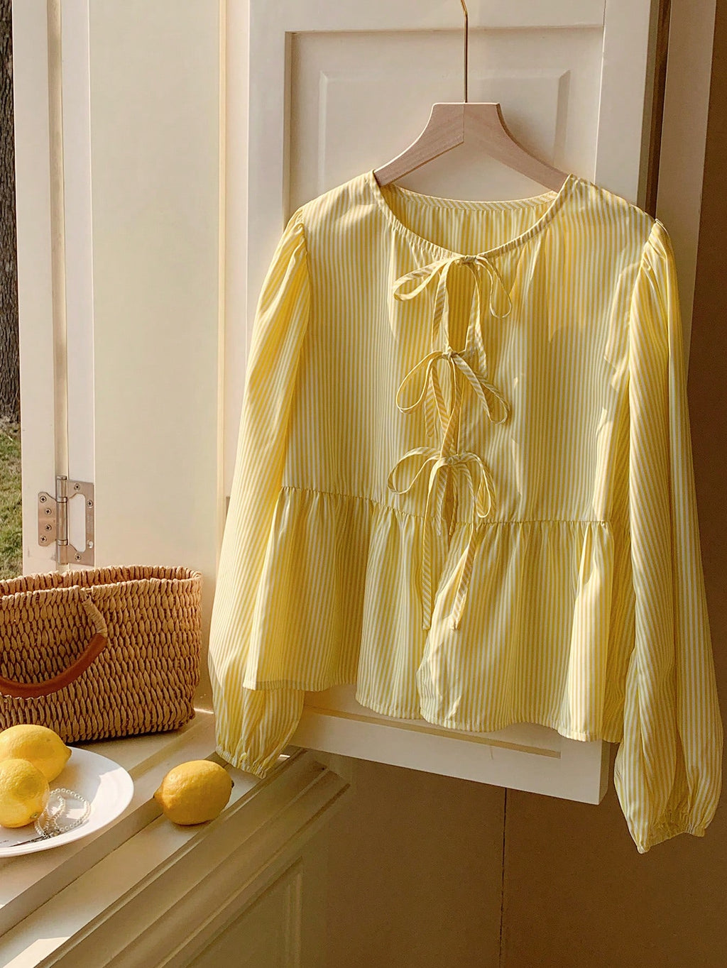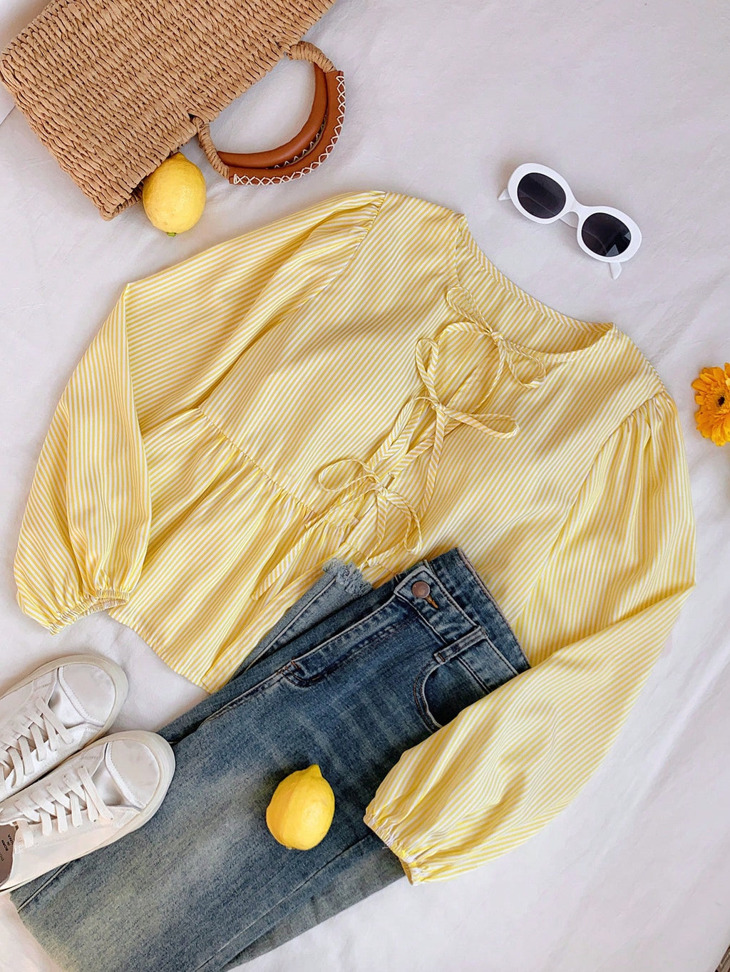 BELLAVOG Ženski ležerni top s dugim rukavima i naborima, s vezanjem, za svakodnevno nošenje
