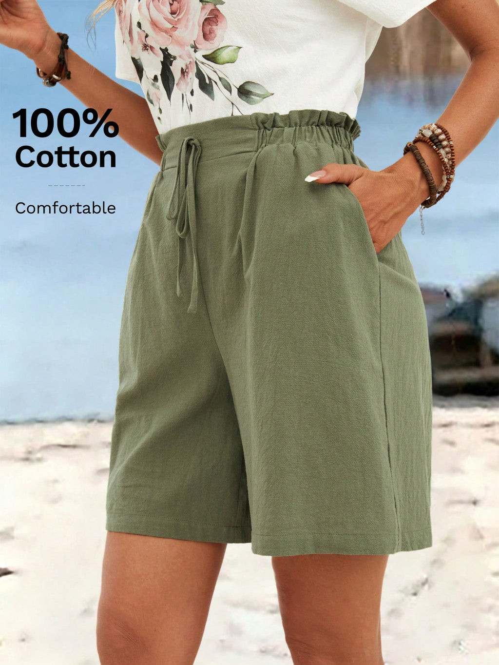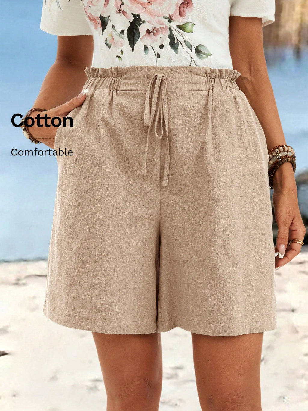 BELLAVOG Women Loose Solid Color Lace Trim Casual Shorts For Summer