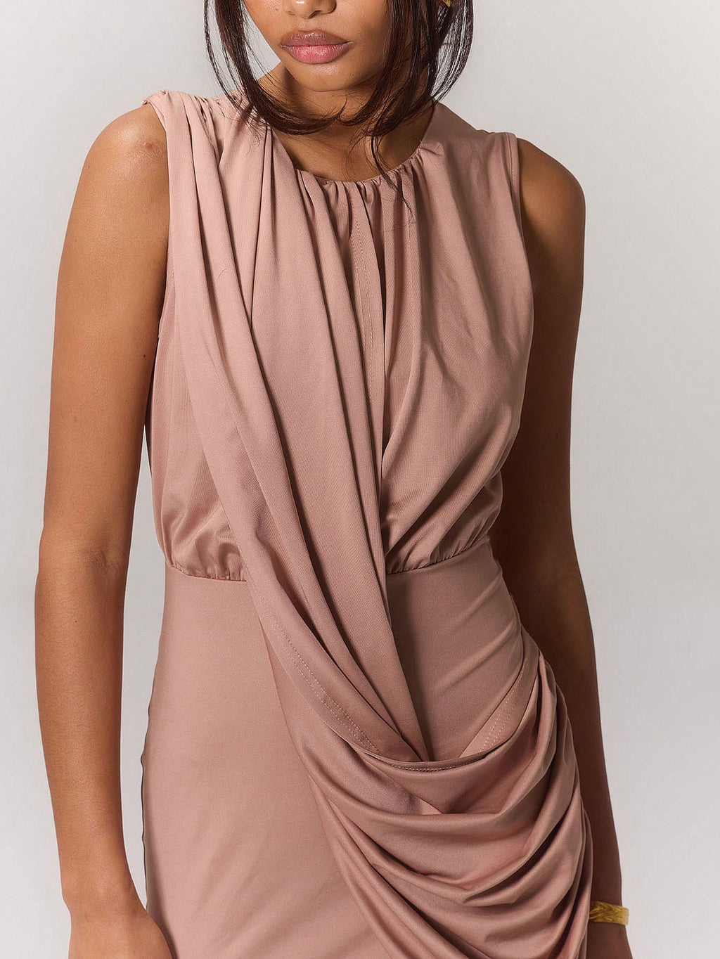 BELLAVOG Women Plain Color Drape Front Sleeveless Mini Dress, For Summer Spring Sexy Cute