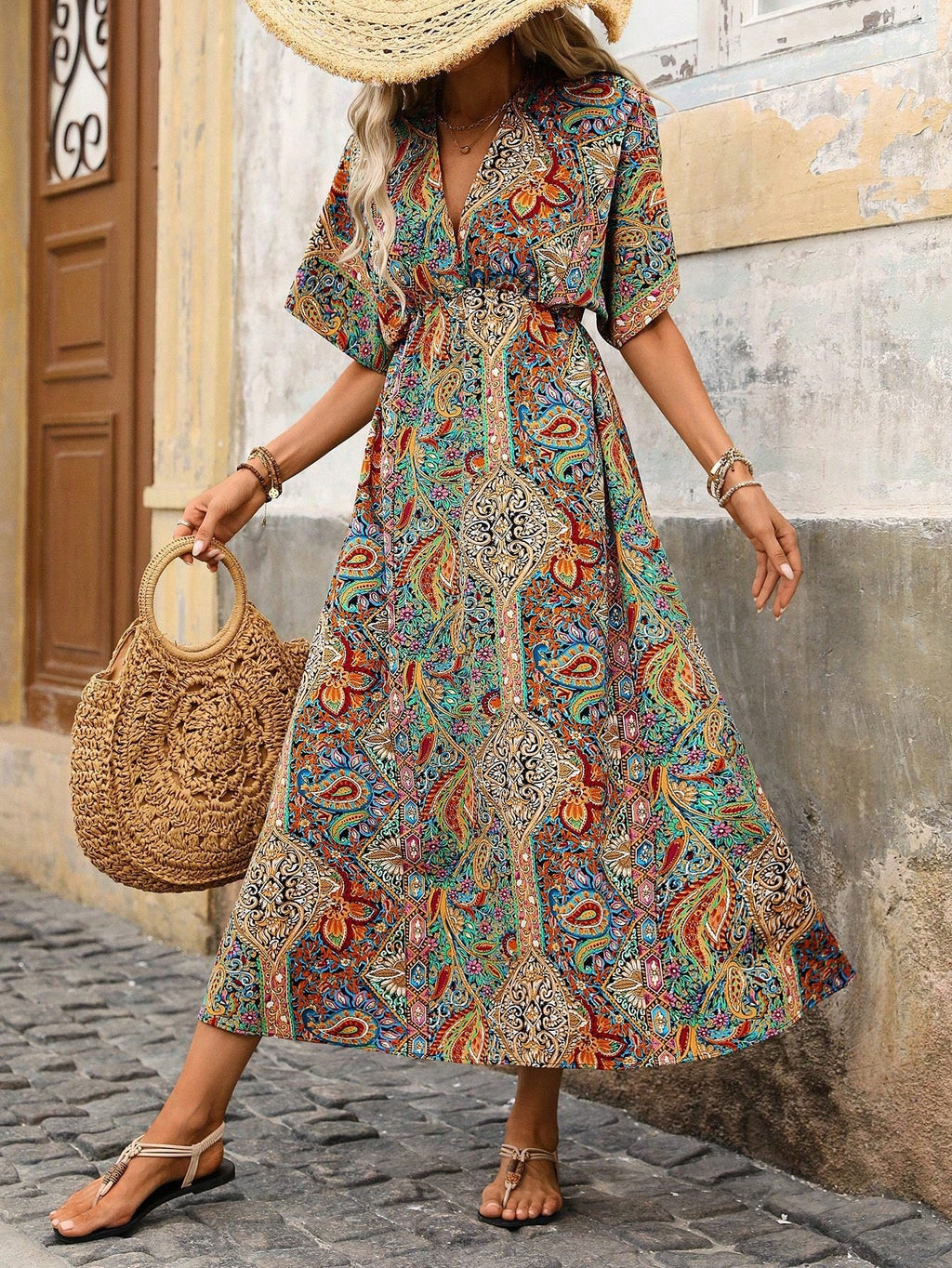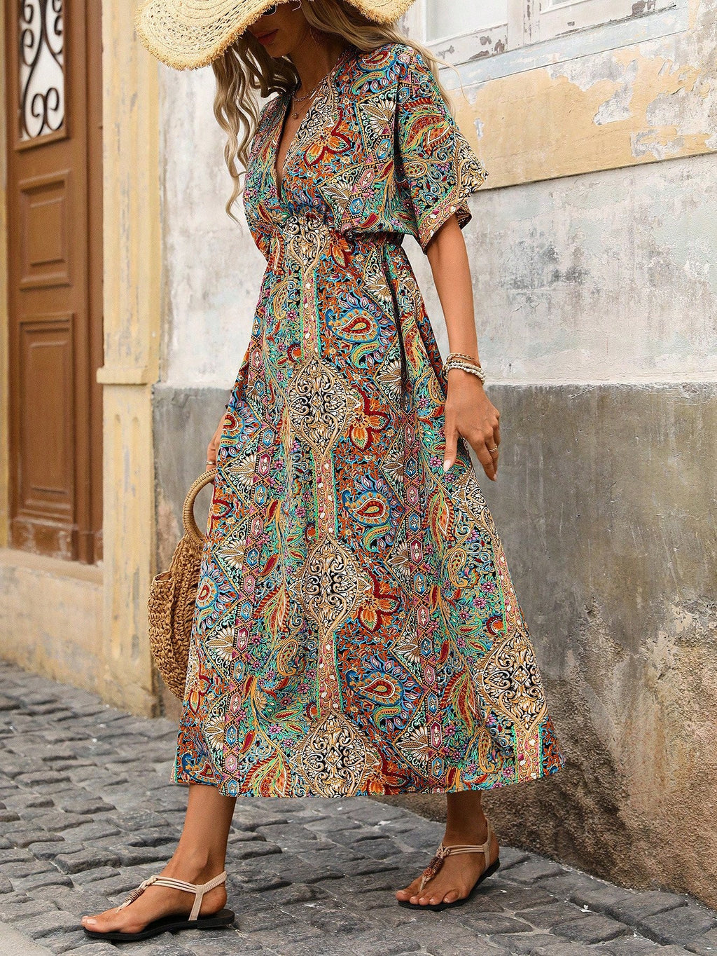 BELLAVOG Ženska elegantna maksi haljina s vintage cvjetnim printom