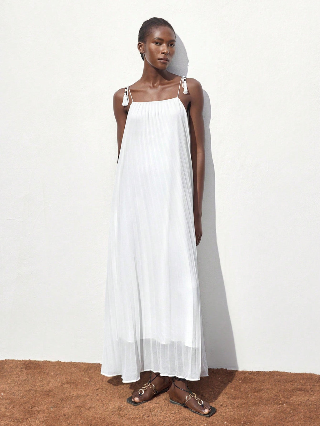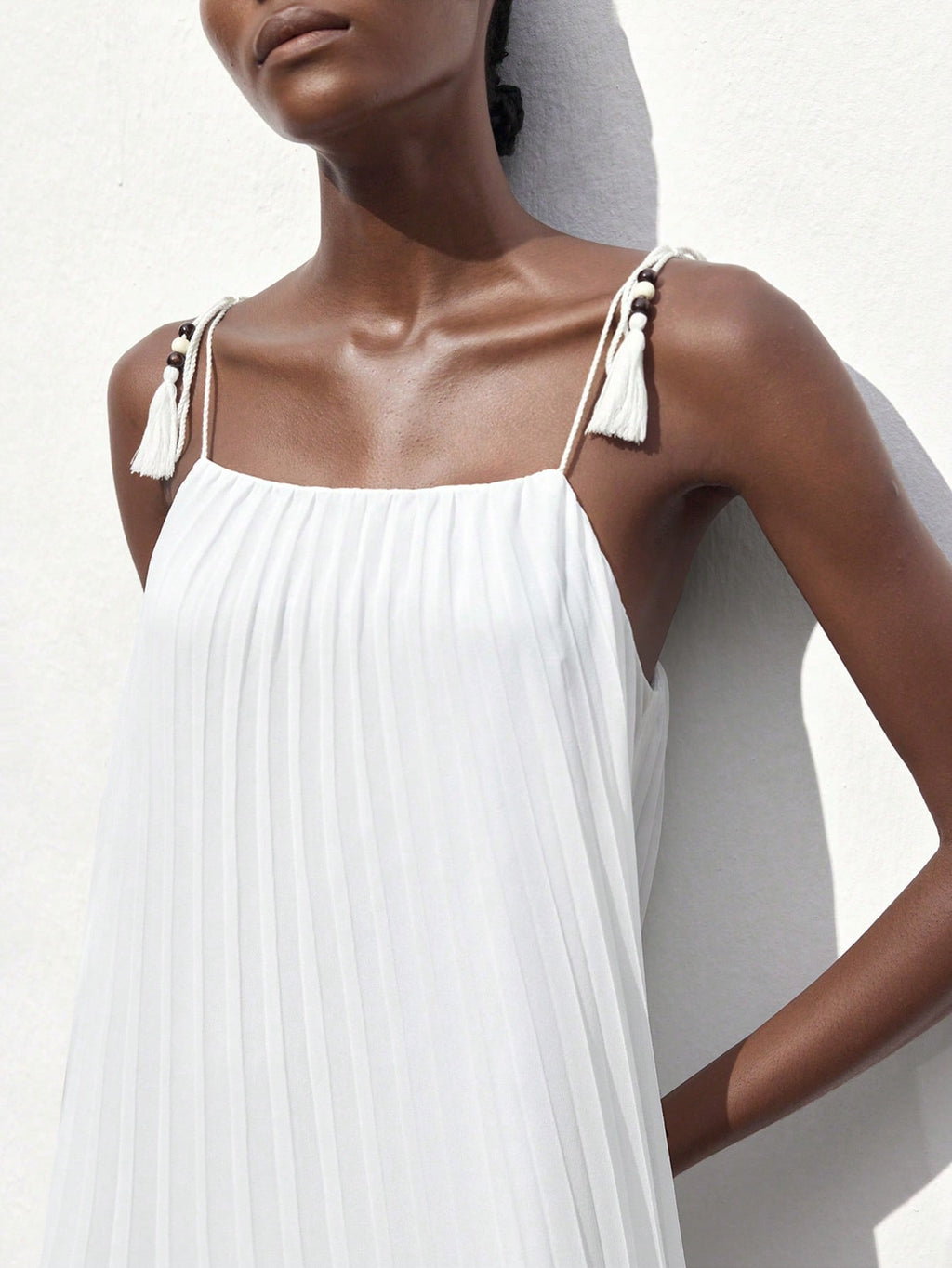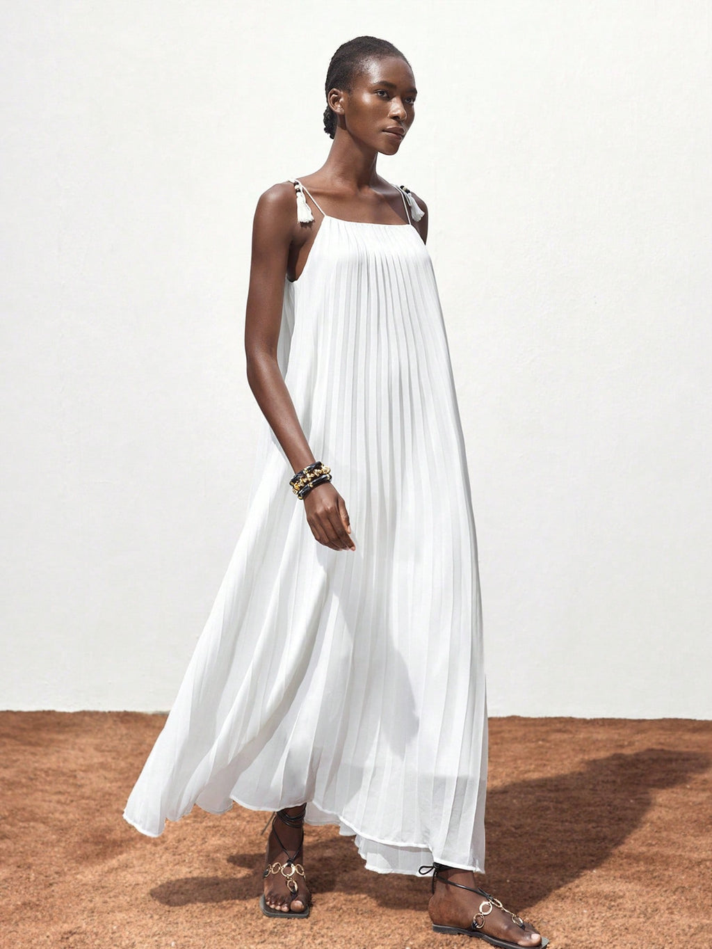 BELLAVOG Women White Pleated Design Summer Dress, Versatile Modern Casual Holiday Bohemian Loose Strapless Full Flare Maxi Beach Dress For Ibiza Island, Resort, Festival, Graduation