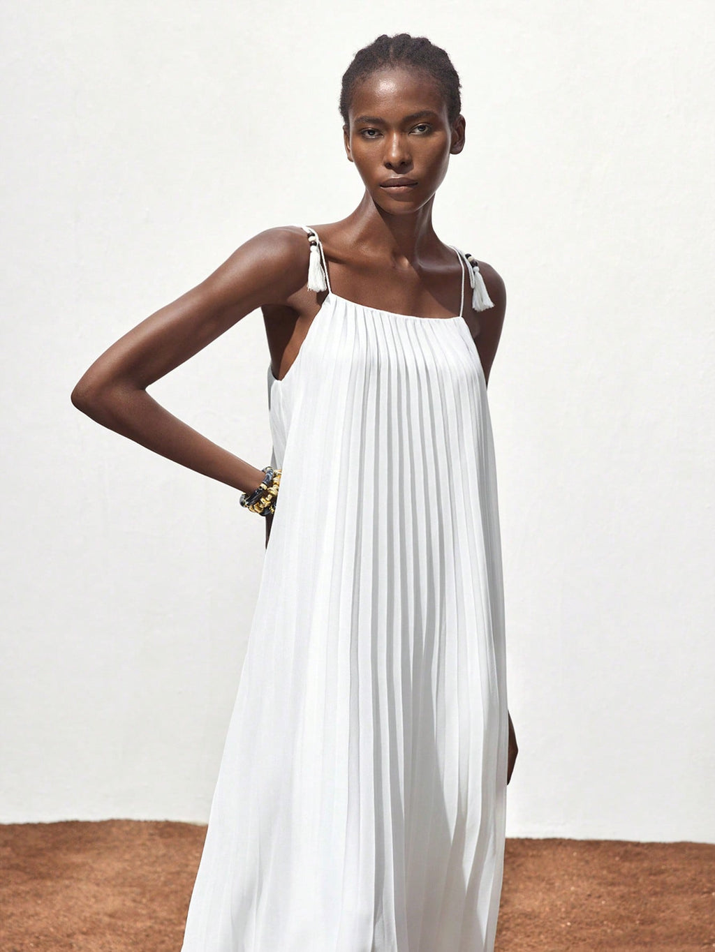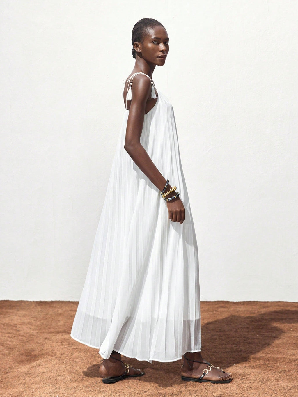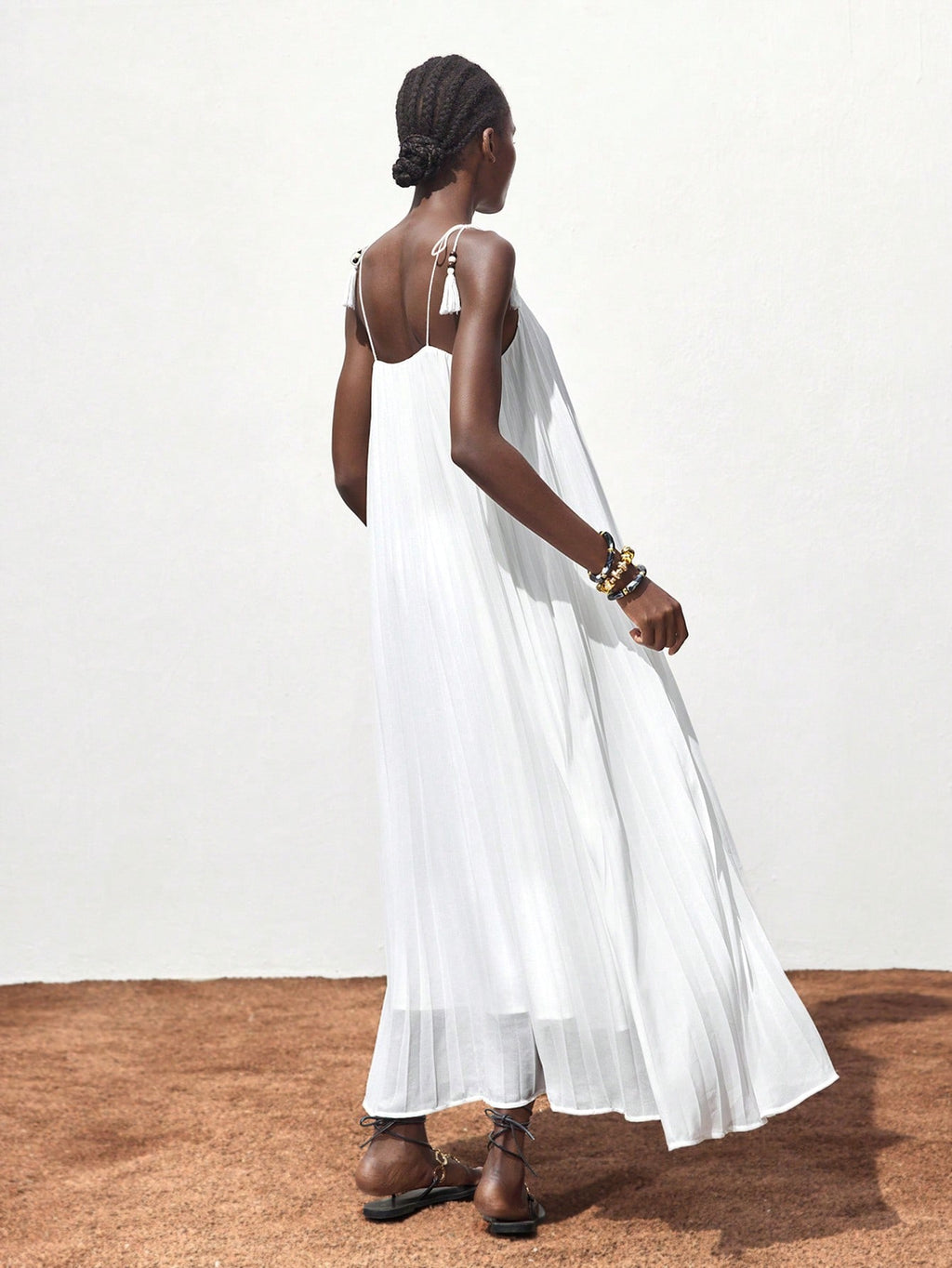 BELLAVOG Women White Pleated Design Summer Dress, Versatile Modern Casual Holiday Bohemian Loose Strapless Full Flare Maxi Beach Dress For Ibiza Island, Resort, Festival, Graduation