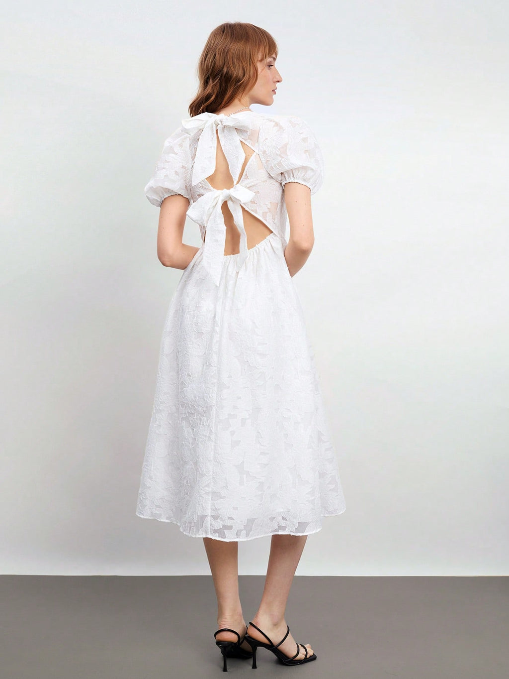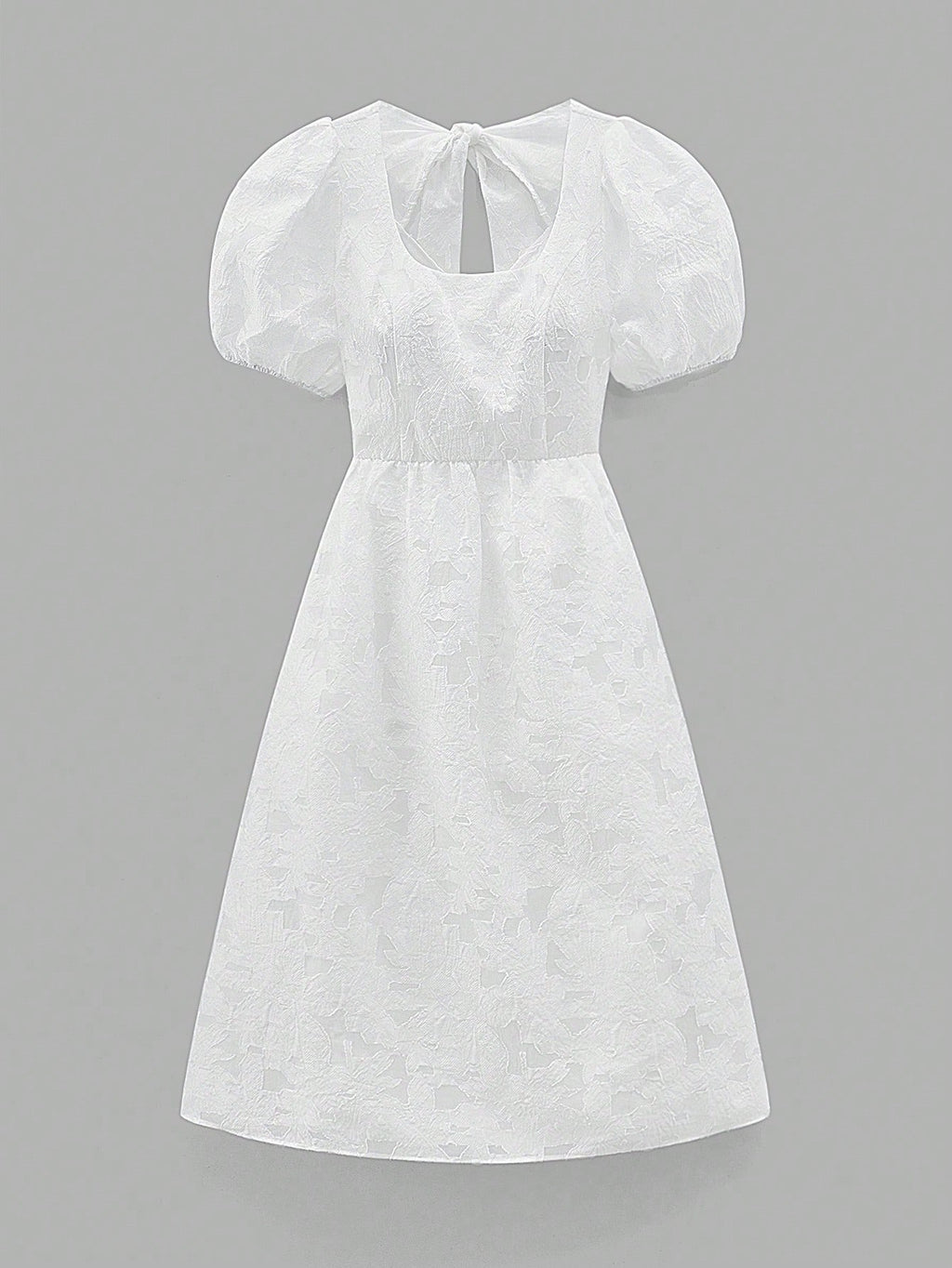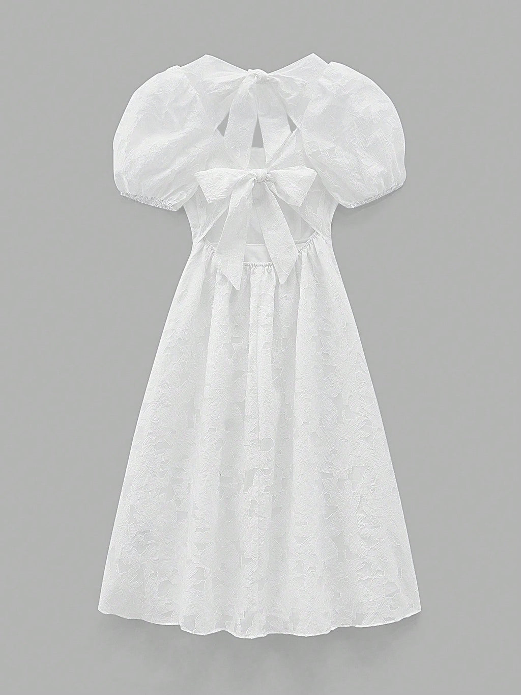 BELLAVOG Women's Backless White Bow Decor Design Blouse, Chic Urban Casual Loose Soft U-Neck Puff Sleeve Short Sleeve Pullover Blouse, Feminine, Graceful, Romantic, French Style, Elegant Cruise Wear Midi Dress