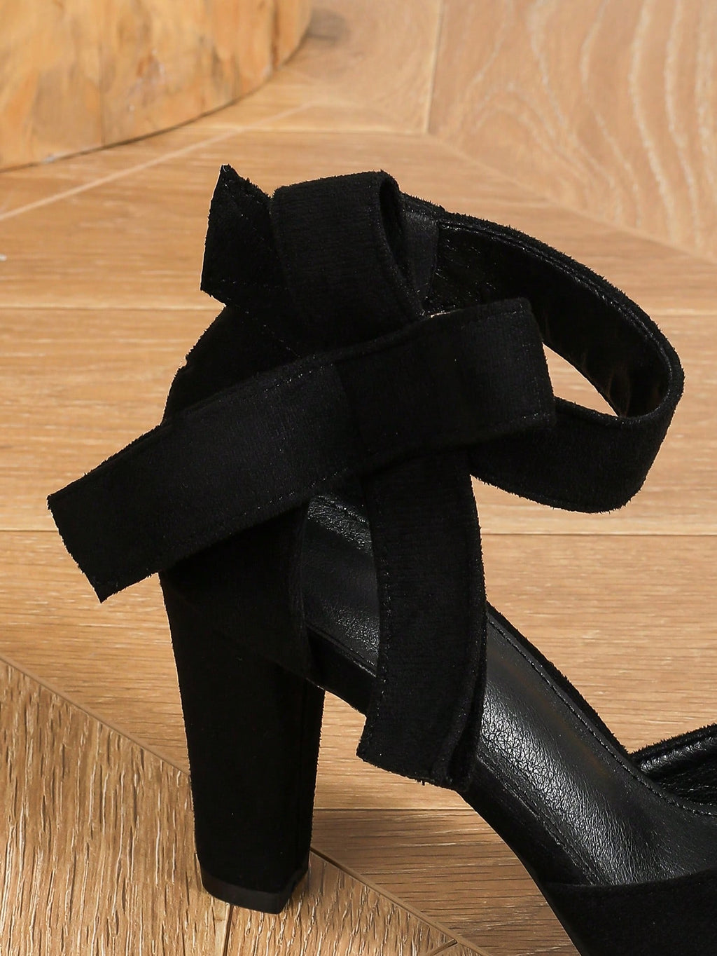 BELLAVOG Ženske cipele s visokom potpeticom, dizajnom mašne i remena oko gležnja, vodootpornom platformom, elegantnim Mary Jane stilom, za jesen i proljeće, od crne antilop tkanine, s debelom potpeticom i seksi crnim okruglim vrhom na platformi