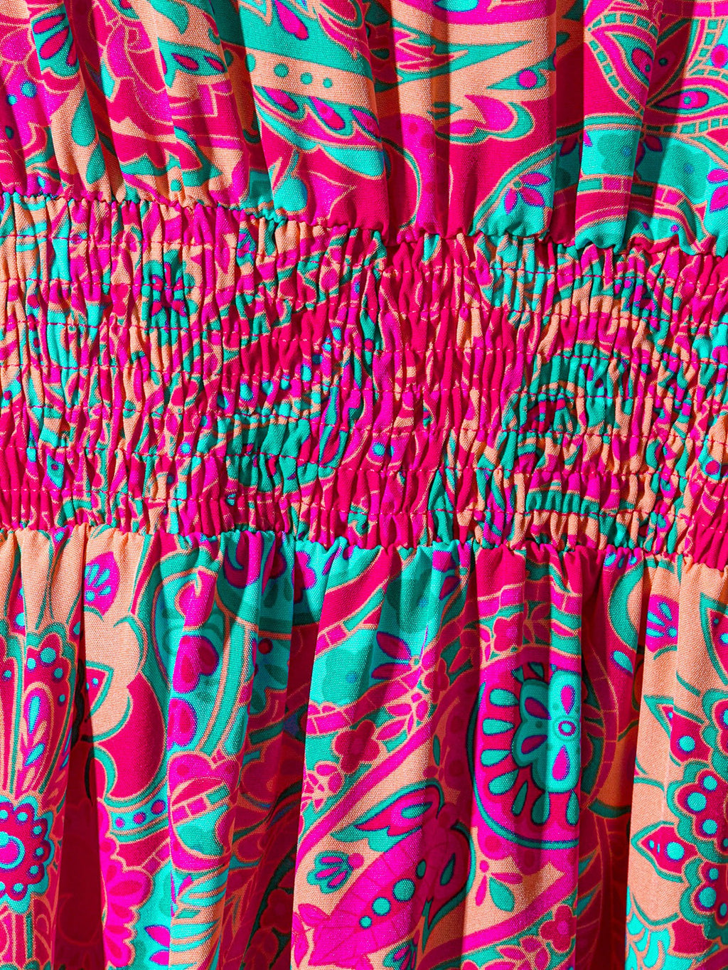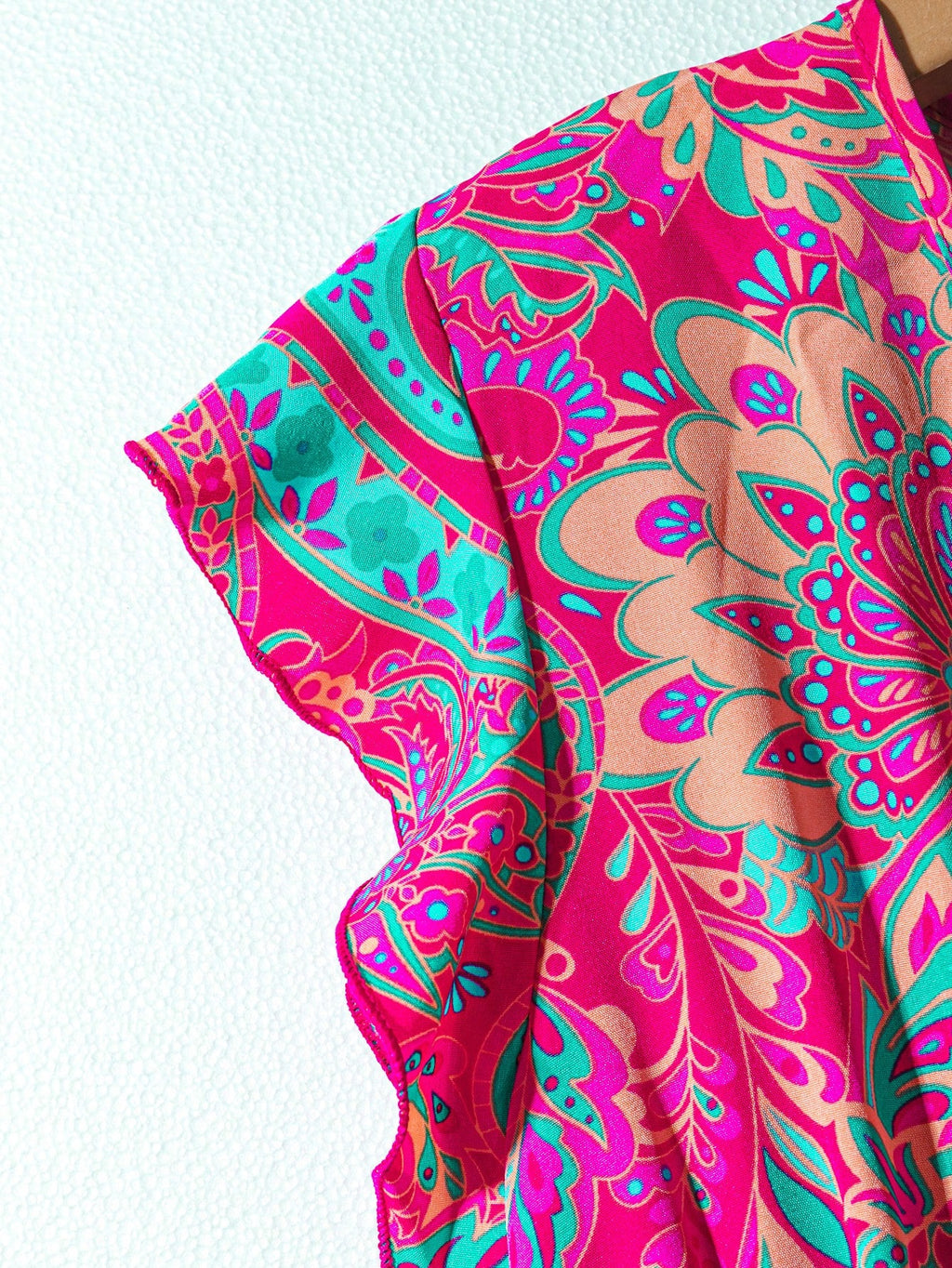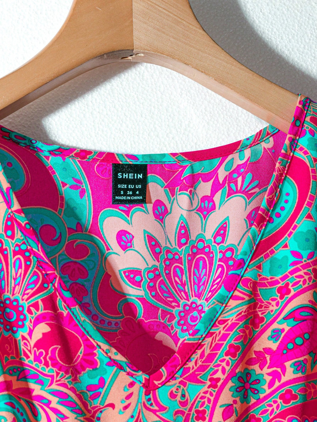 BELLAVOG Ženska ležerna ljetna haljina s V-izrezom i printom, lepršavim rukavima, plisiranim strukom i naboranim rubom, ljetne haljine za žene