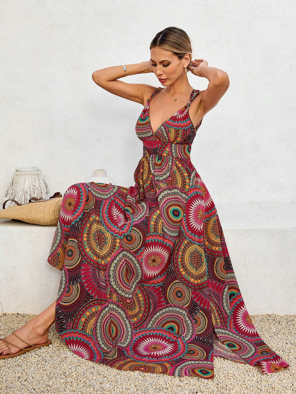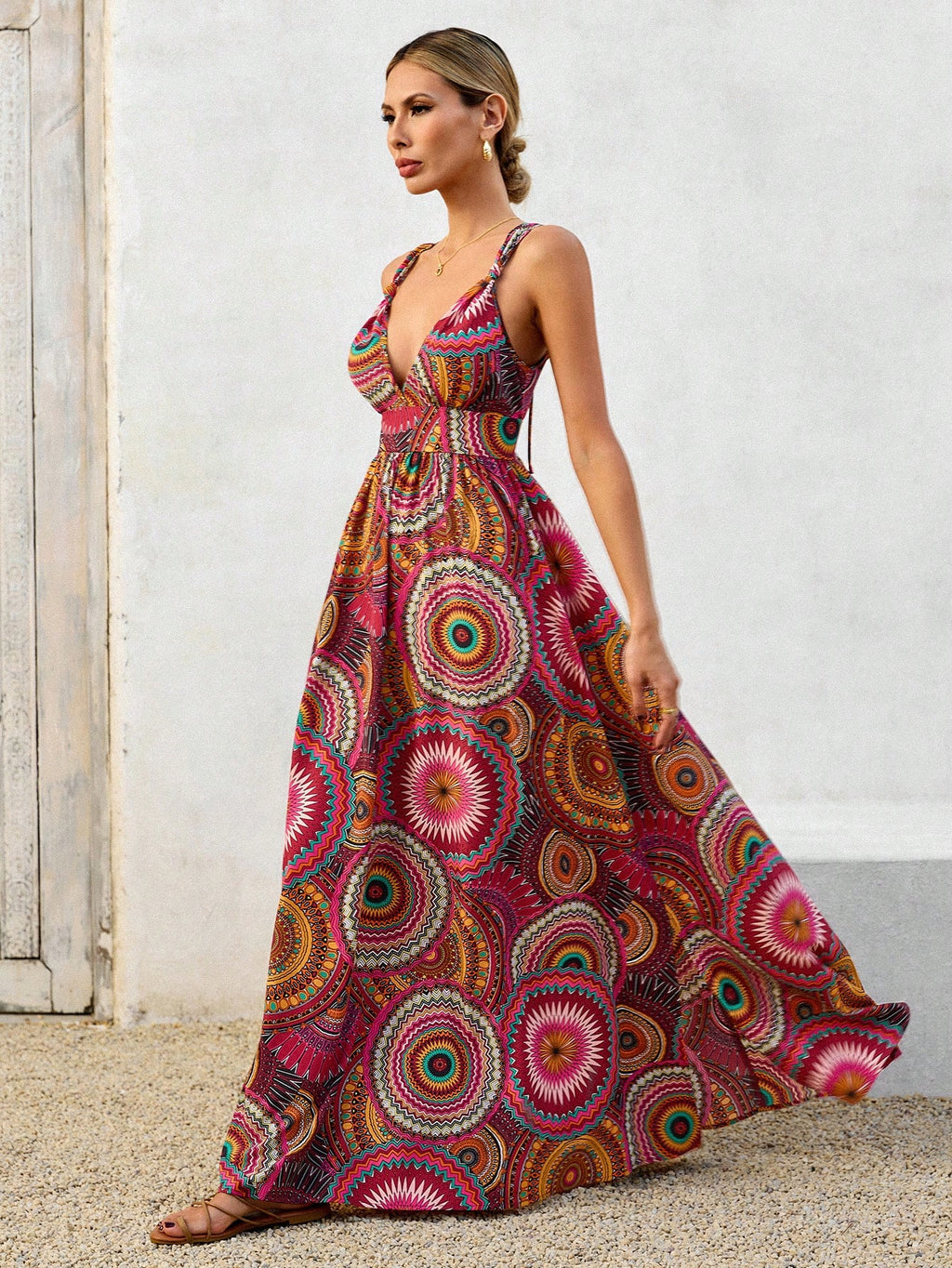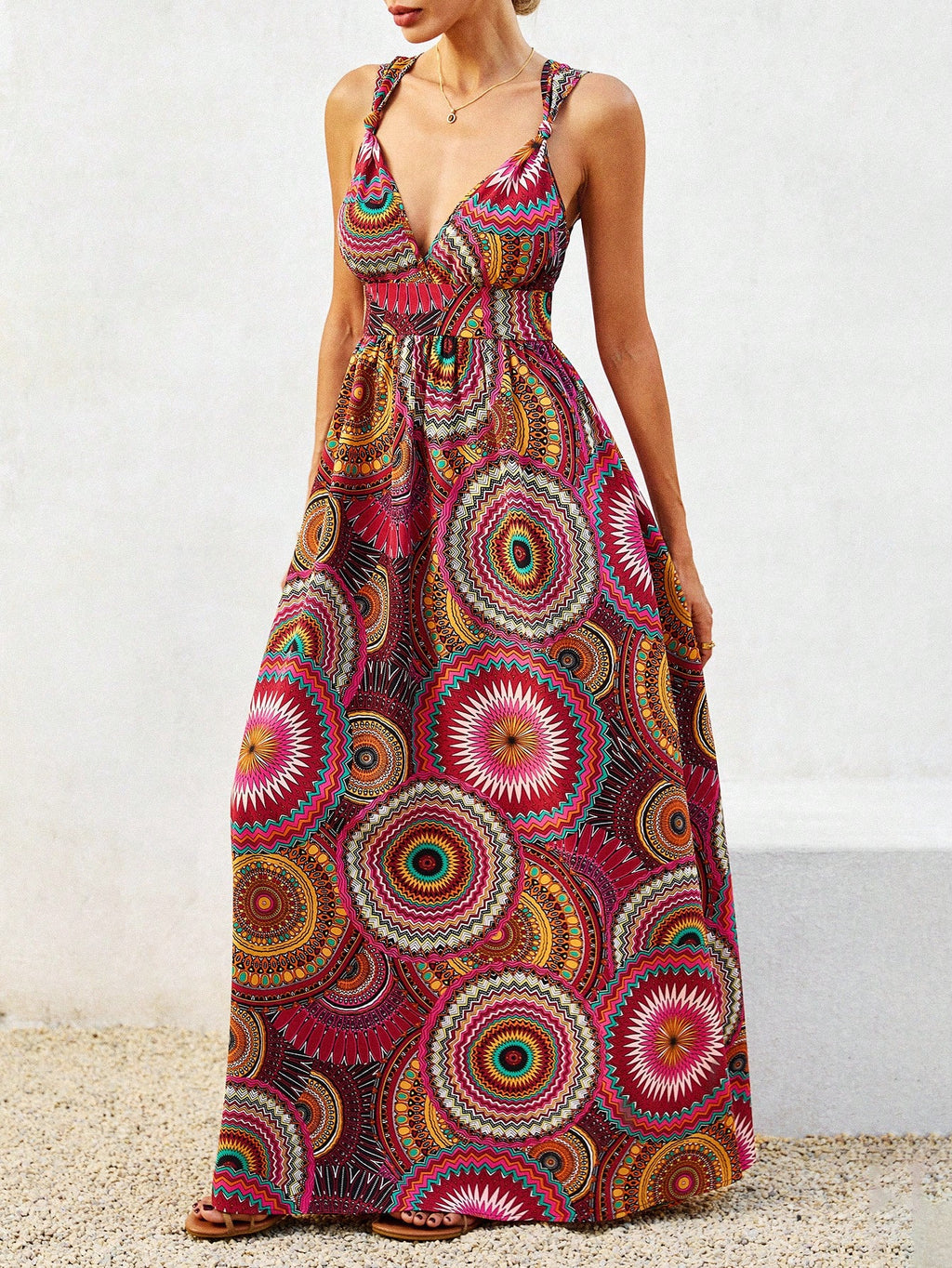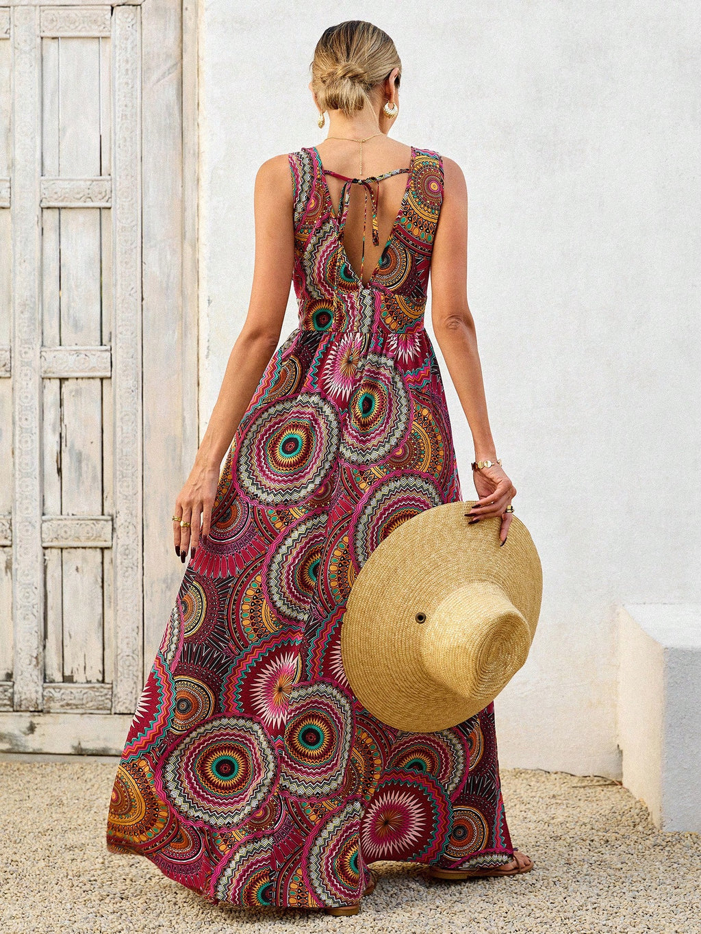 BELLAVOG Ženska ležerna haljina bez rukava s printom preko cijele površine, pogodna za odmor, odjevne kombinacije za odmor za žene