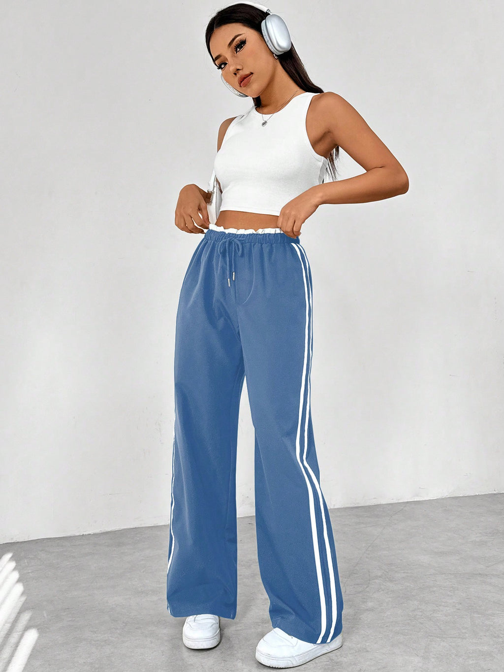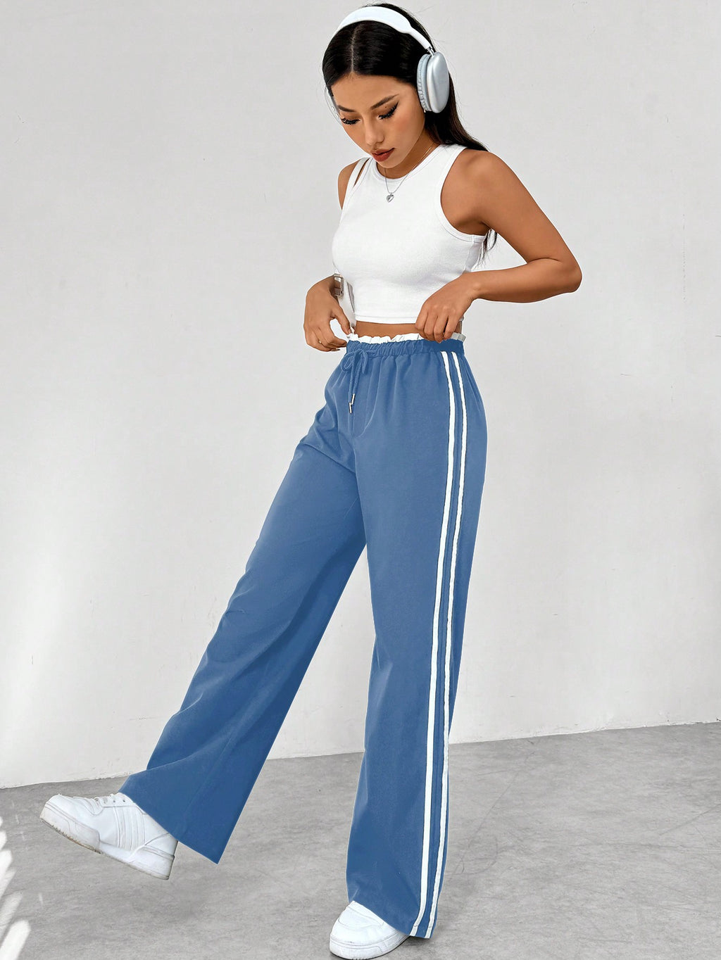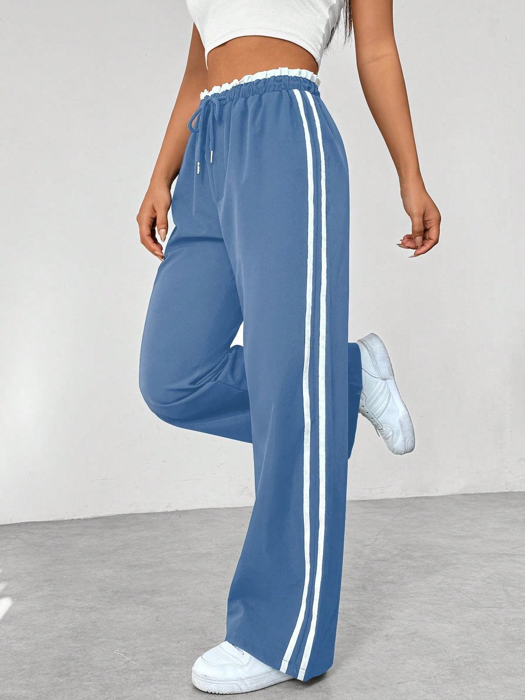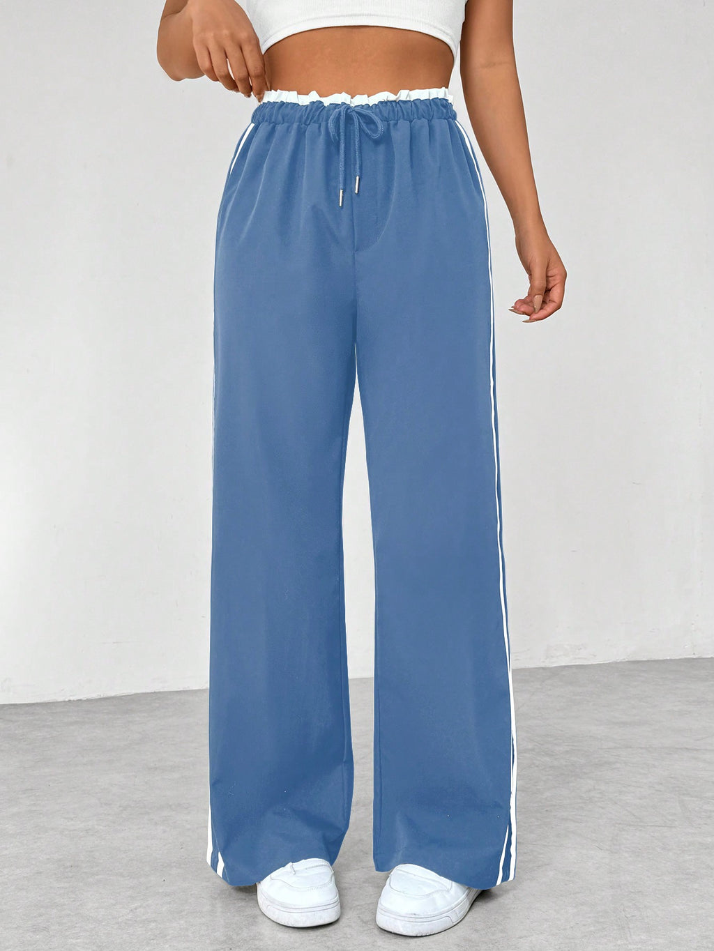 BELLAVOG Women's Color Block Striped Drawstring Waist Casual Straight Pants