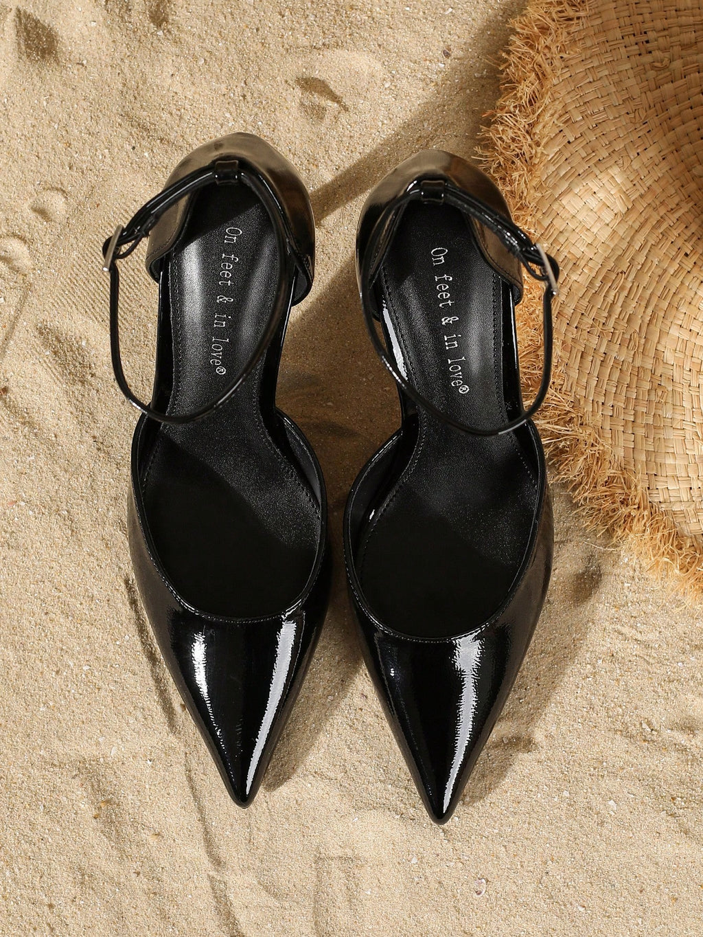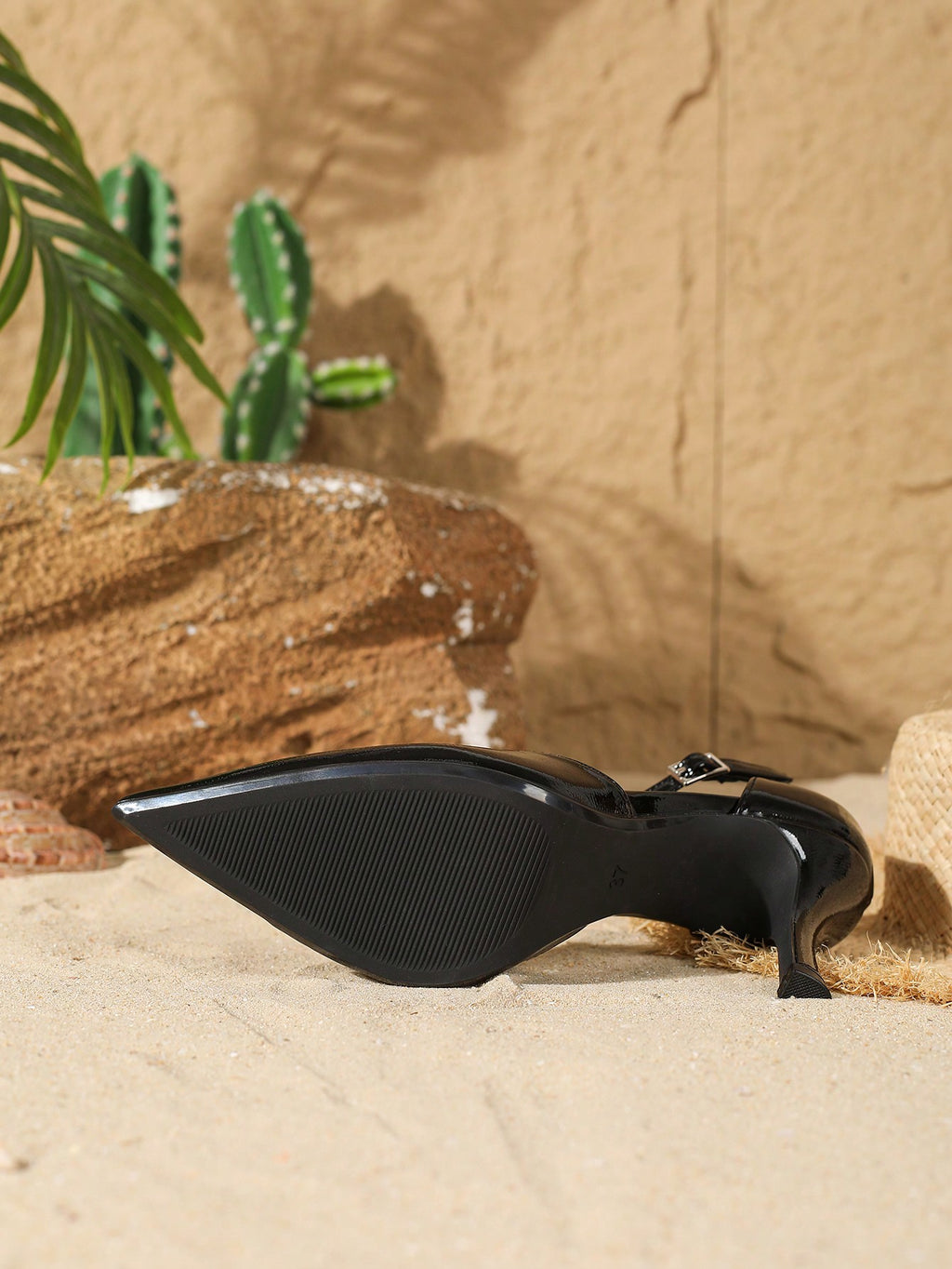 BELLAVOG Ženske modne elegantne štikle s kopčom, špicastim vrhom i remenom, izdubljene, nazubljene, visoke pete, pogodne za haljine i vjenčanja