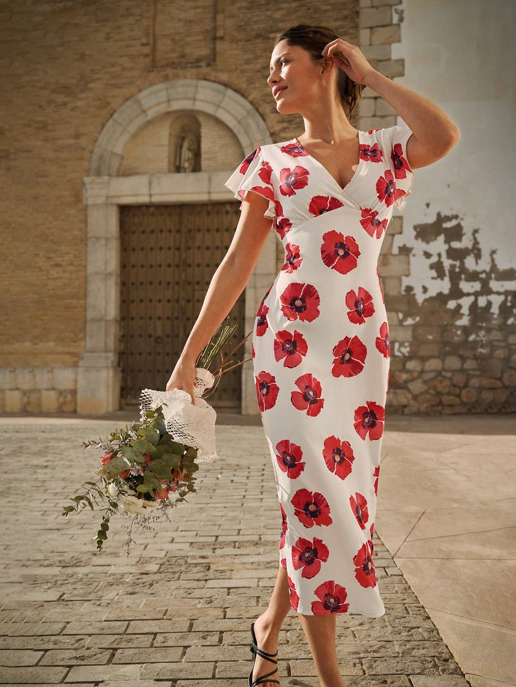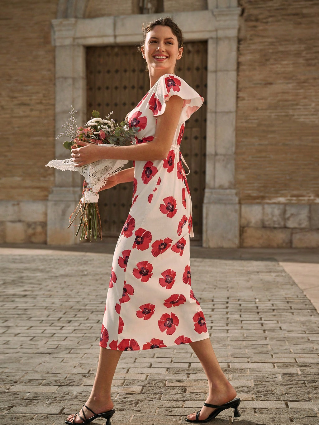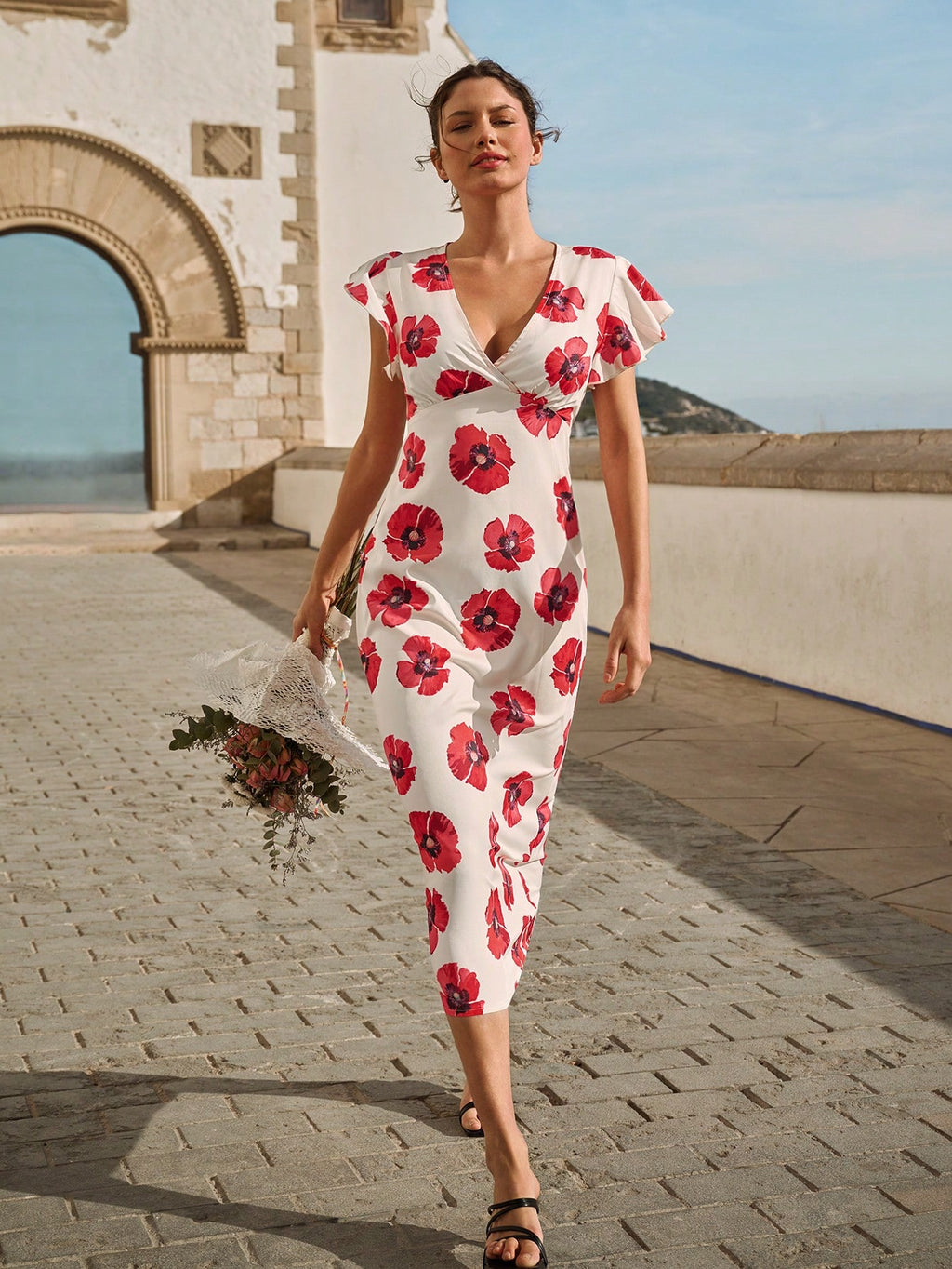 MIU ženska elegantna haljina s cvjetnim printom — s V-izrezom, kratkim rukavima, u stilu omotane haljine. Idealna za proljeće i ljeto, pogodna za svakodnevno nošenje, romantične prilike poput Dana zaljubljenih..