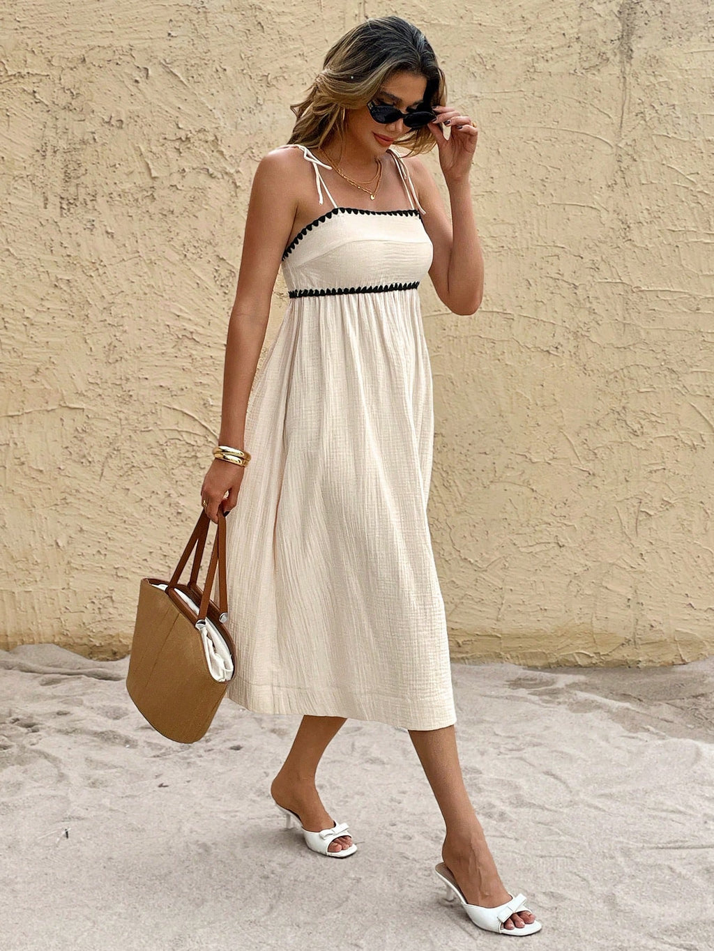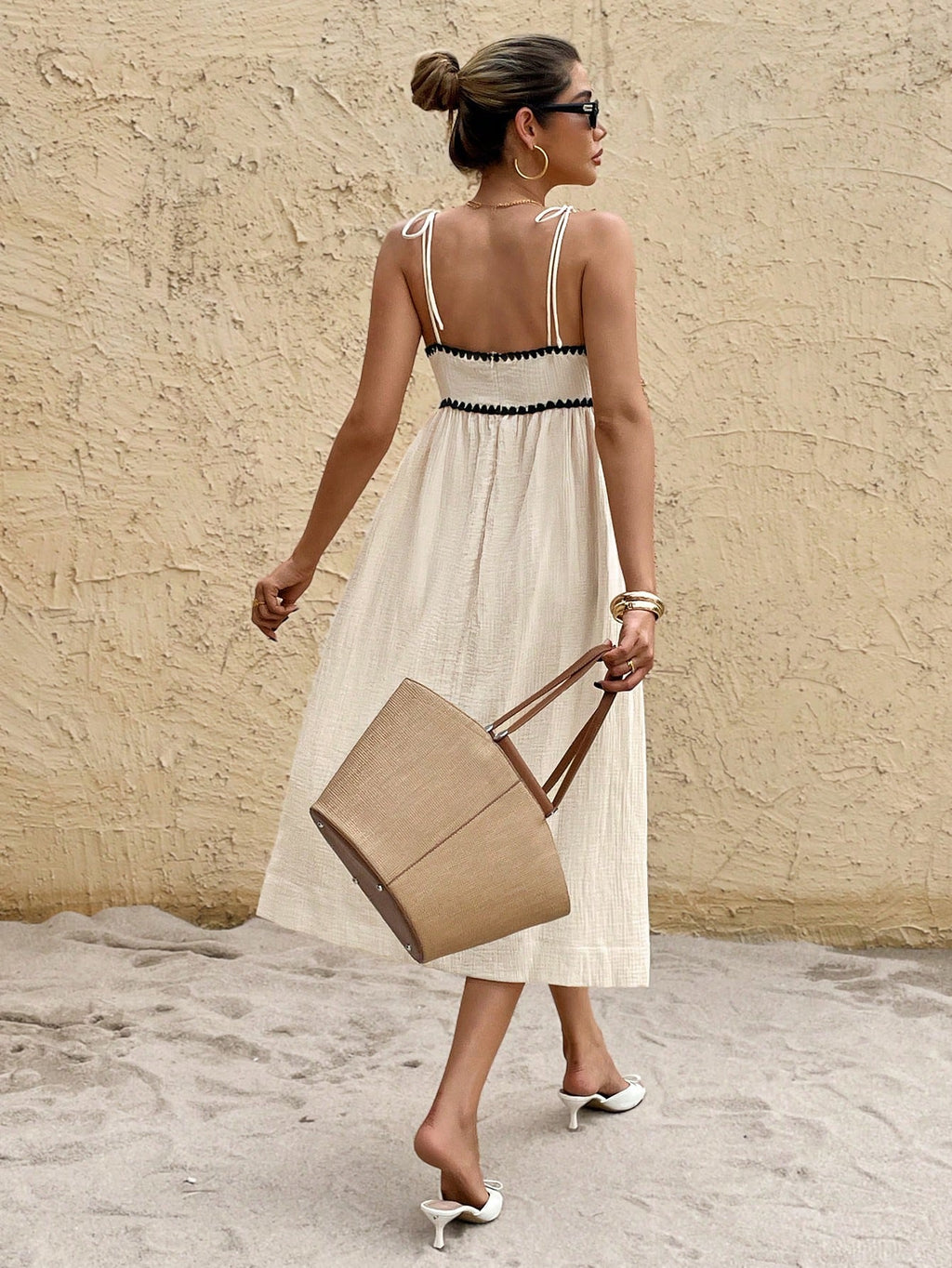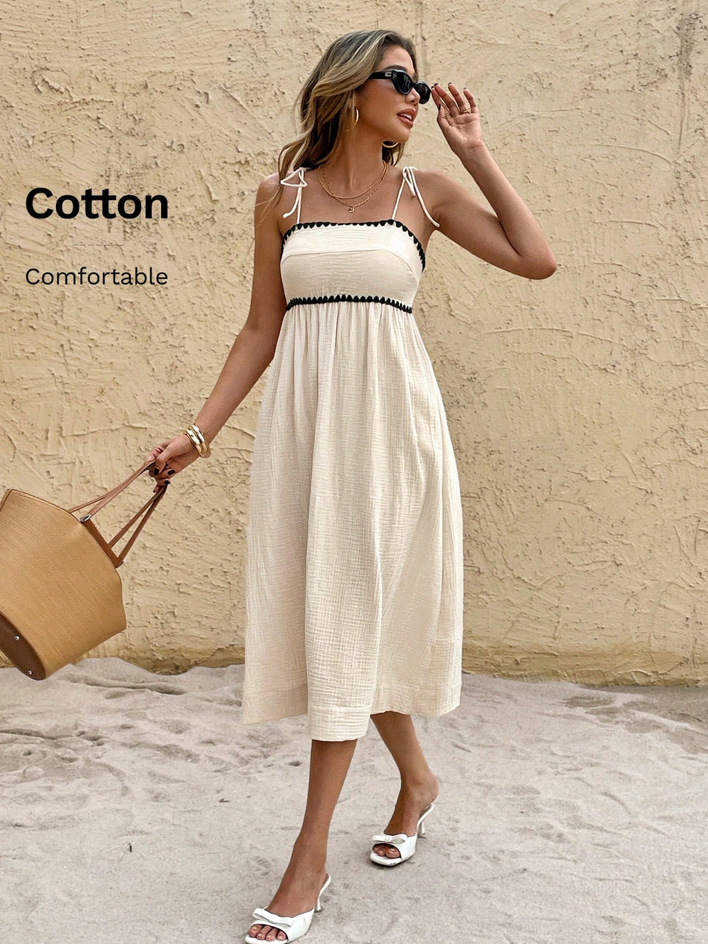 BELLAVOG Women's Holiday Casual Contrasting Trim Spaghetti Strap Midi Dress,Summer Dresses For Women
