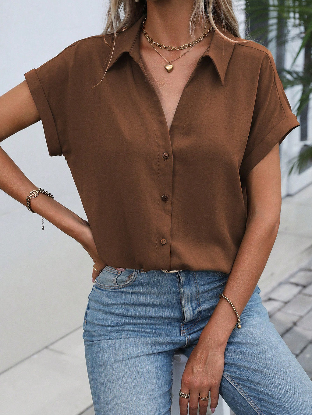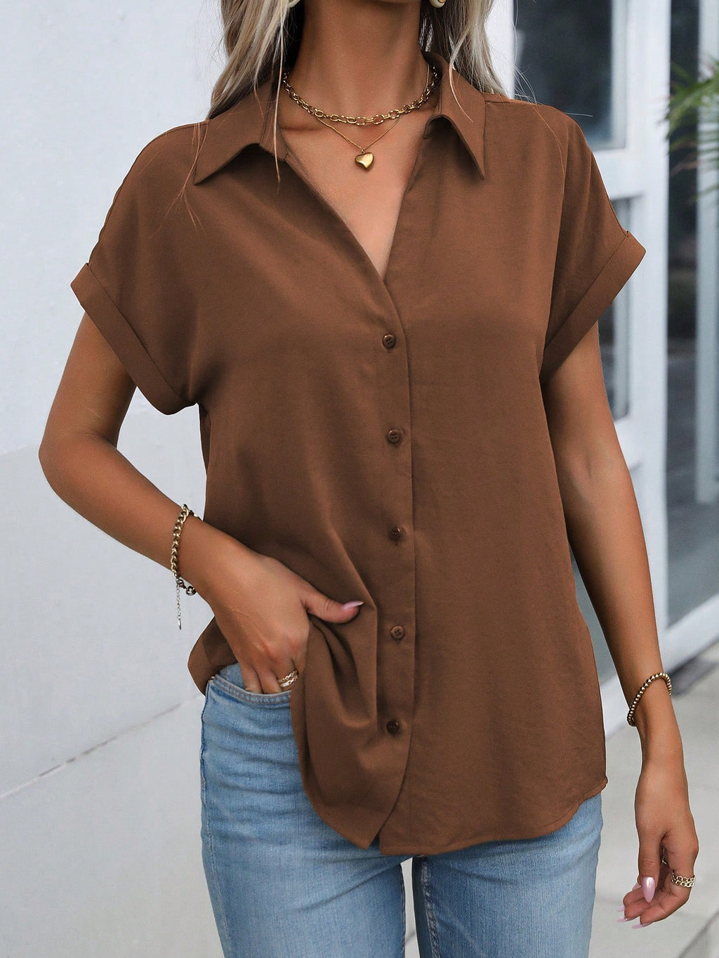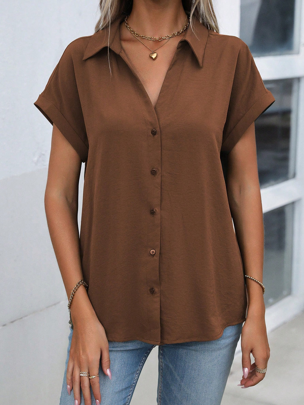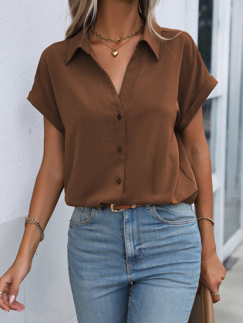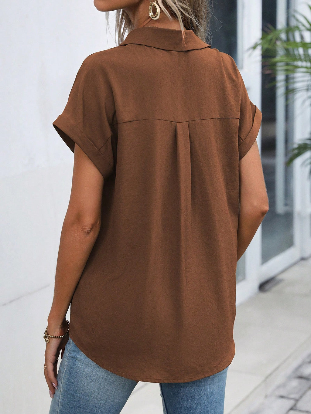 BELLAVOG Ženska košulja s reverom i rukavima u obliku šišmiša, majica kratkih rukava