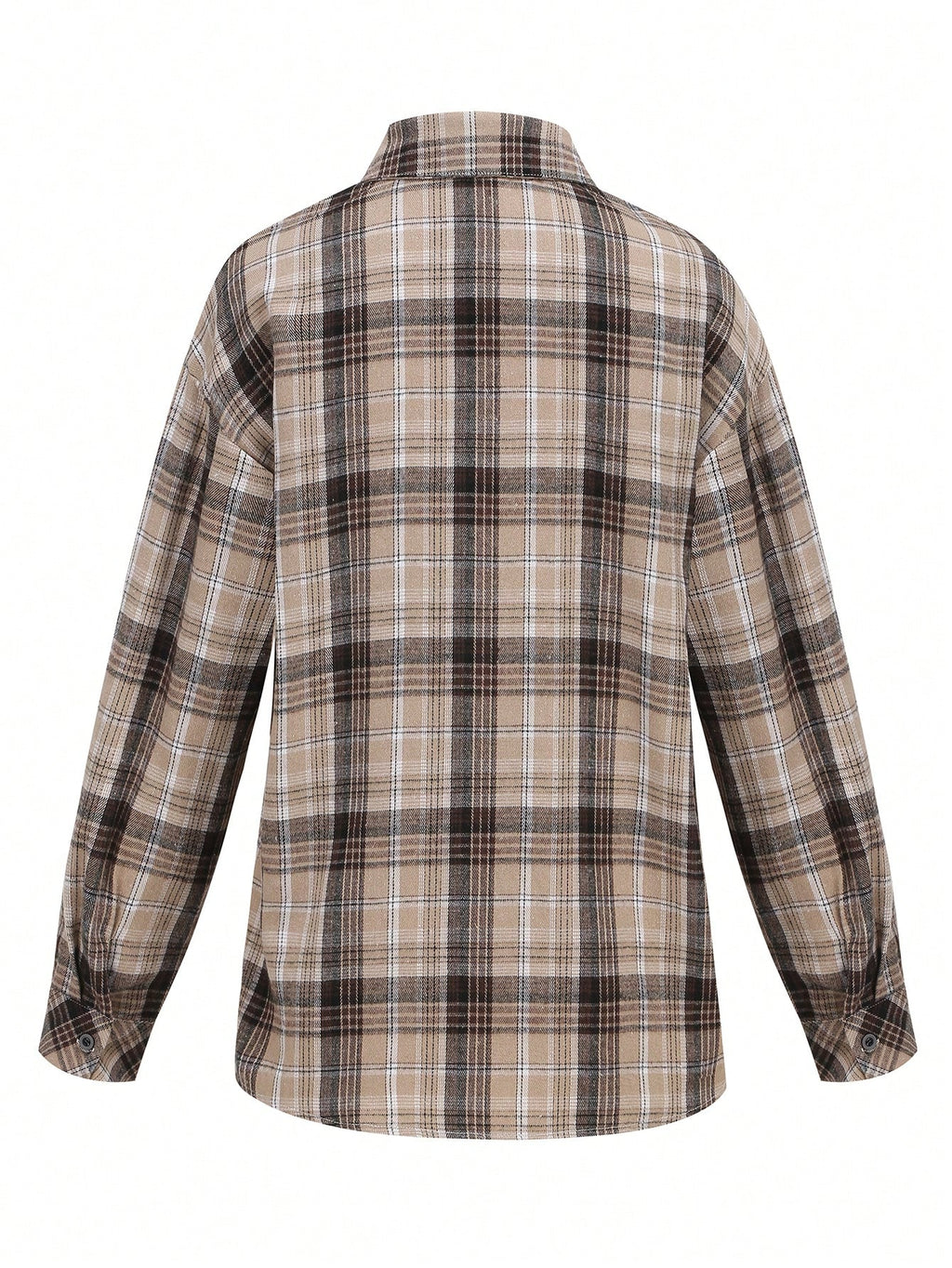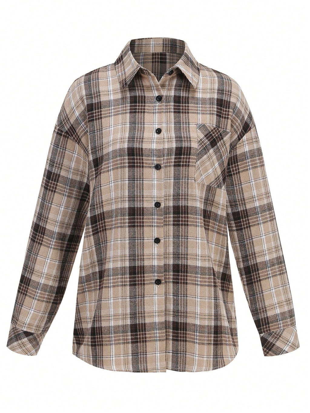 BELLAVOG Ženska ležerna košulja širokog kroja s kariranim printom i spuštenim ramenima, boja proljeće/ljeto