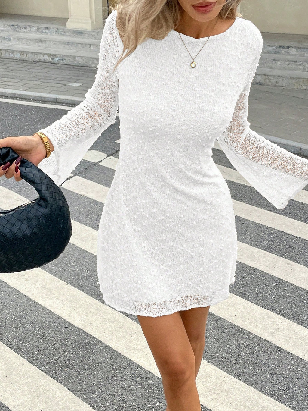 BELLAVOG Women's Mid-Calf Long Sleeve Solid Color Dress, Fashionable For Summer,Summer Dresses For Women,White Dresses For Women