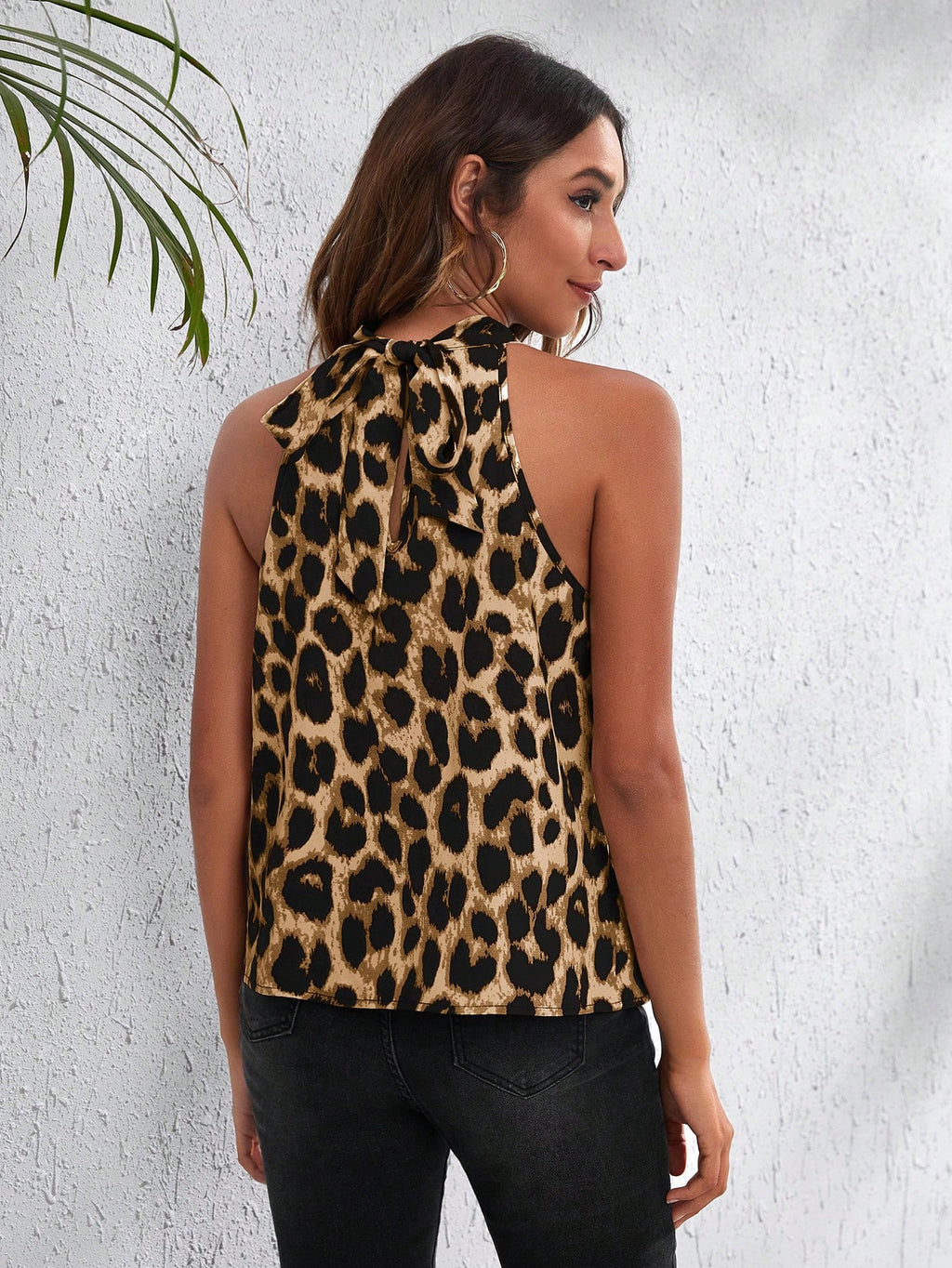 BELLAVOG Ženska plisirana ležerna crna tkana bluza s leopard printom i ovratnikom