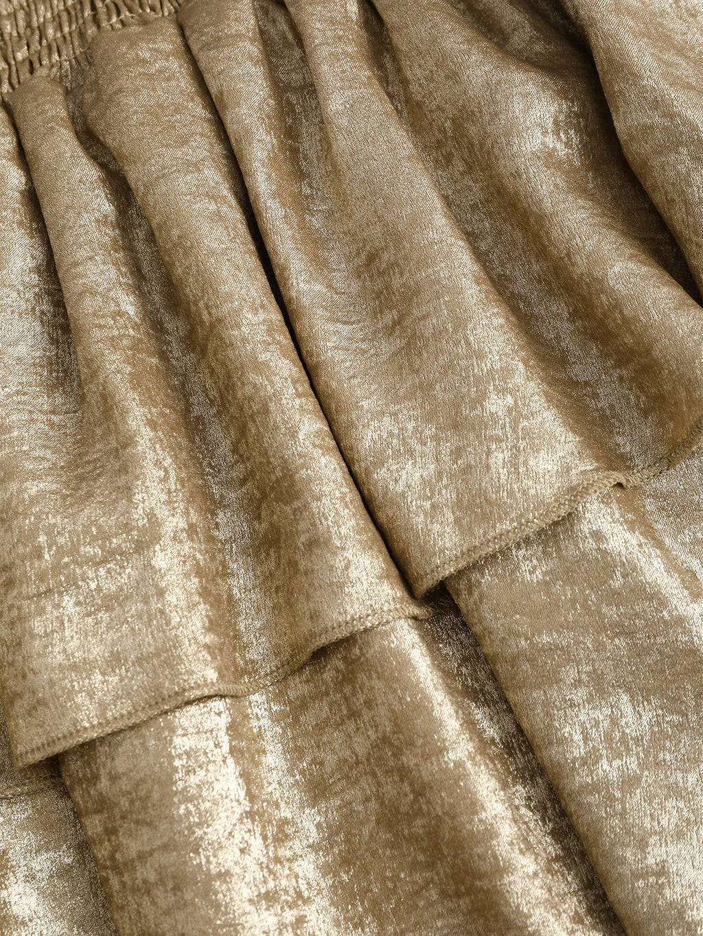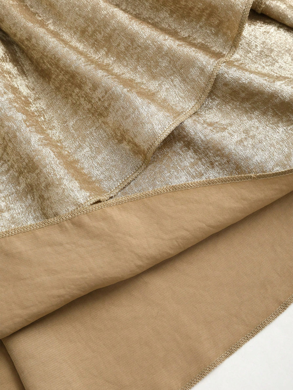 MIU AZRA Ženska Crna Crep Haljina sa Nabranom Ovratnikom i Rukavima u Zvonu