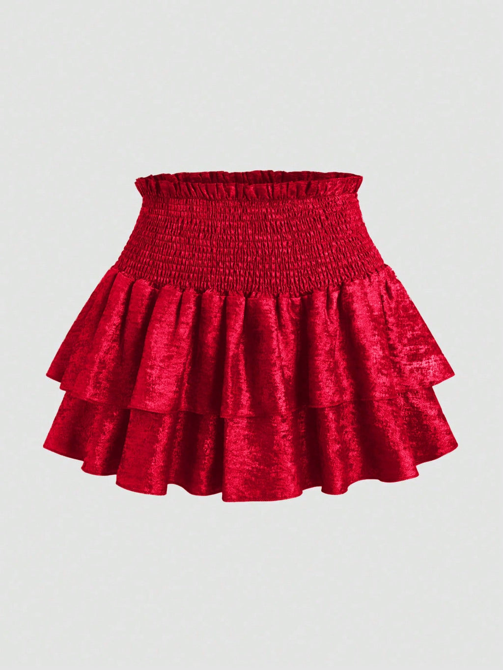 MIU AZRA Čvrsta Boja Neformalna Plisirana Kratka Ženska Pletena Suknja, Prikladna za Odmor, Večernji Izlazak, Jesen/Zimu