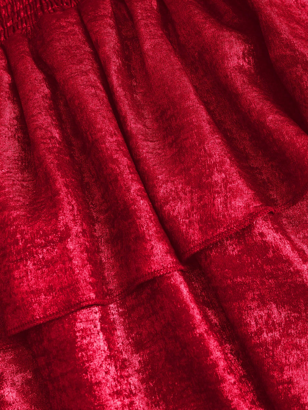MIU AZRA Elegantna mini suknja s perlama u crvenom tweedu za žene