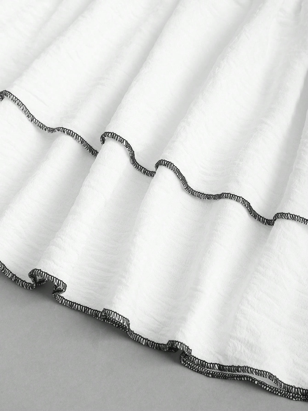 MIU AZRA Elenzya Asimetrična Prugasta Majica sa Dugim Rukavima za Žene, Elegantna Romantična, Casual i Komutna Odjeća, Haljina za Noć Veštica, Crna